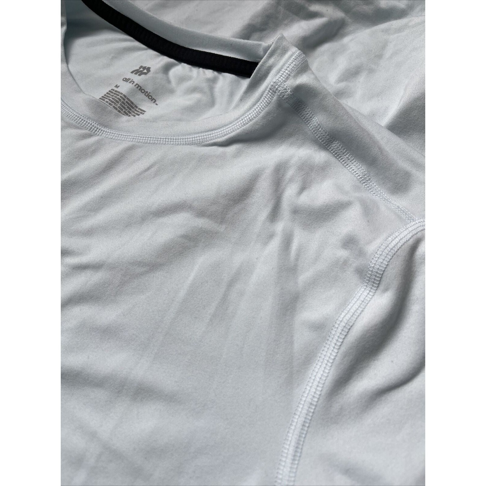 Men’s All In Motion Medium Light Blue/green workout shirt short sleeve. A very light color blue sometime looks very light green depending on the light