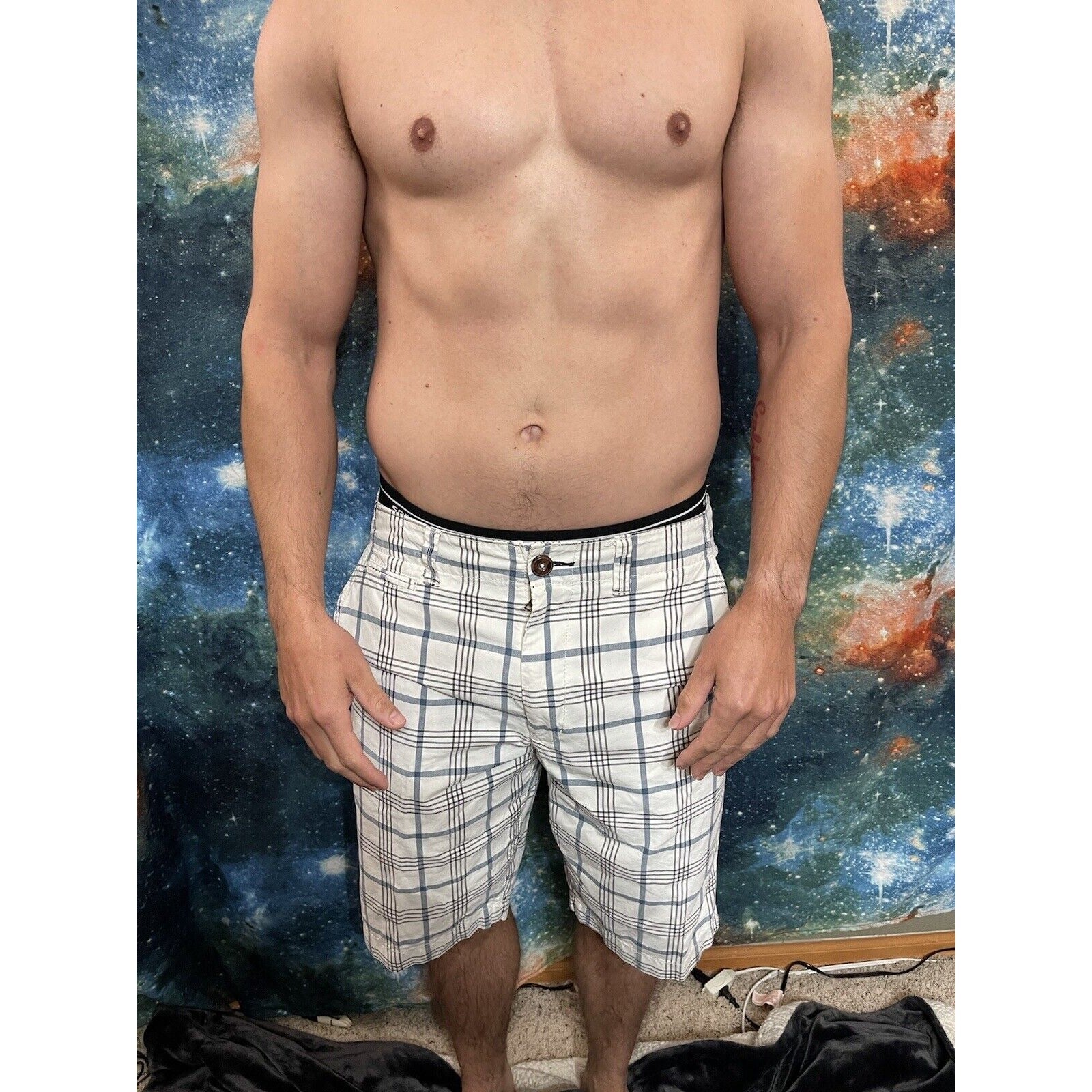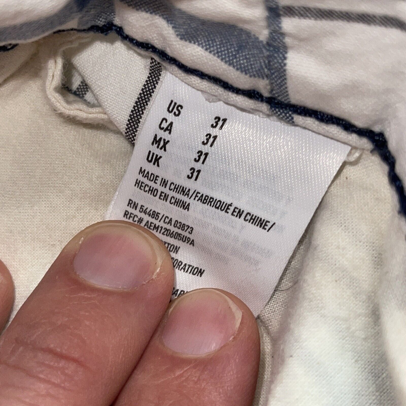 Men’s American Eagle Size 31 White Blue Plaid Longboard Shorts.
