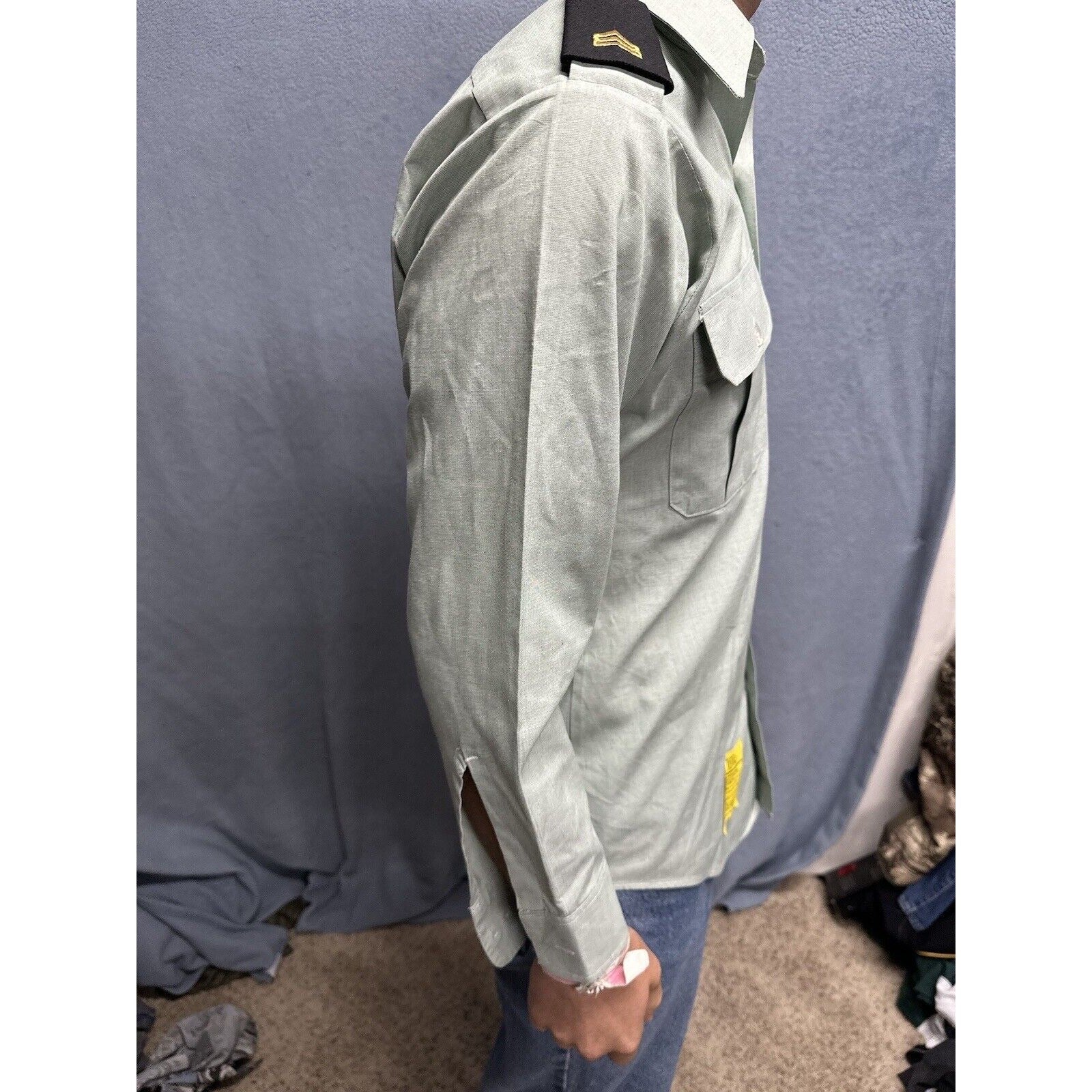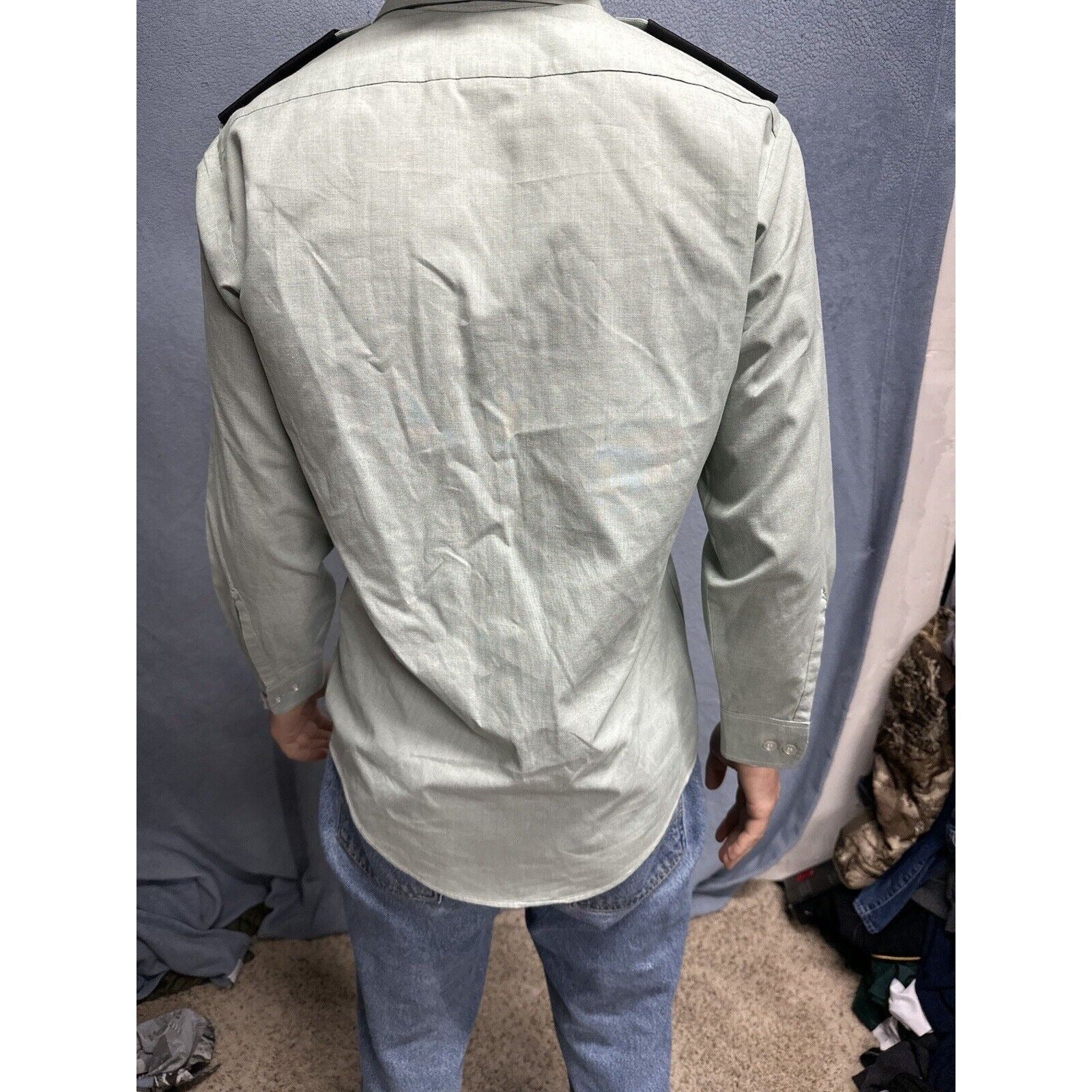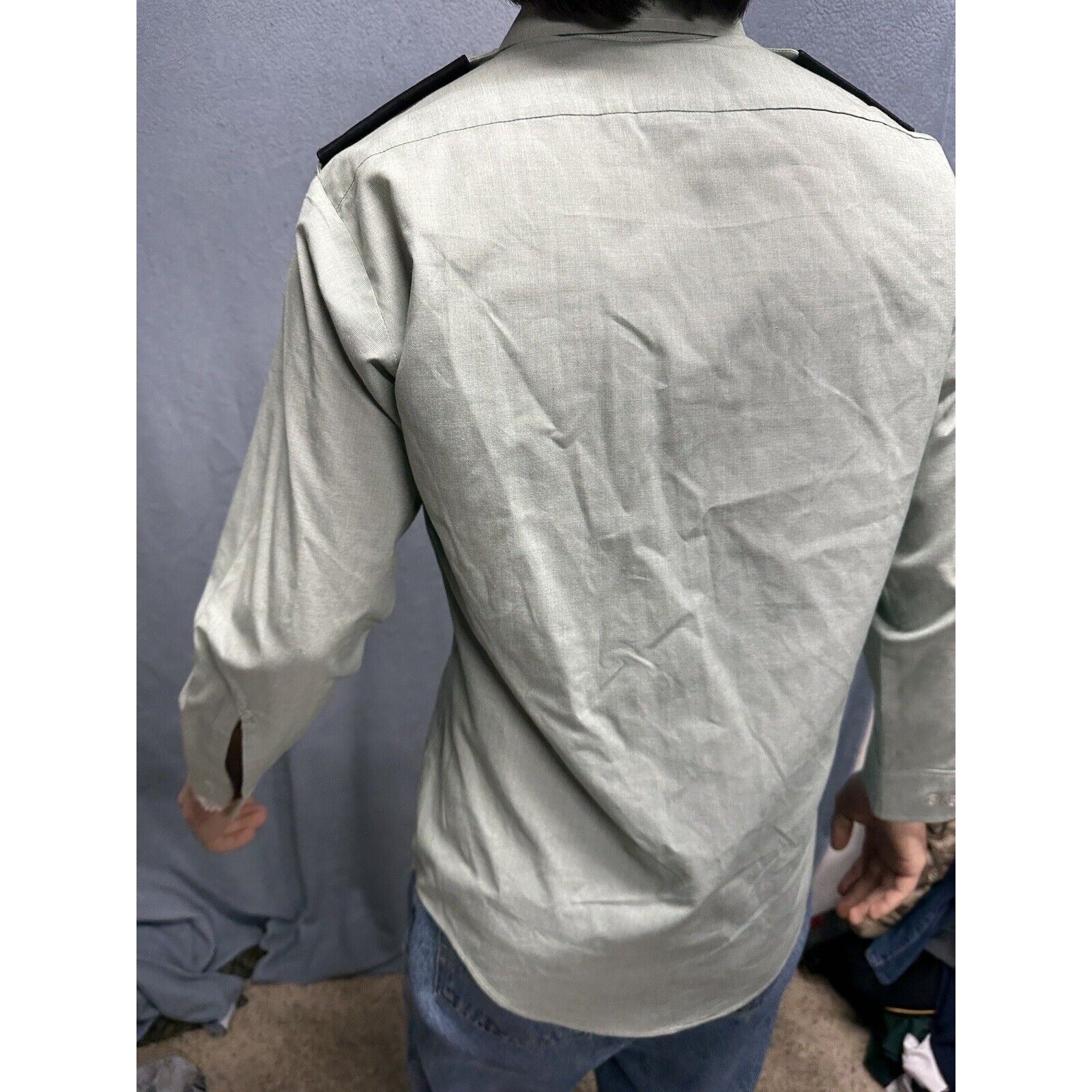 This men's army green DSCP uniform dress shirt is a must-have for militaria collectors. The shirt features long sleeves and a button-up front, making it perfect for both formal and casual occasions. It measures 14.5 inches in the neck and 30/31 inches in the sleeves, and is made from high-quality materials to ensure durability.