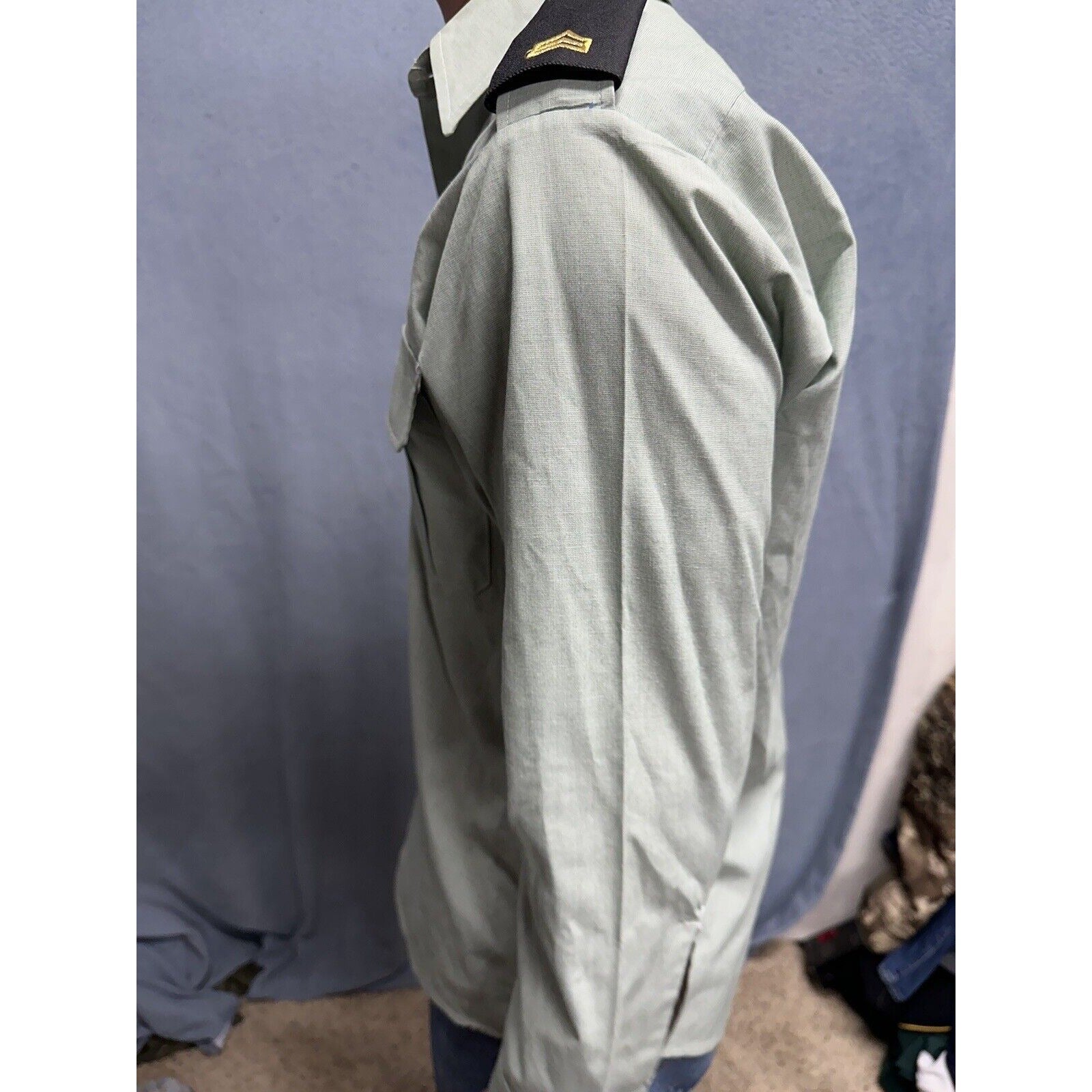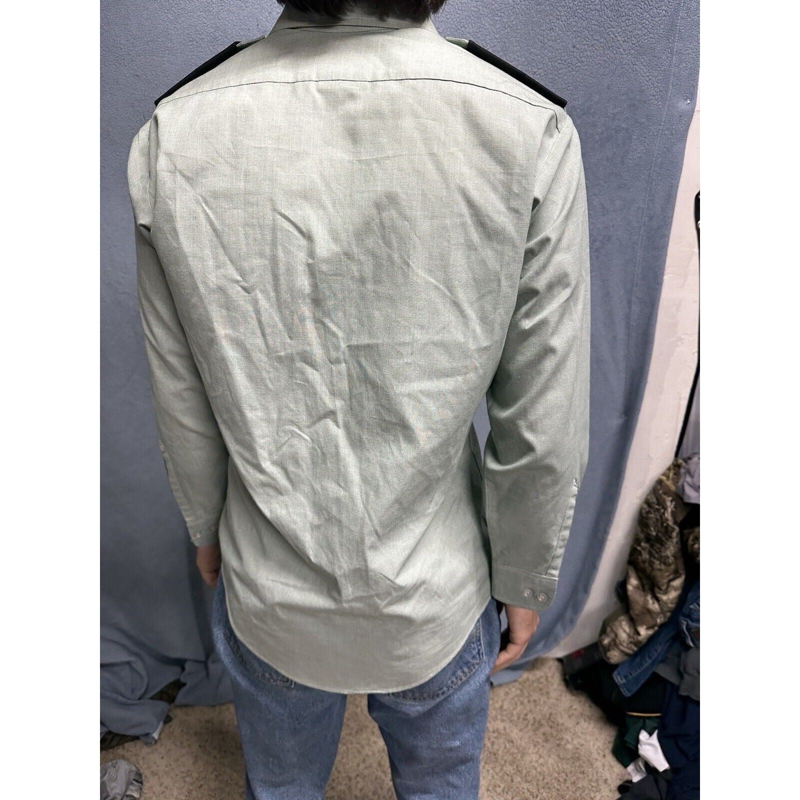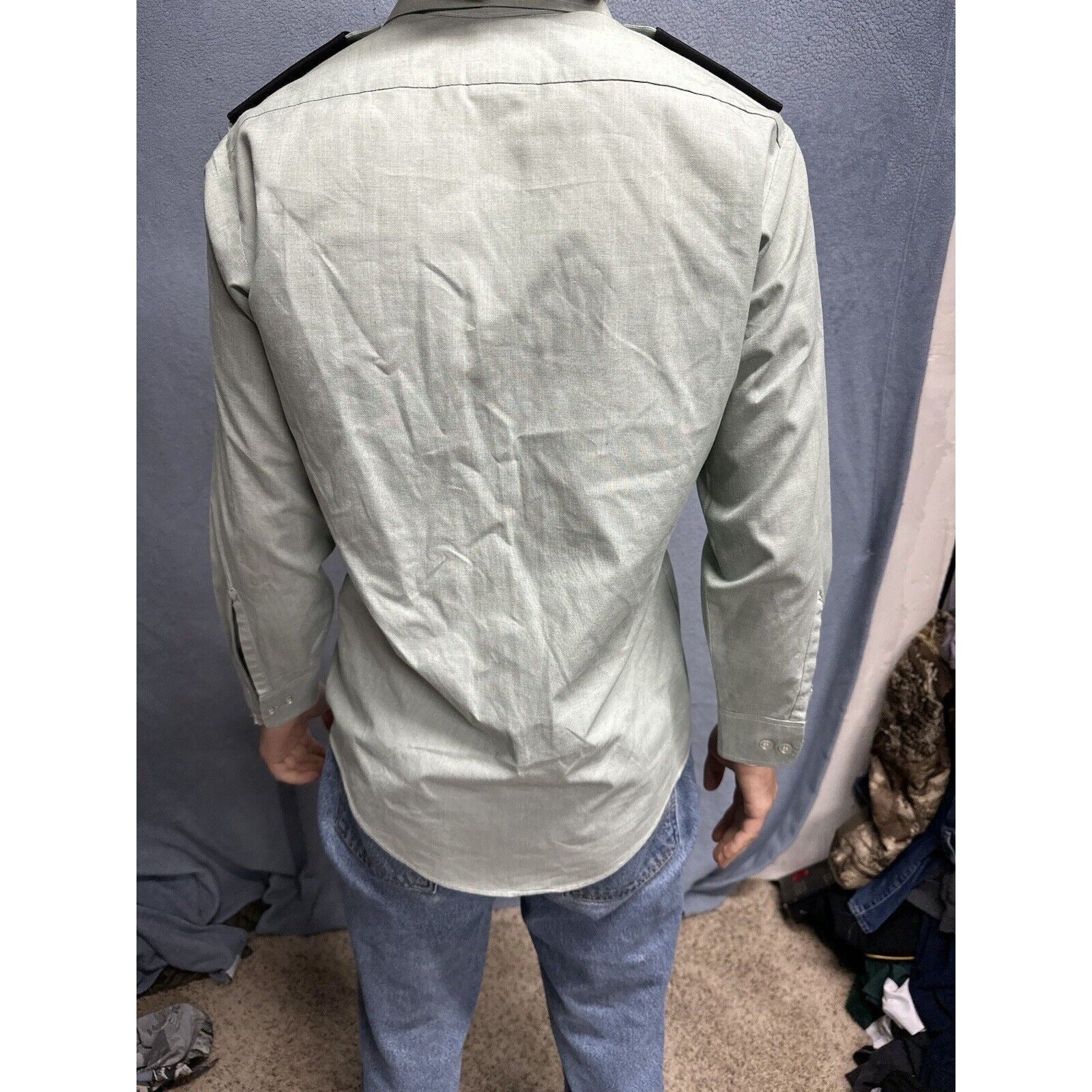 This men's army green DSCP uniform dress shirt is a must-have for militaria collectors. The shirt features long sleeves and a button-up front, making it perfect for both formal and casual occasions. It measures 14.5 inches in the neck and 30/31 inches in the sleeves, and is made from high-quality materials to ensure durability.