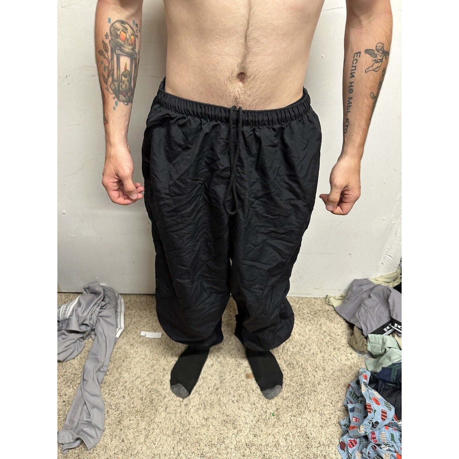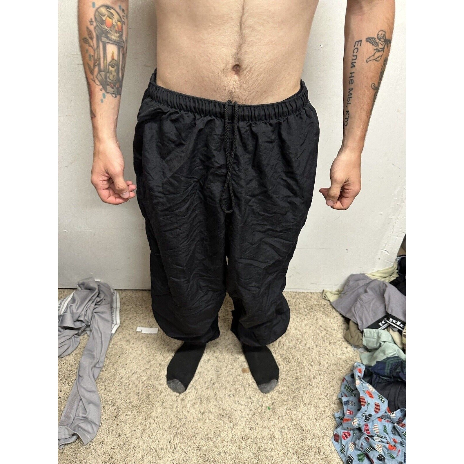 Up for sale is a pair of Men's Army Pants in size XL. These black pants are perfect for activewear and feature an Army theme with no logo. They are pre-owned but have been well-maintained and are in excellent shape.