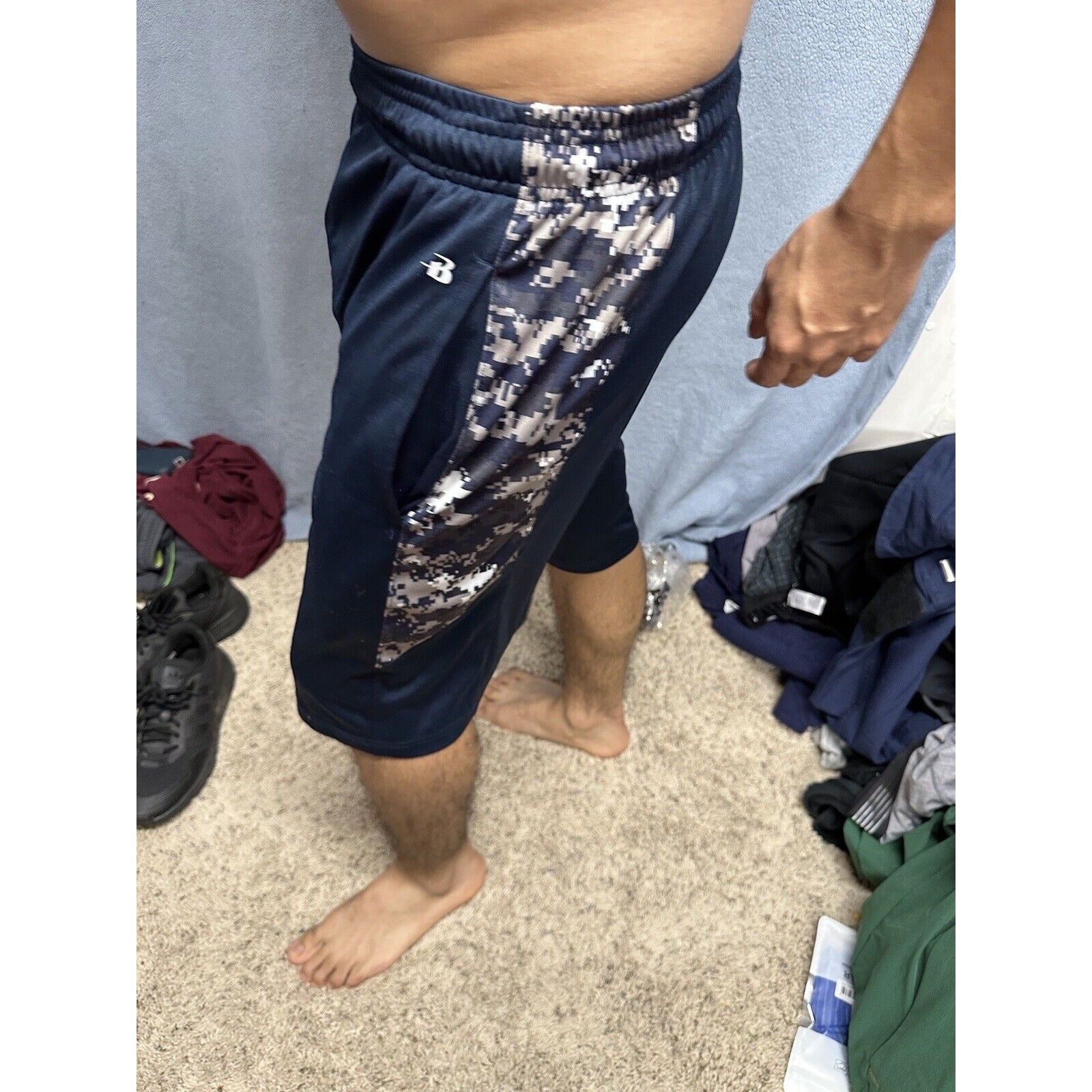 Men’s Badger Sport Small Dark Blue Camo Athletic Shorts With Pockets