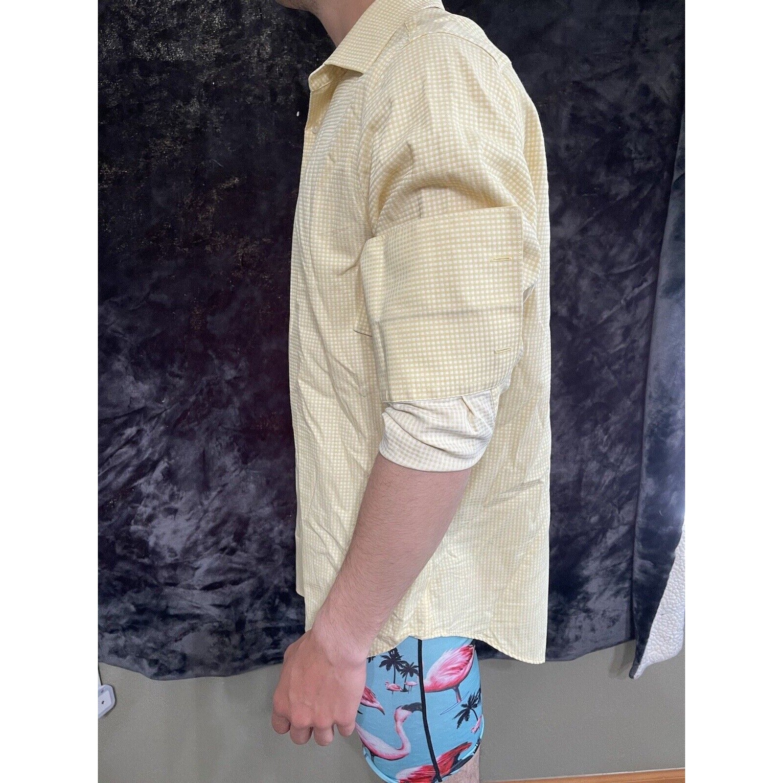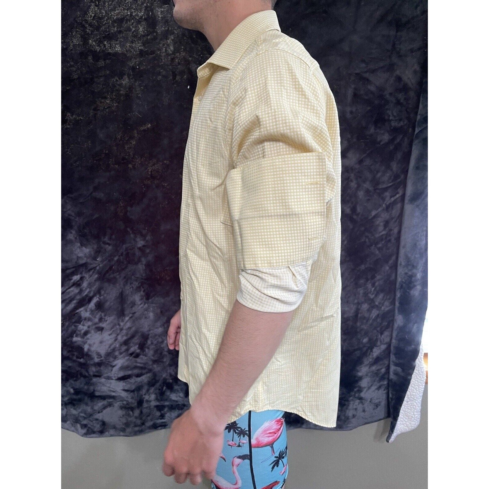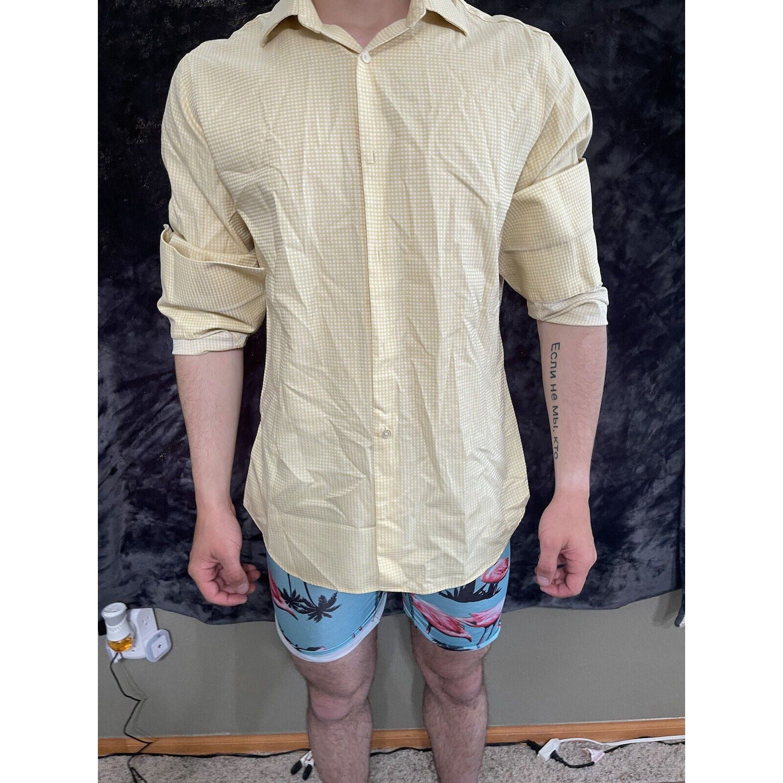 Men’s Banana Republic Slim Fit large 16 16.5 Long Sleeve Button up Yellow plaid