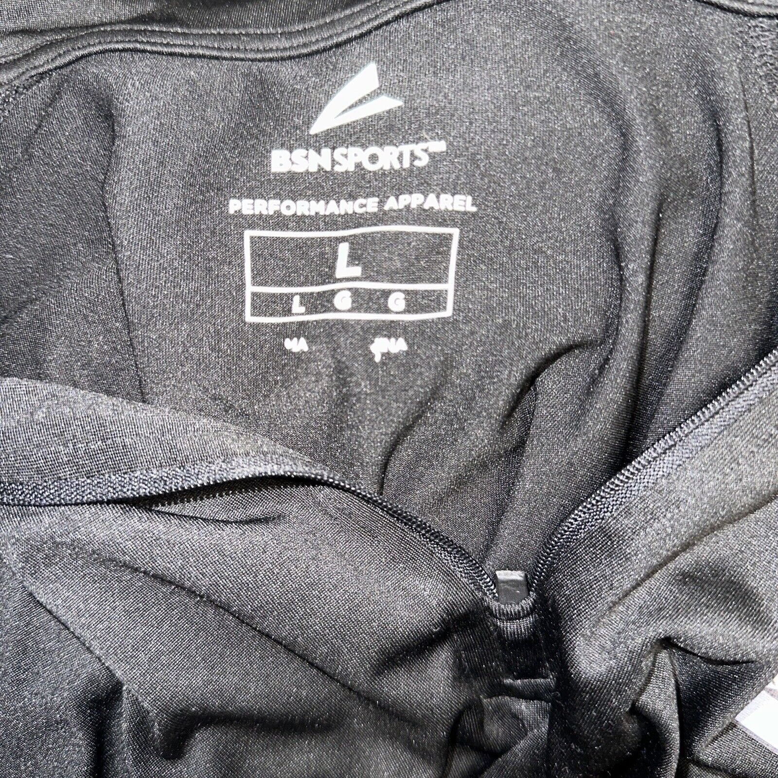 Stay warm and comfortable while cheering for your favorite team with this men's black BSN Sports quarter zip pullover. Made for soccer enthusiasts, this sweatshirt features a stylish design that showcases your love for the sport. The size is Large and it has a zip closure that provides easy on and off.