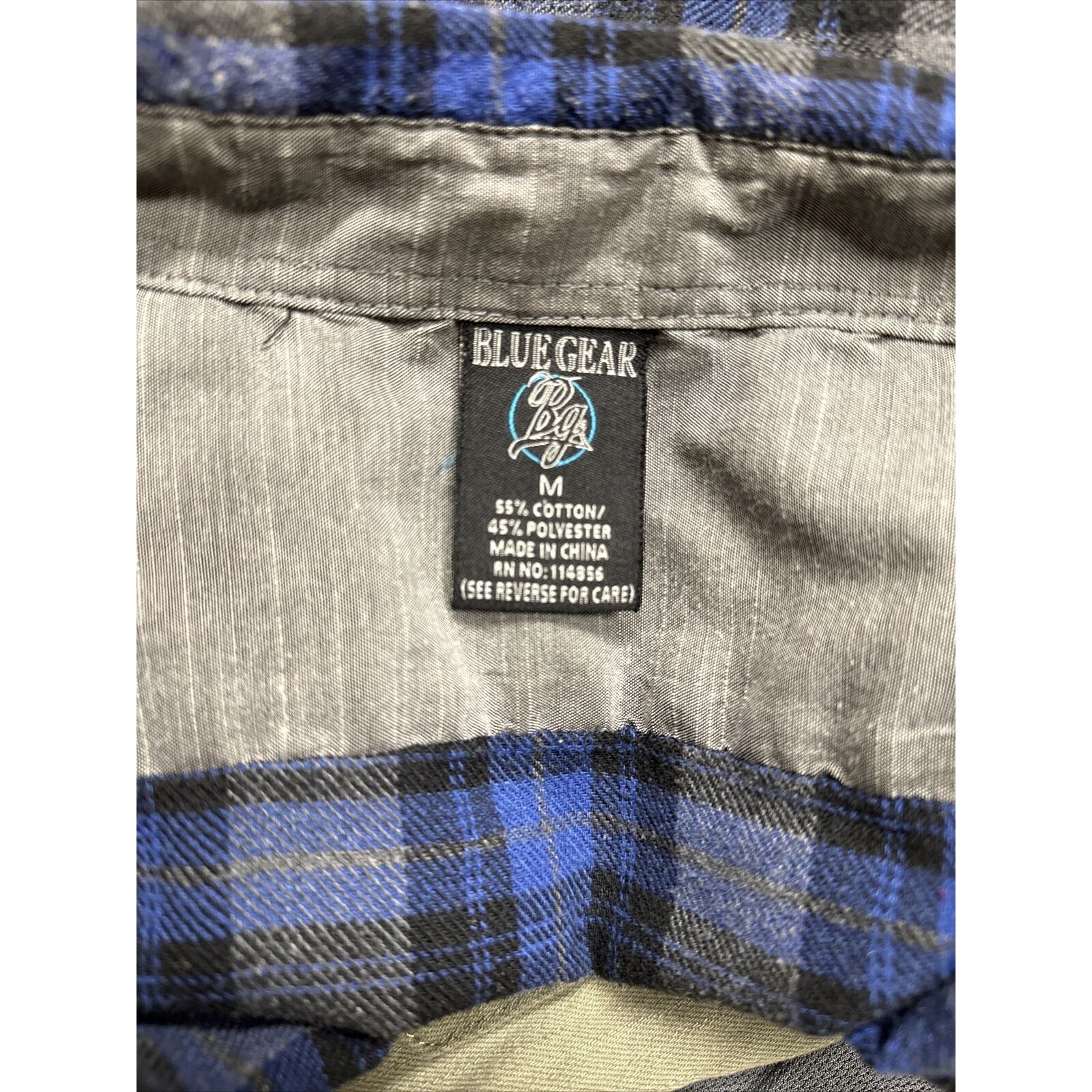 men’s blue gear medium blue plaid flannel shirt long sleeve button up.