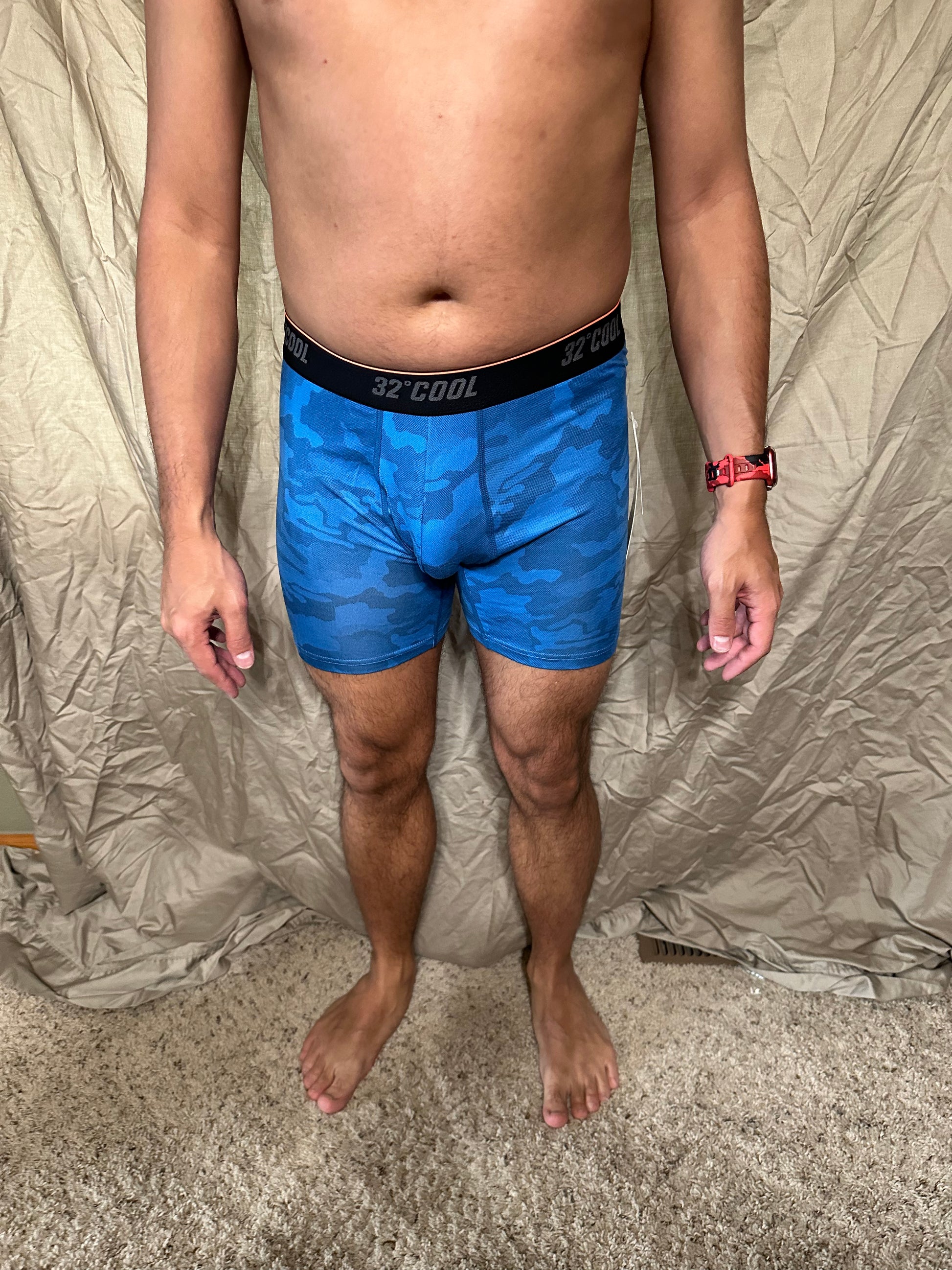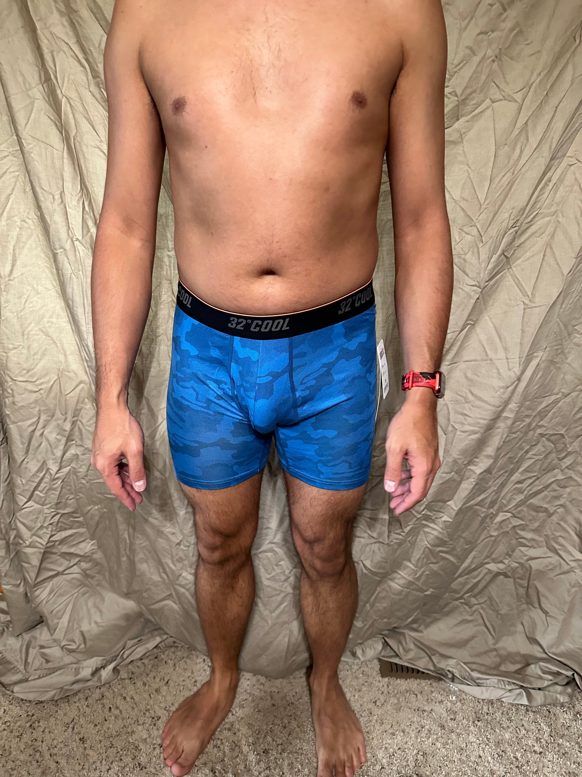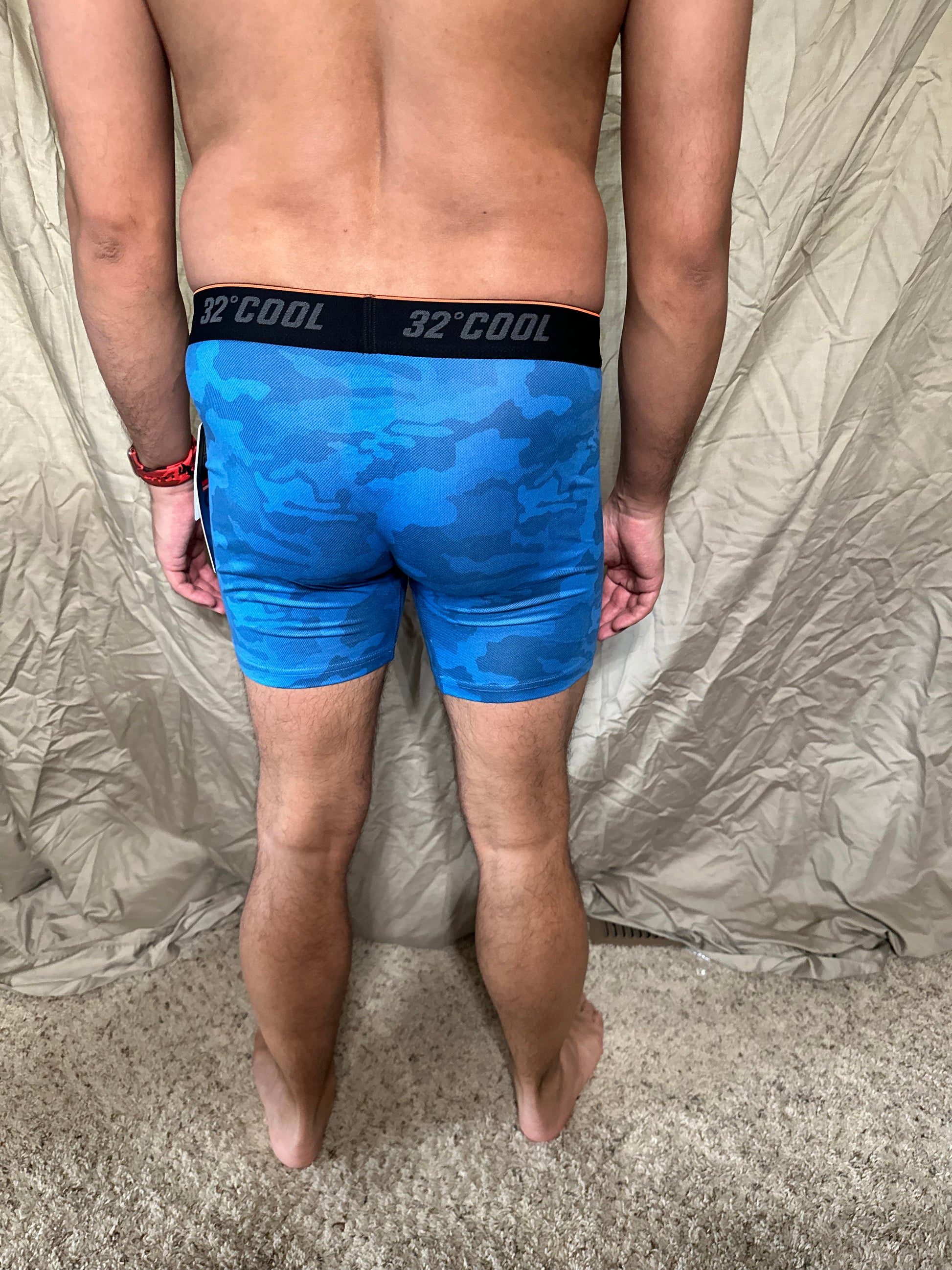 Men’s blue with camo pattern 32 degree cool boxer briefs size small