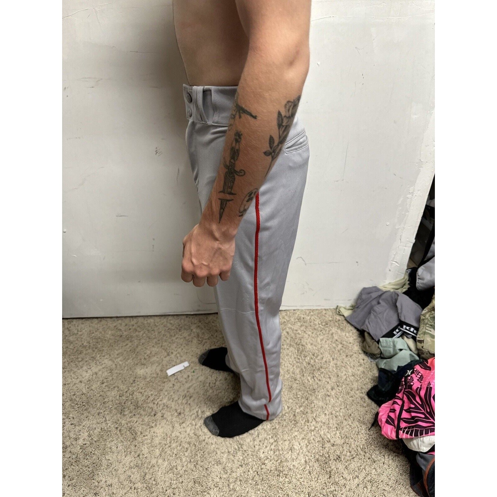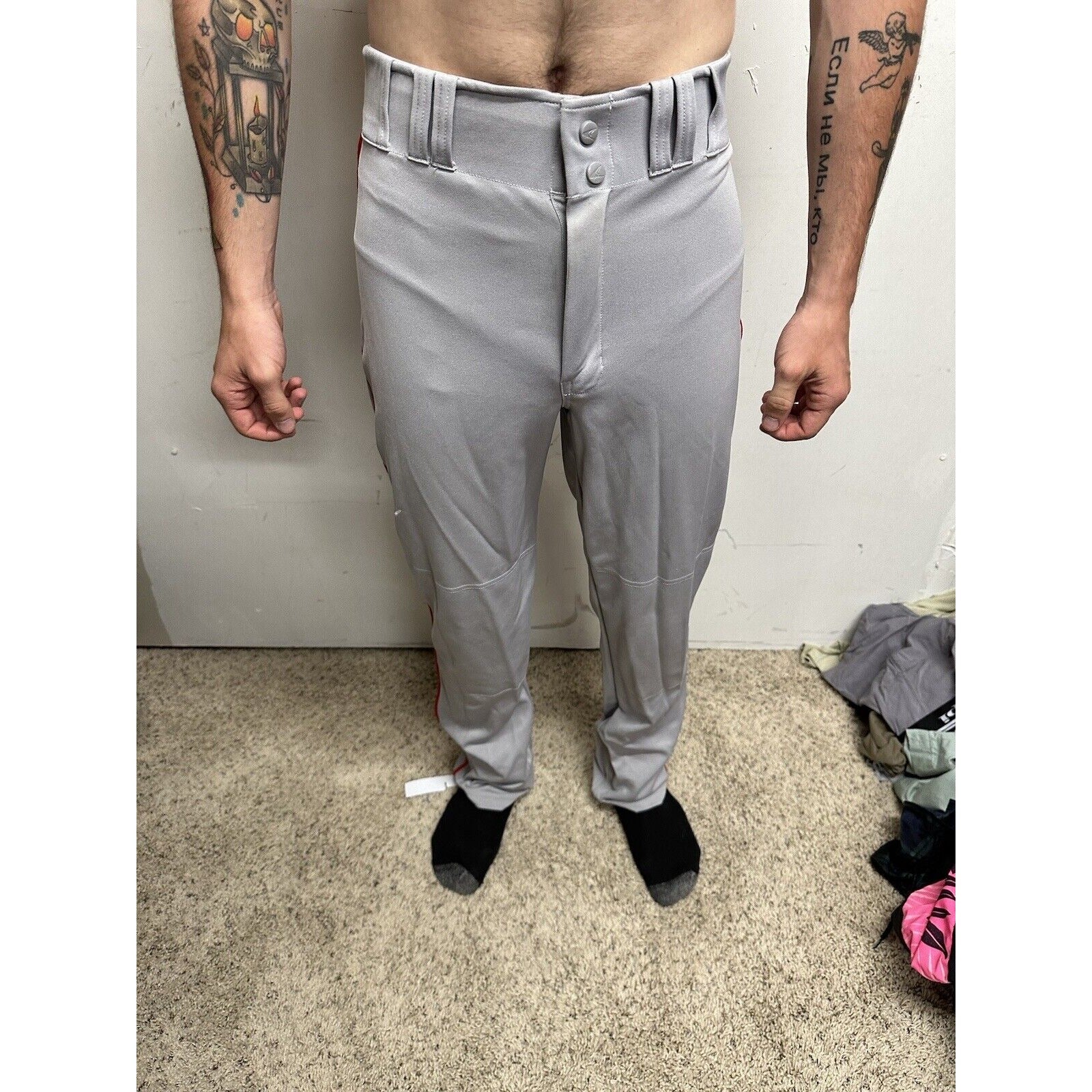 Men’s Chanmpro Adult Medium Gray Baseball Pants Red Stripe