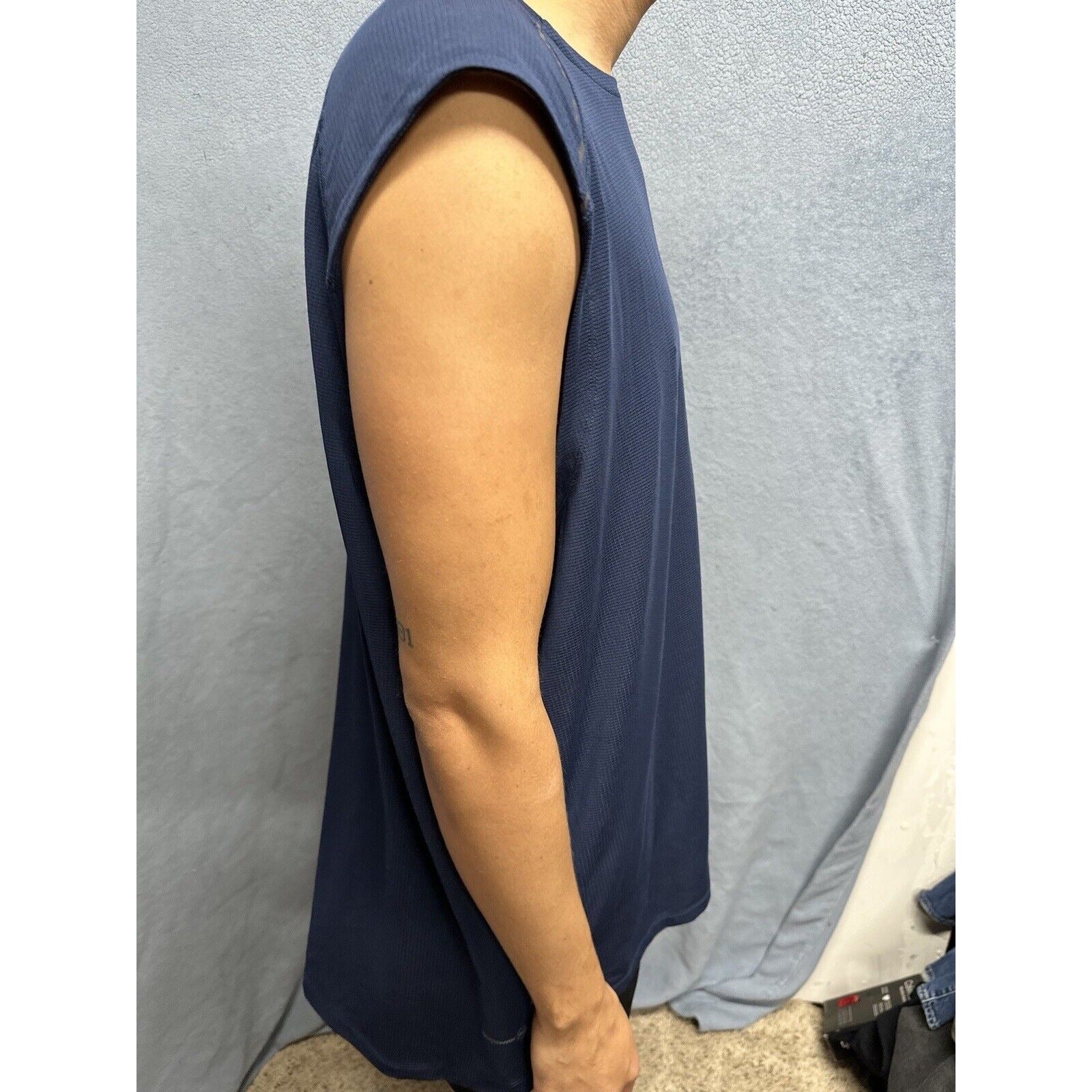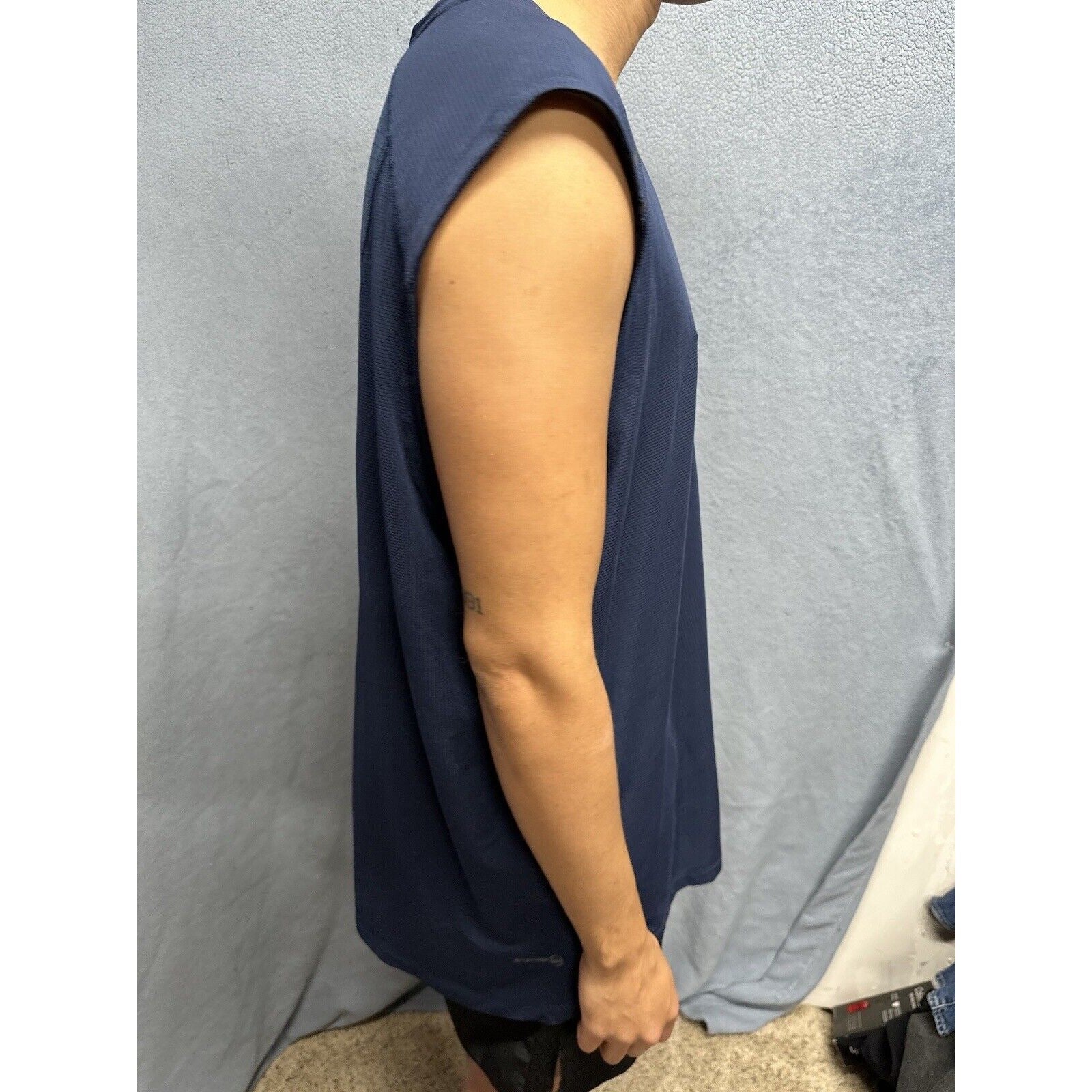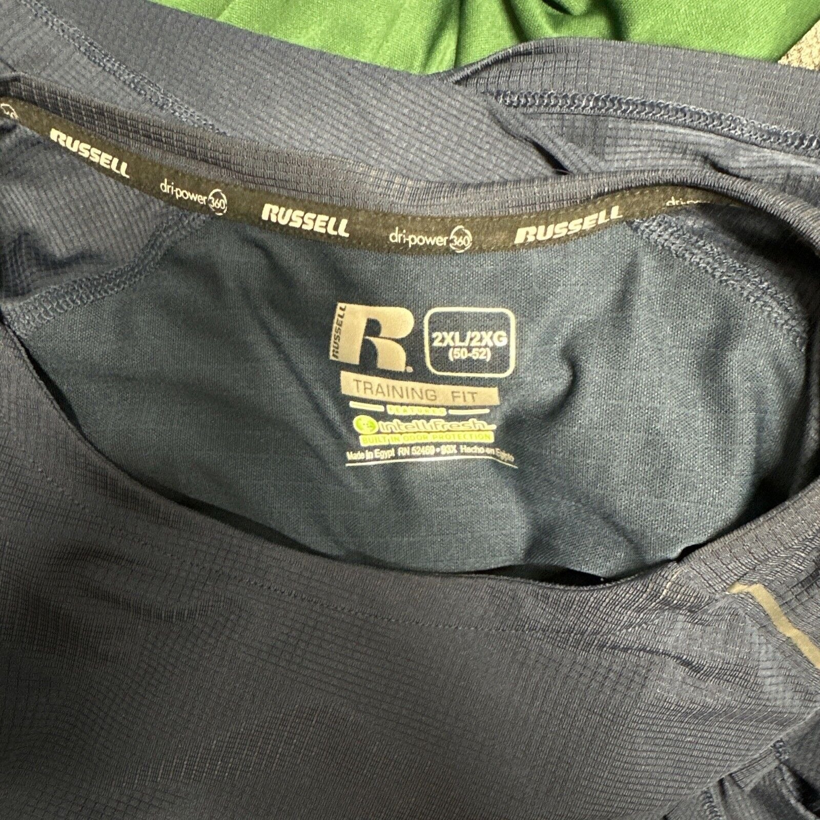 It's important to note that this shirt has been previously owned, but it's in great condition and has been well taken care of. The fabric wash is dark and the Intellifresh technology helps keep the shirt smelling fresh. Overall, this Russell tank top is a great addition to any activewear collection.