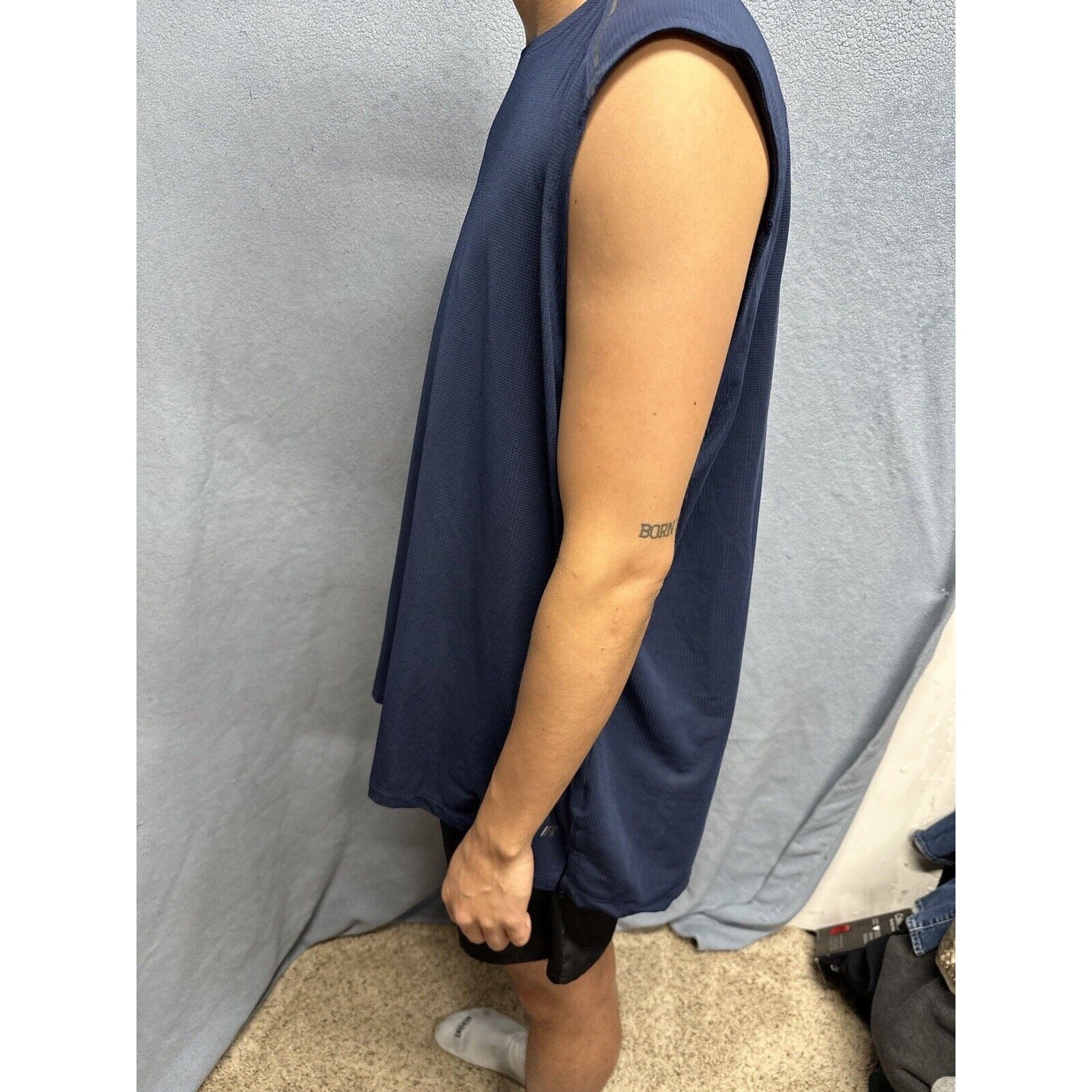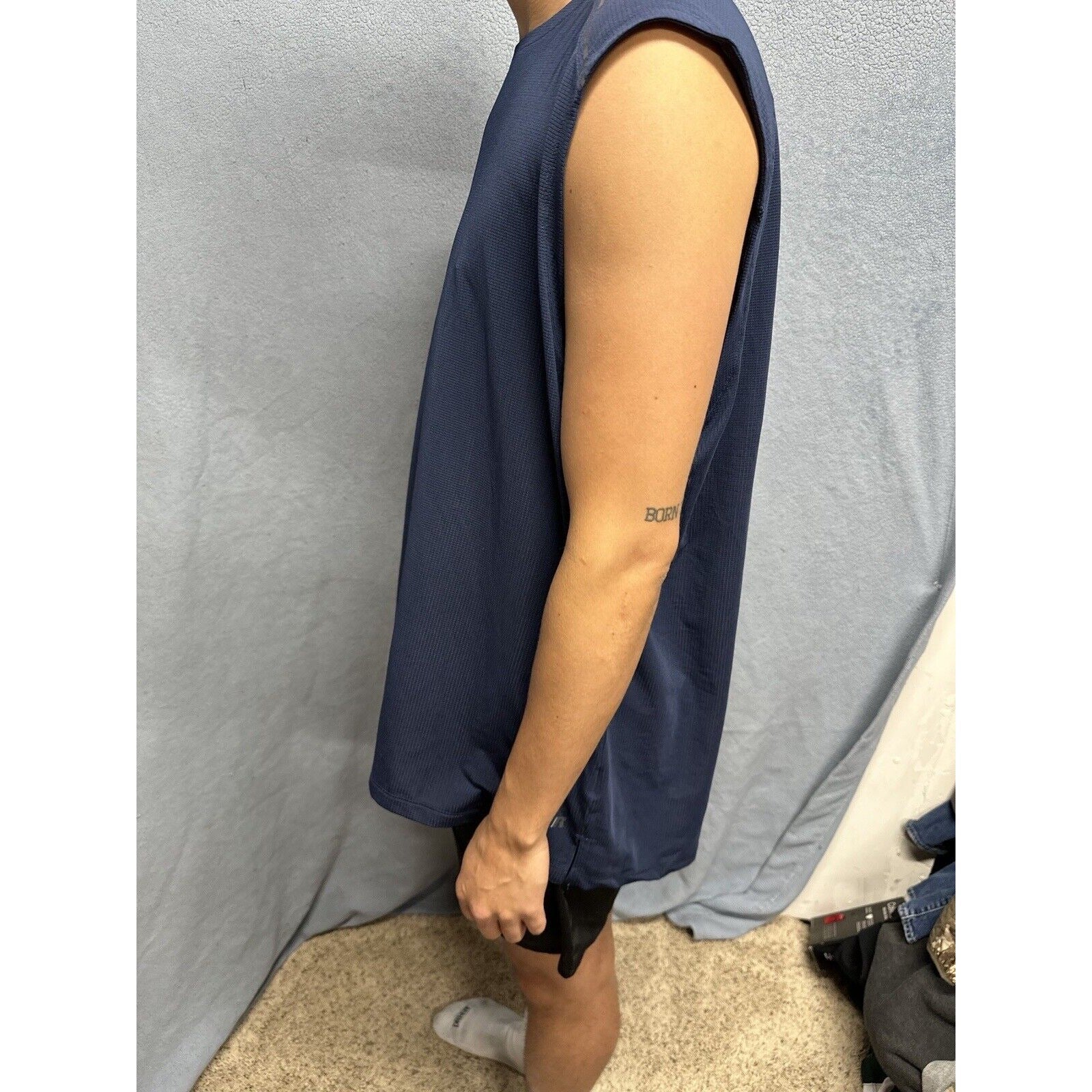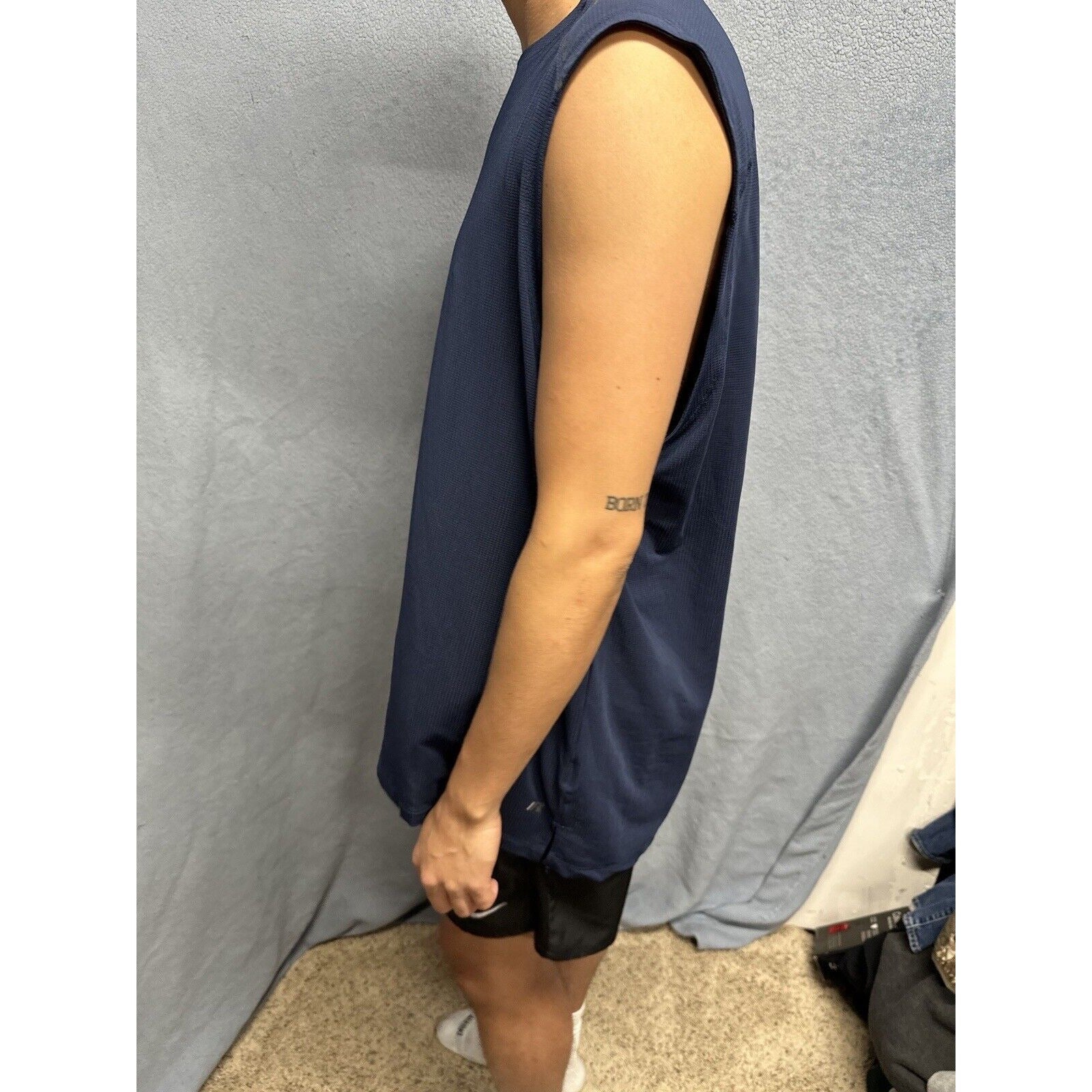 It's important to note that this shirt has been previously owned, but it's in great condition and has been well taken care of. The fabric wash is dark and the Intellifresh technology helps keep the shirt smelling fresh. Overall, this Russell tank top is a great addition to any activewear collection.