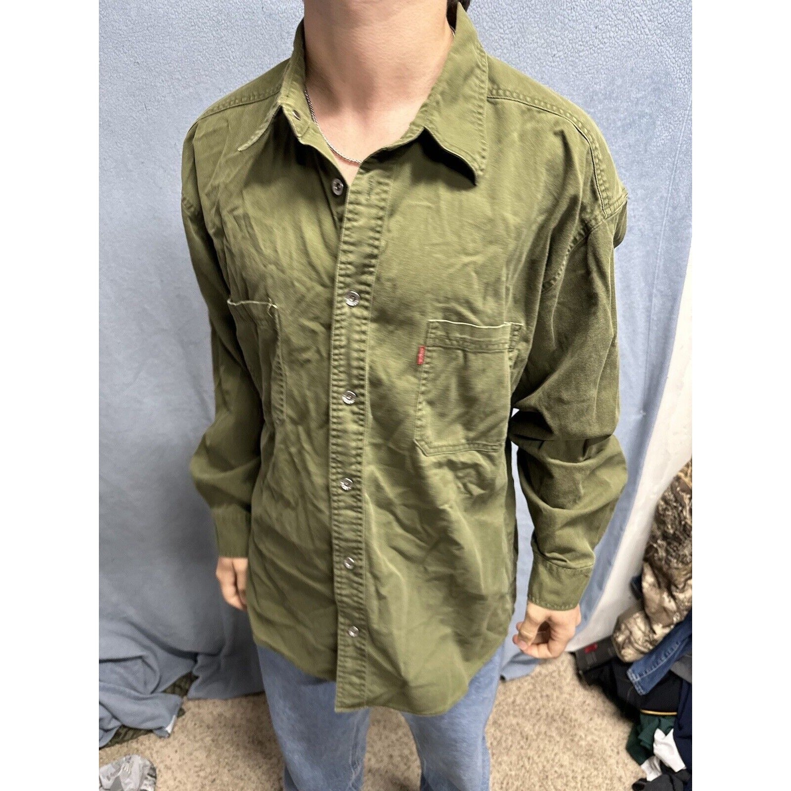 Men’s Drab Olive Green Levi’s Loose Fit Xl Cotton Button Up Long Sleeve Shirt