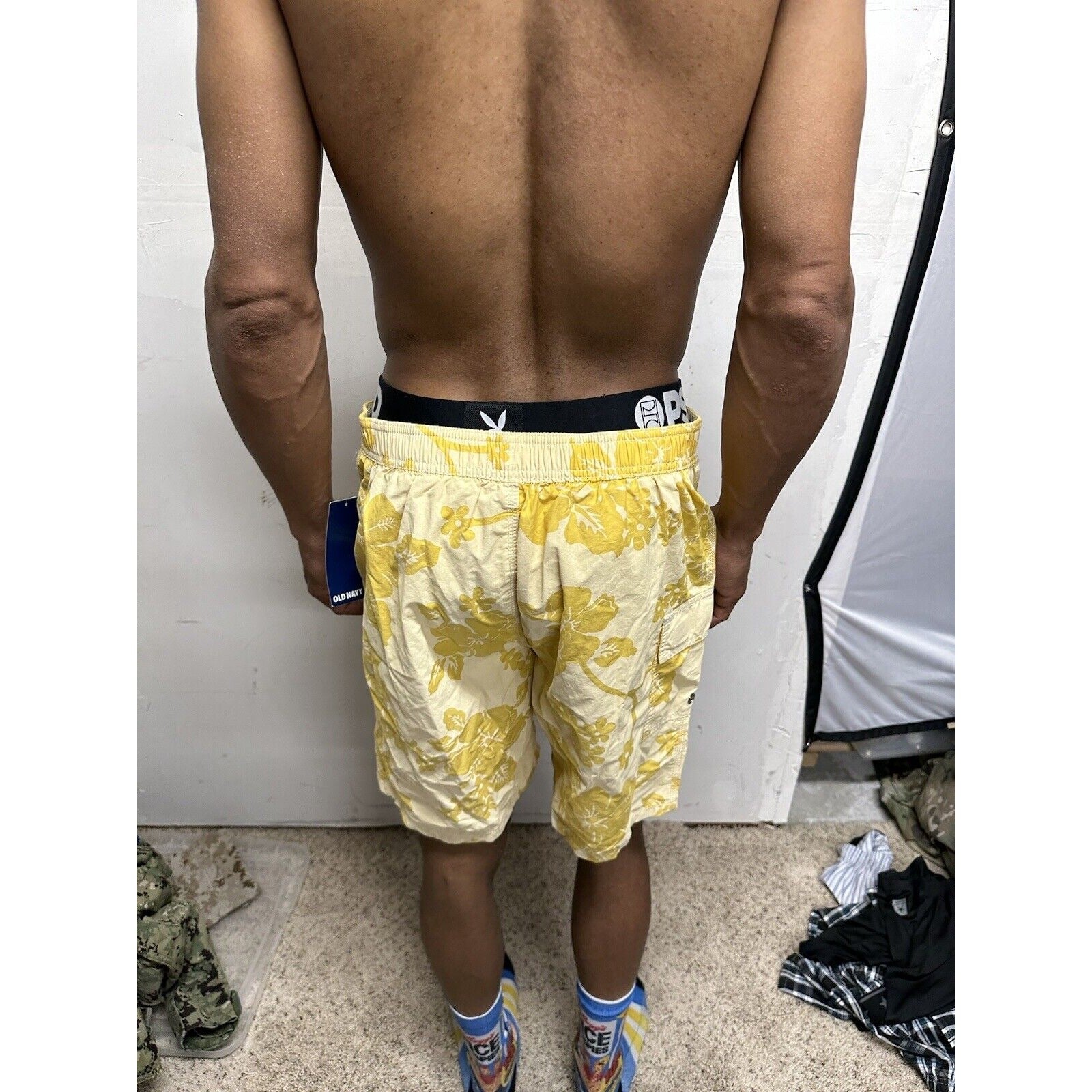 Men’s Floral Old Navy Medium Bathing Suit Combo Board Shorts Tropical yellow.