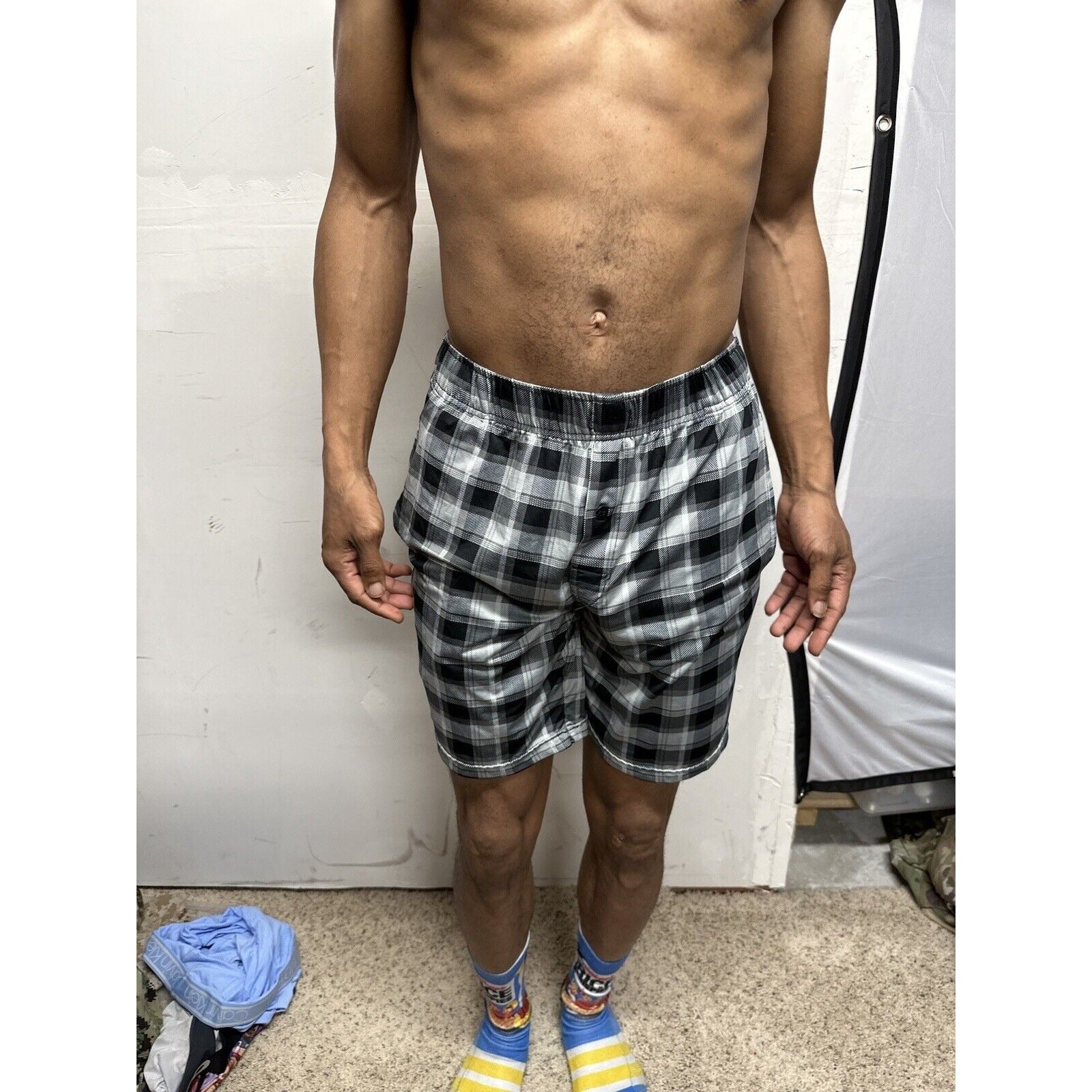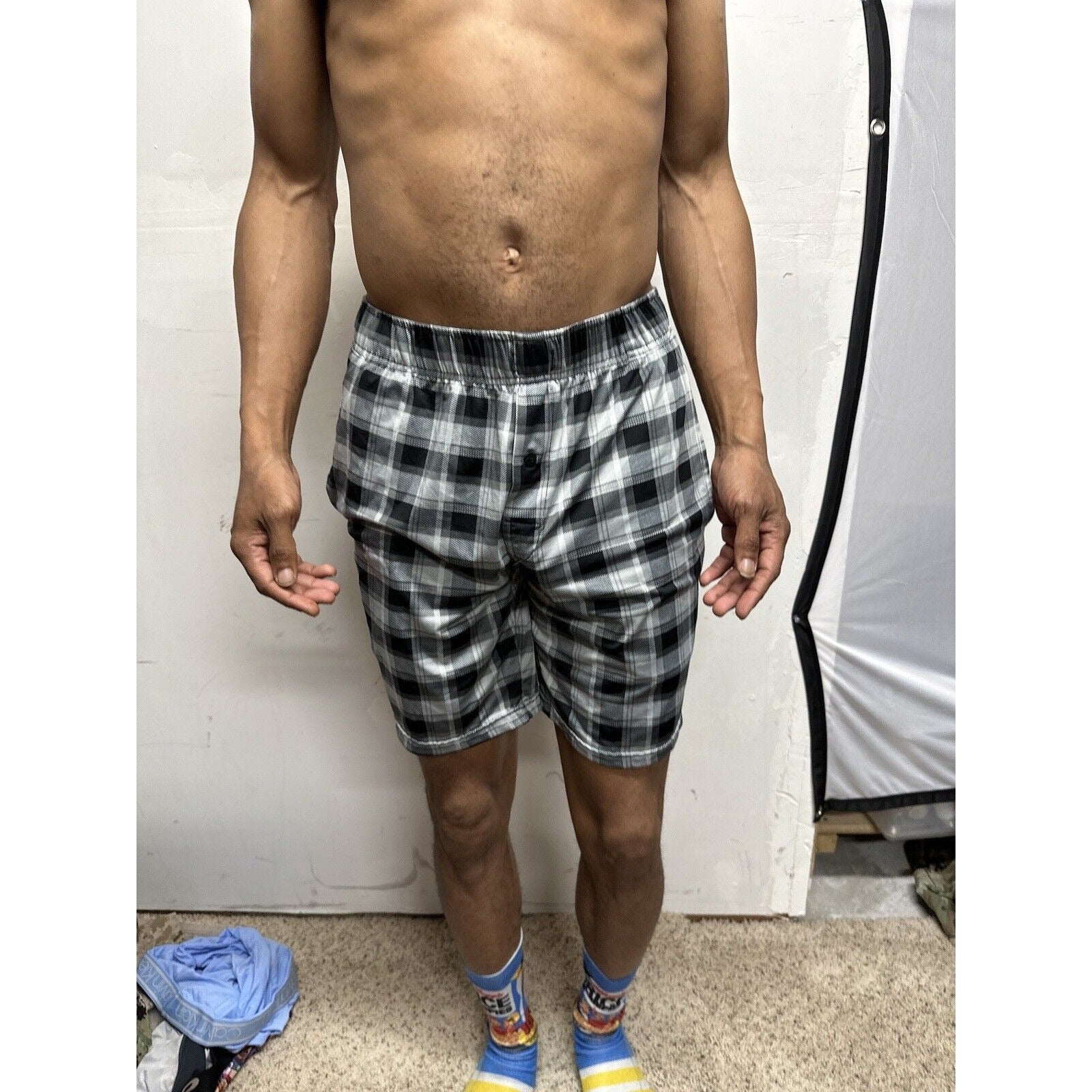 Men’s Gray And Black Fruit Of The Loom Small Lounge Shorts with pockets