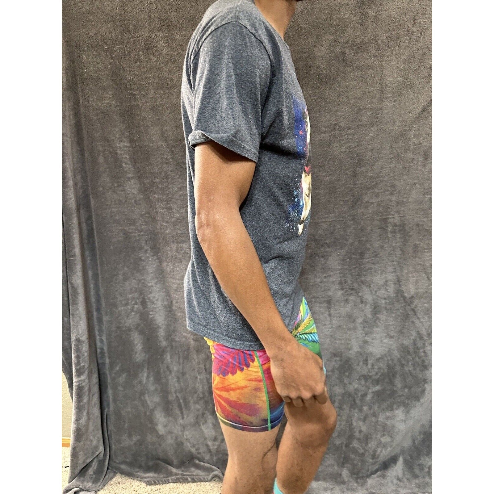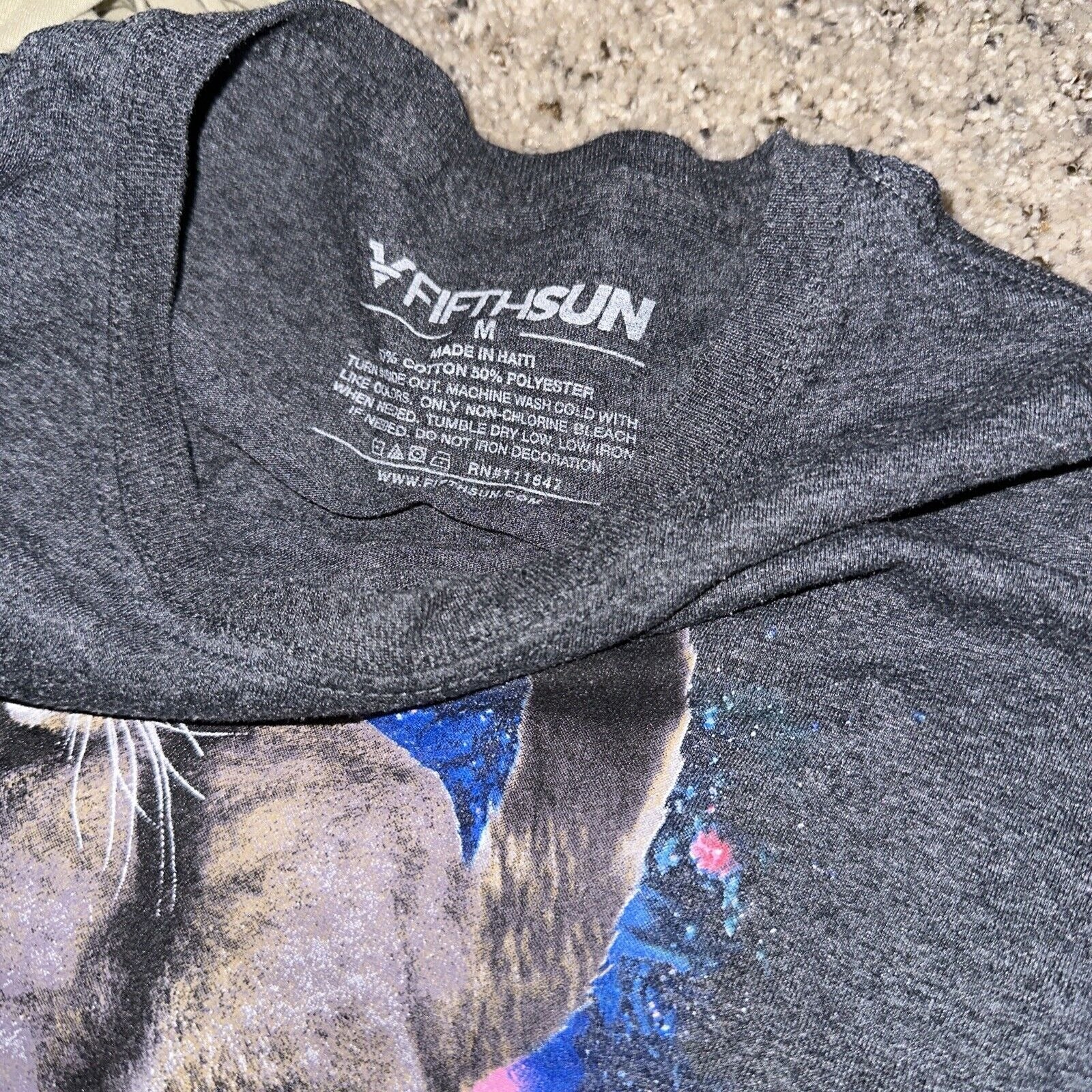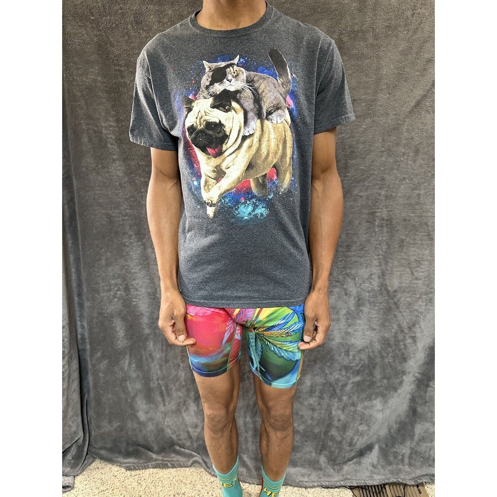 Men’s Gray Fifthsun Medium Tshirt Pug And Pirate Cat In Space.