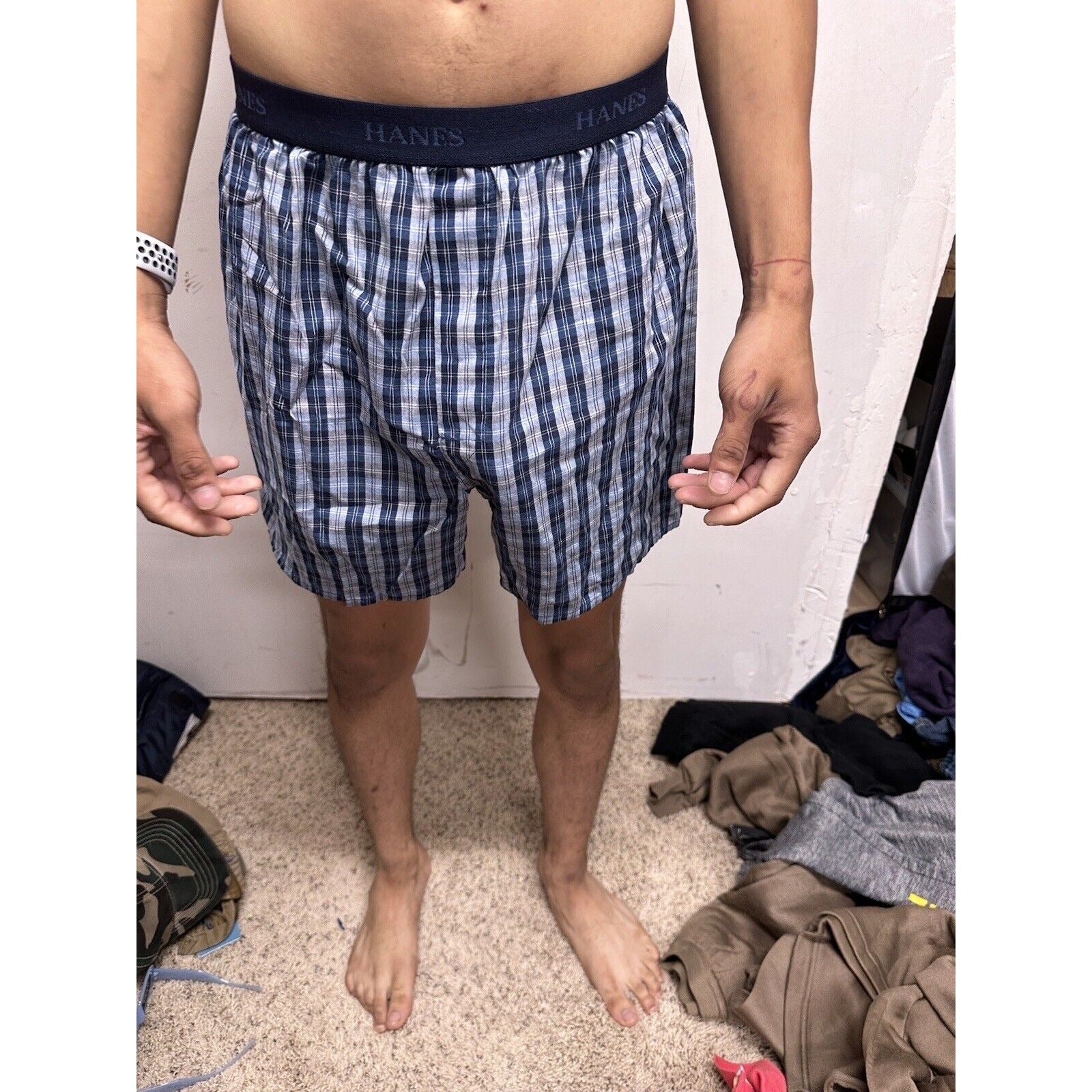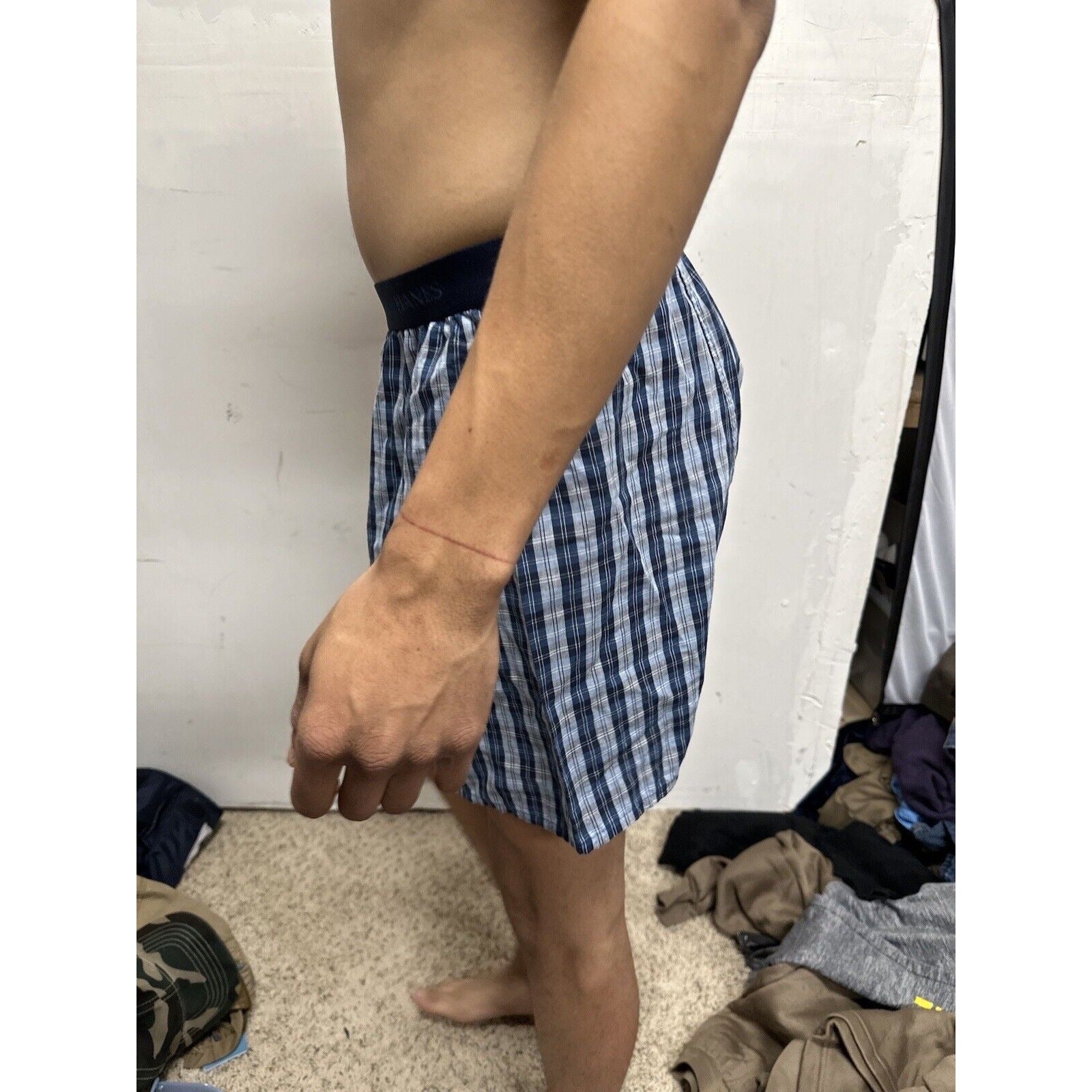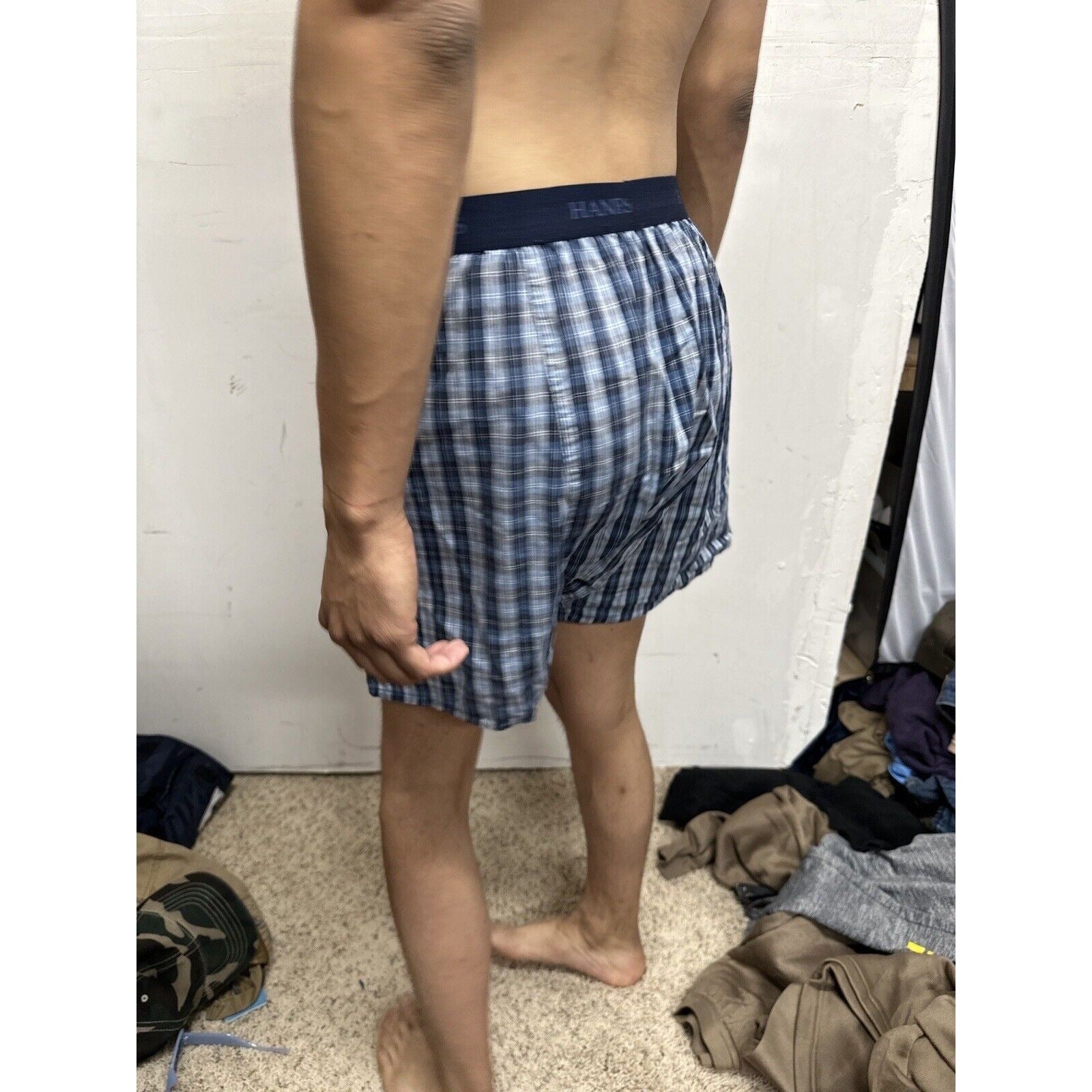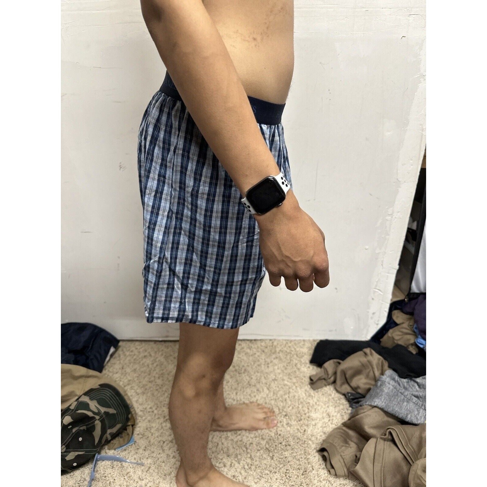 Men’s Hanes Blue Gray Plaid Medium Boxer Shorts Fruit Of The Loom