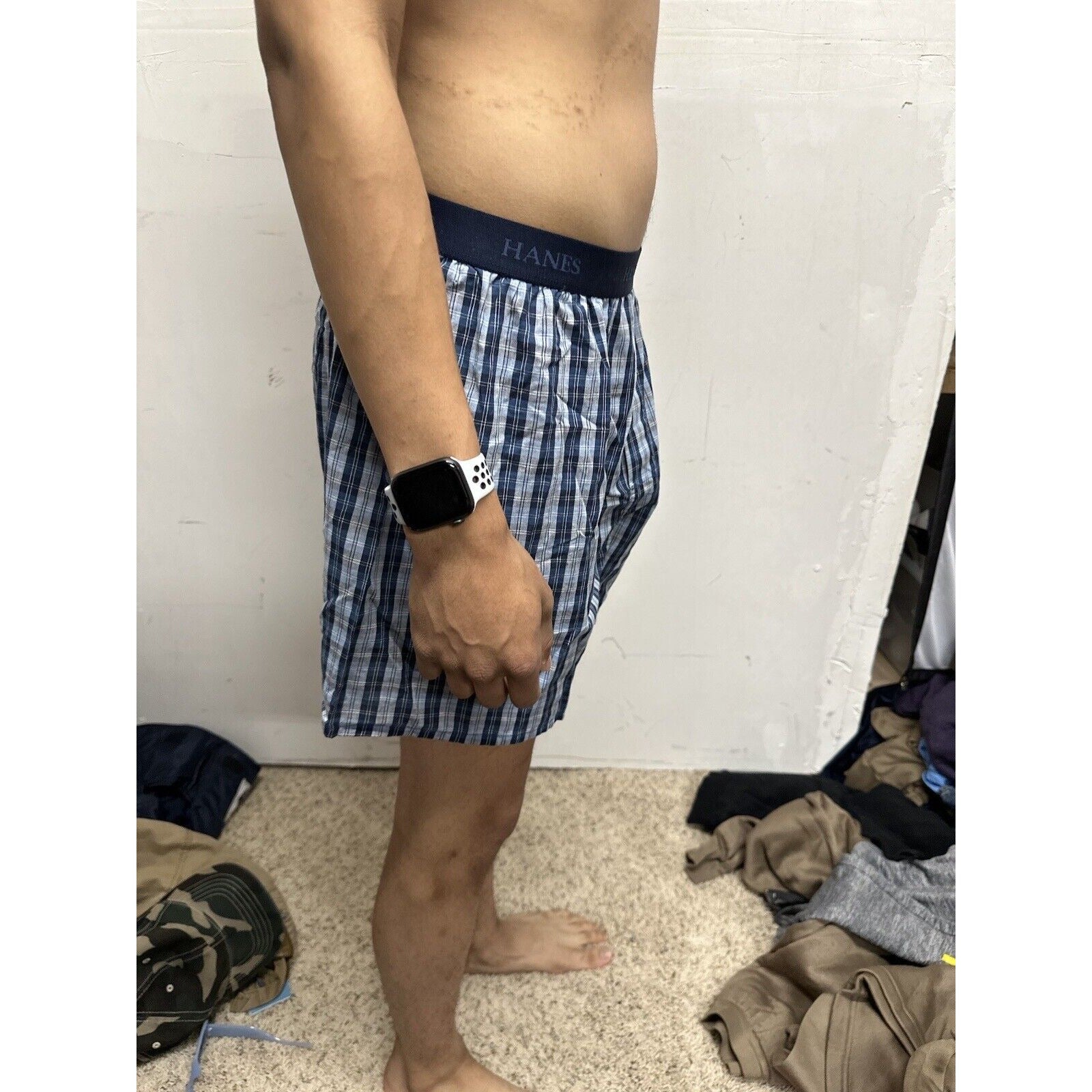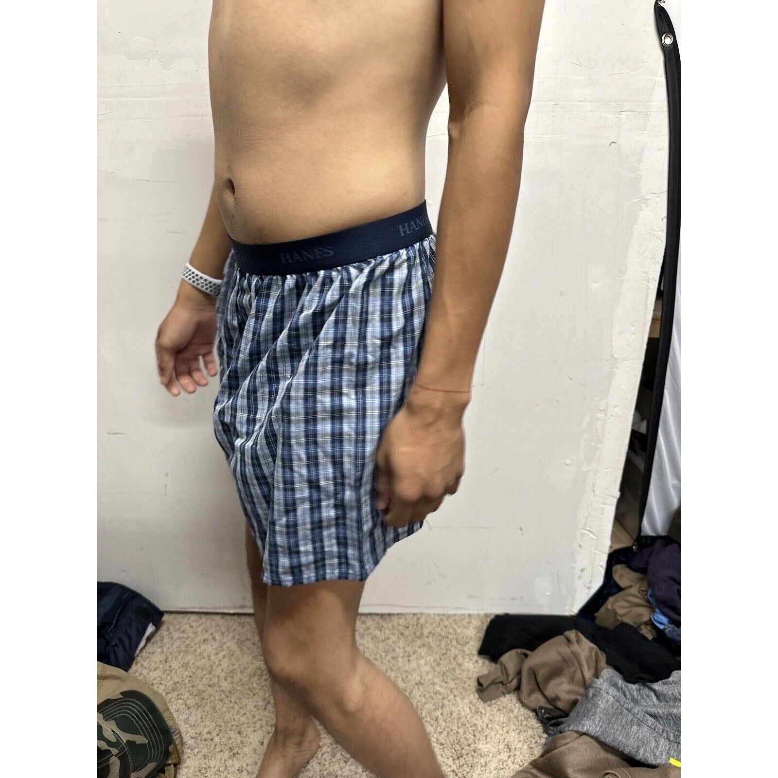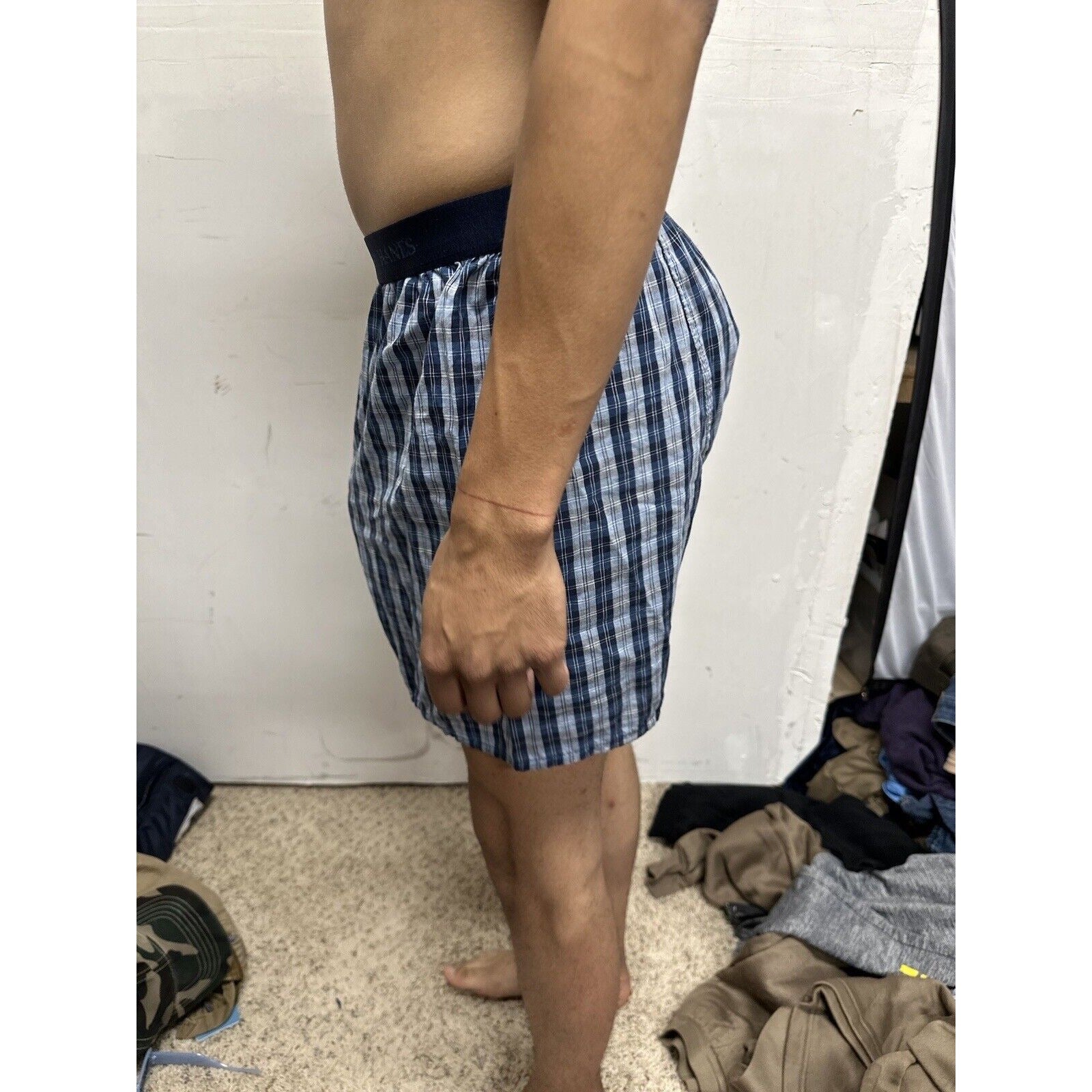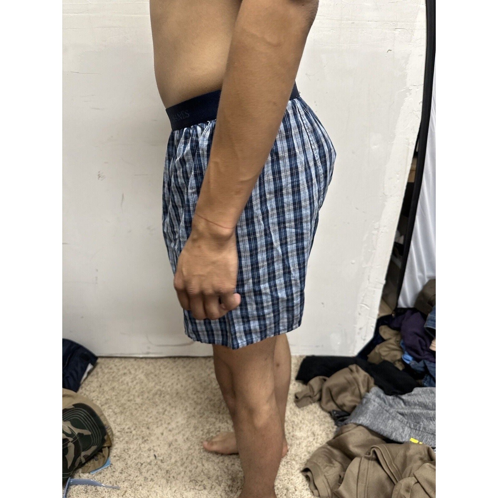 Men’s Hanes Blue Gray Plaid Medium Boxer Shorts Fruit Of The Loom