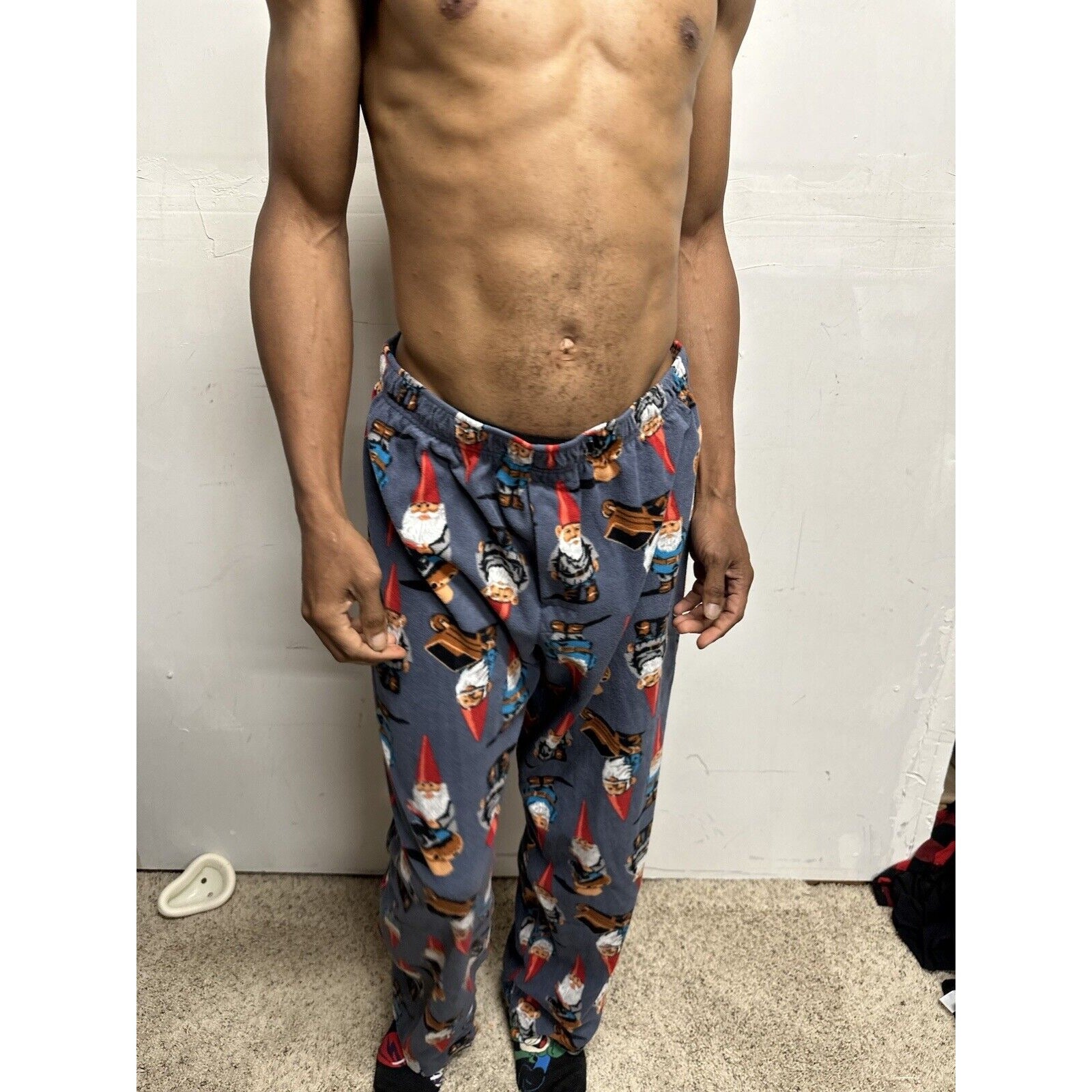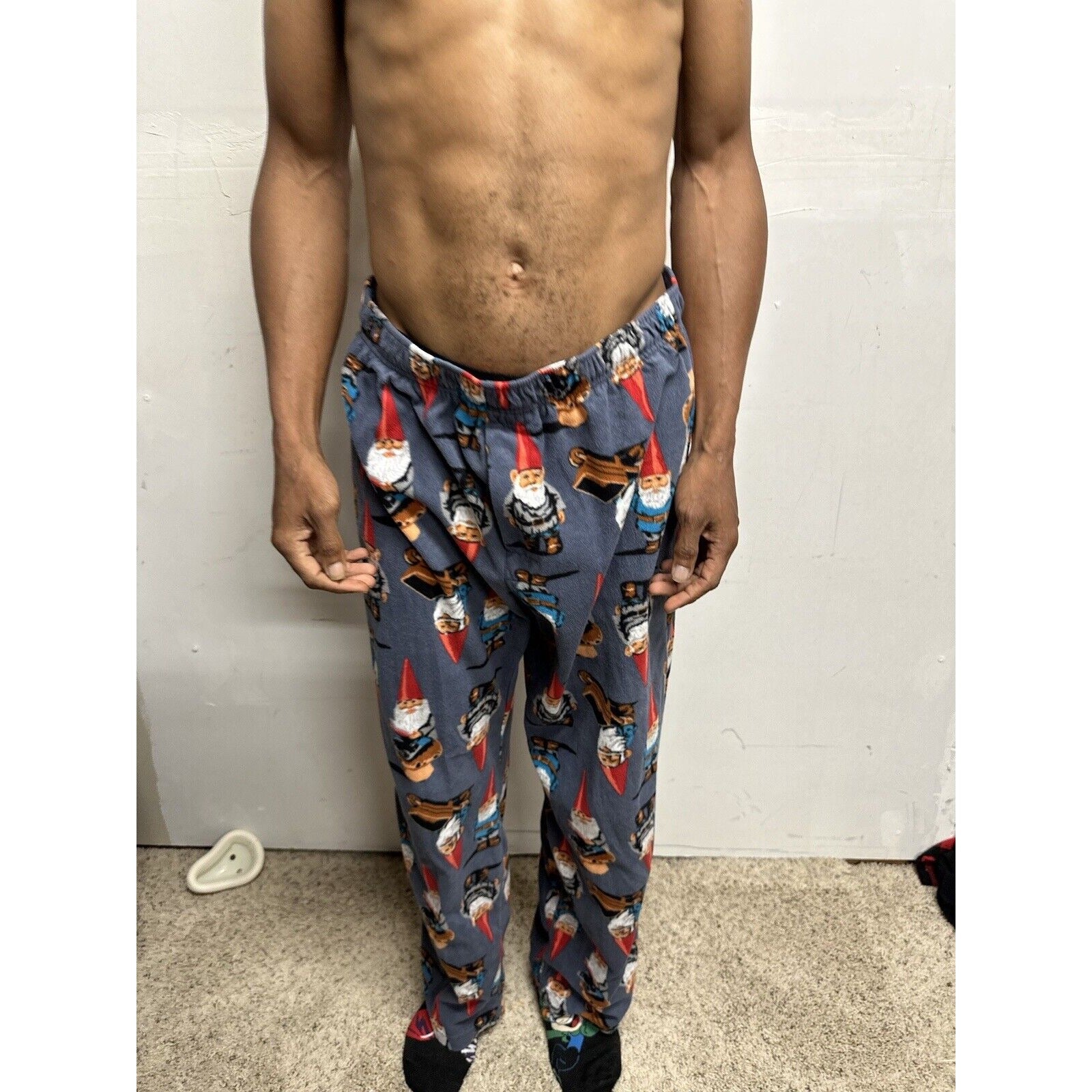 Men’s Large Gnome Wheelbarrow Lounge Pants Sleepwear. No pockets.