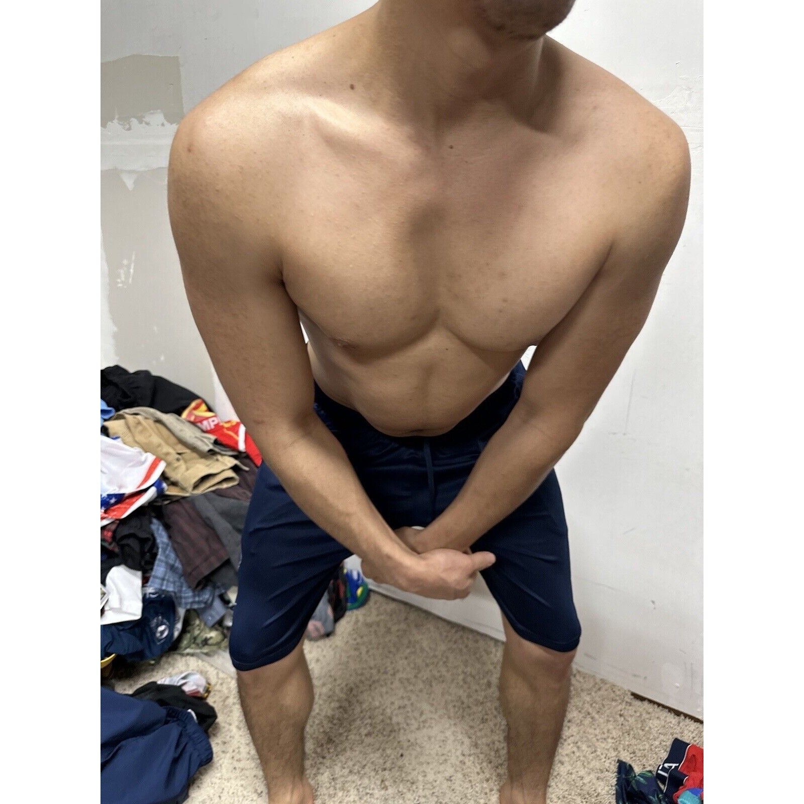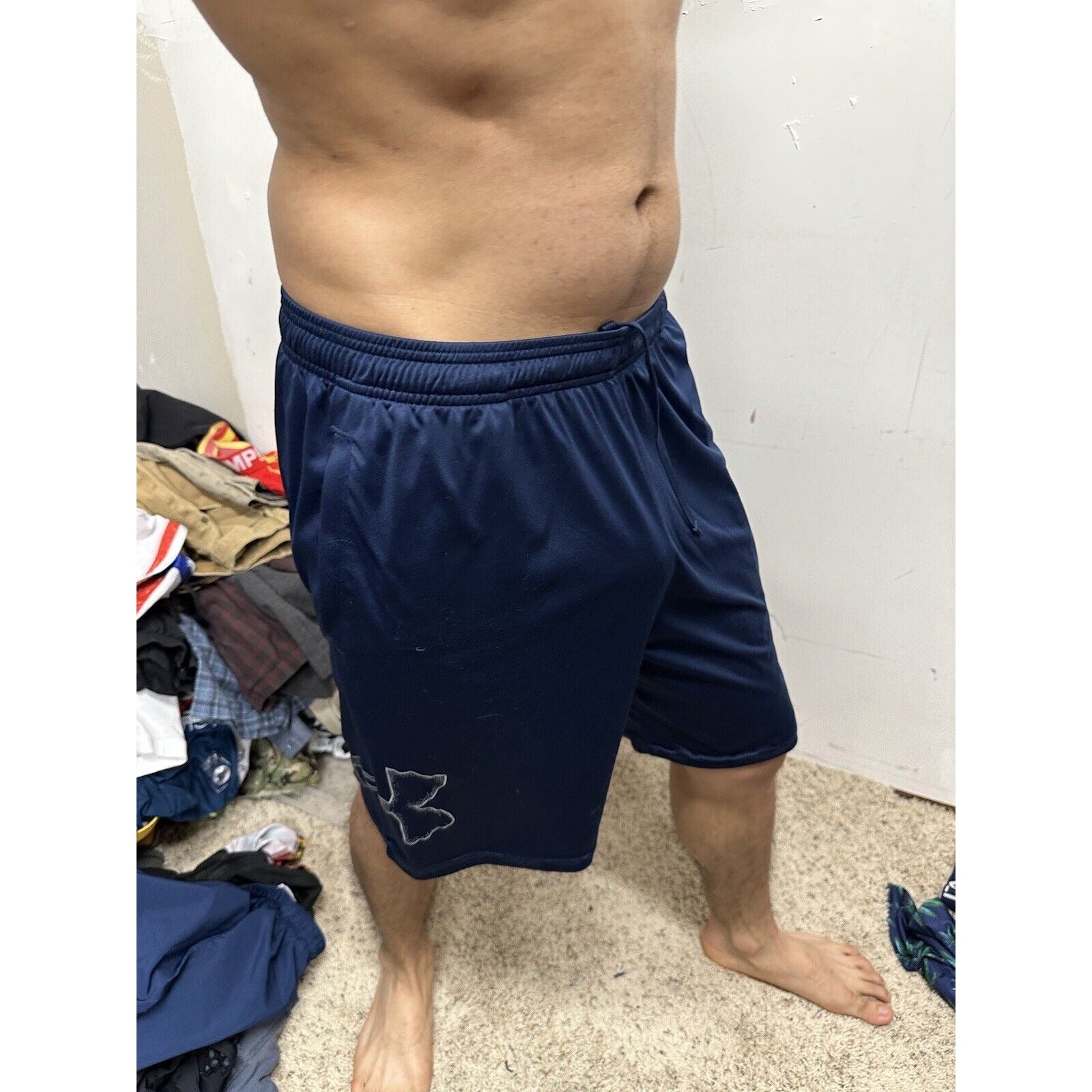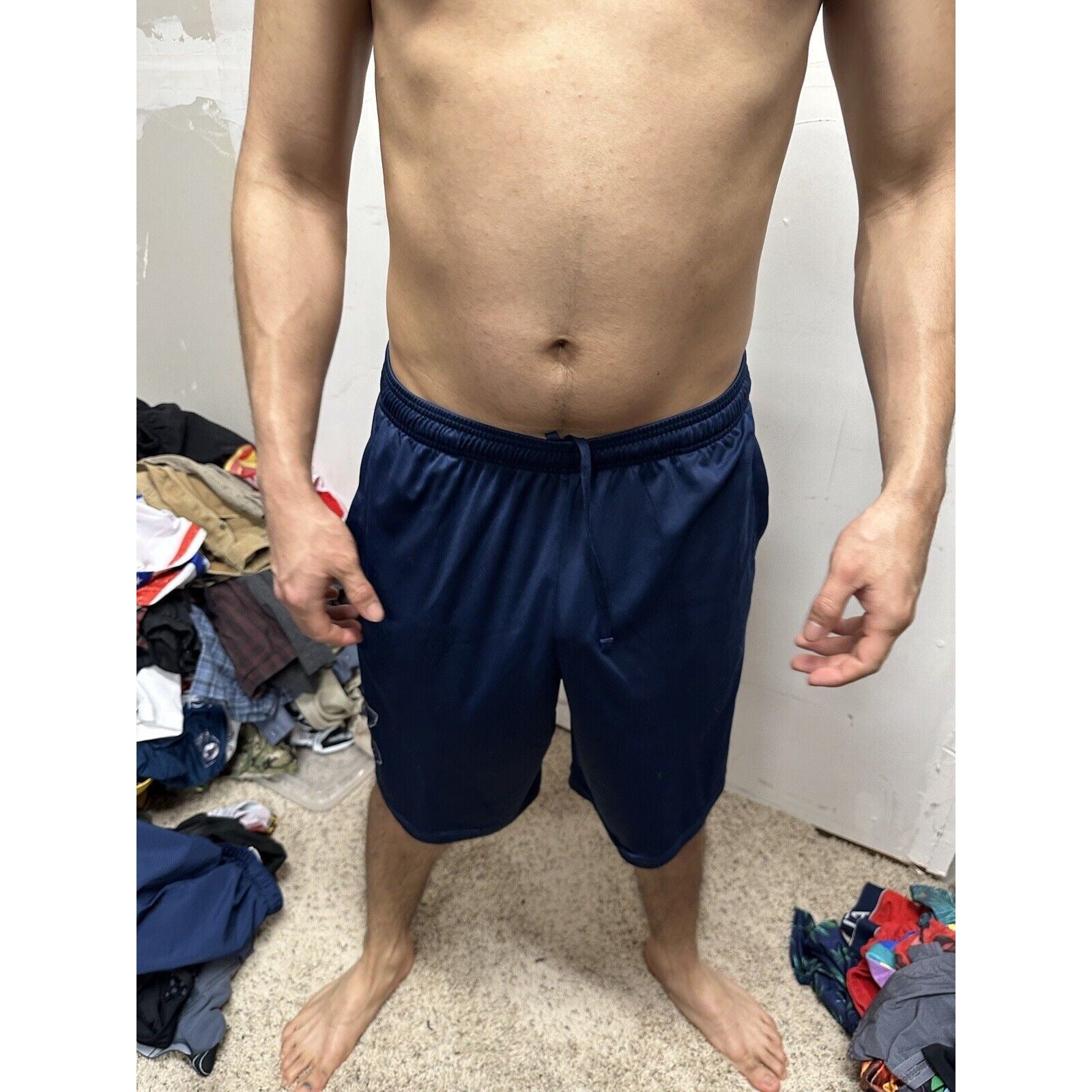 Men’s Large Heatgear Under Armour Athletic Shorts Dark Blue With Pockets.