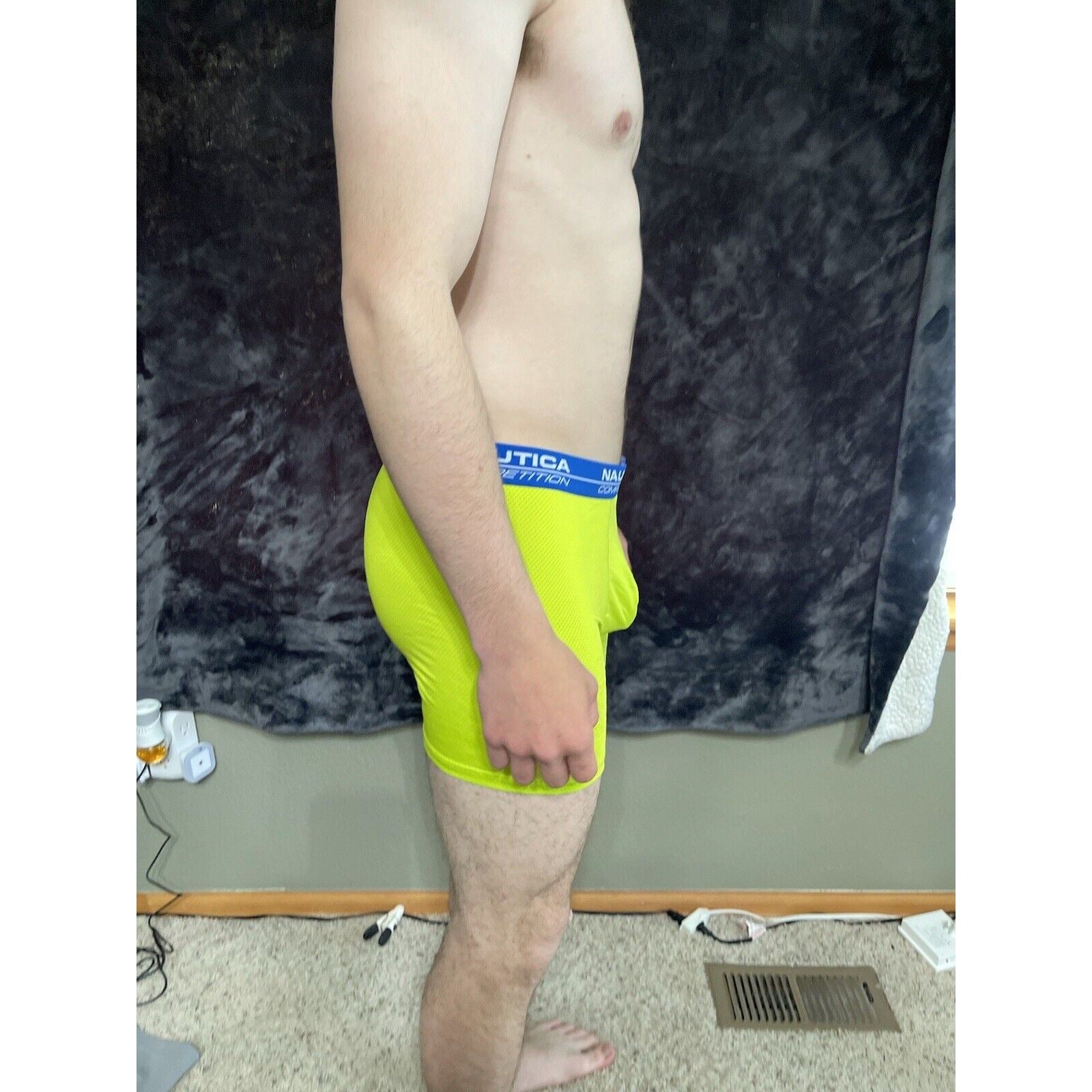 Men’s Large Neon Yellow Nautica 7% Spandex Compression Shorts New.