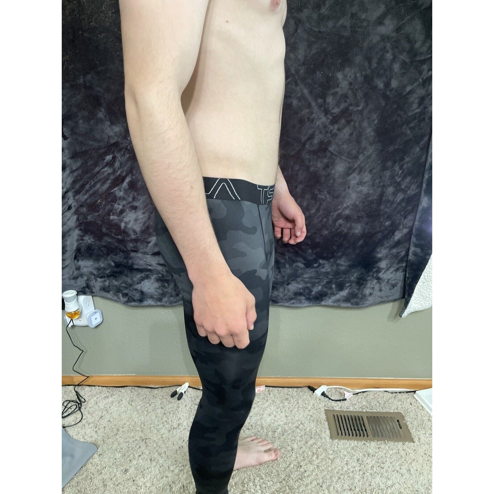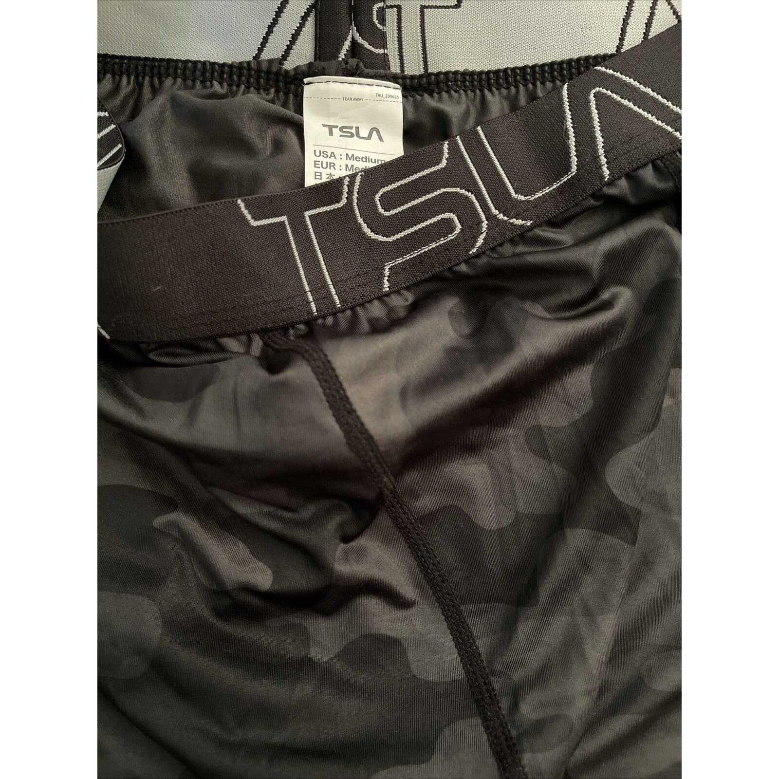 Men’s Medium Dark Gray Camo TSLA Base Layer Compression Pants.