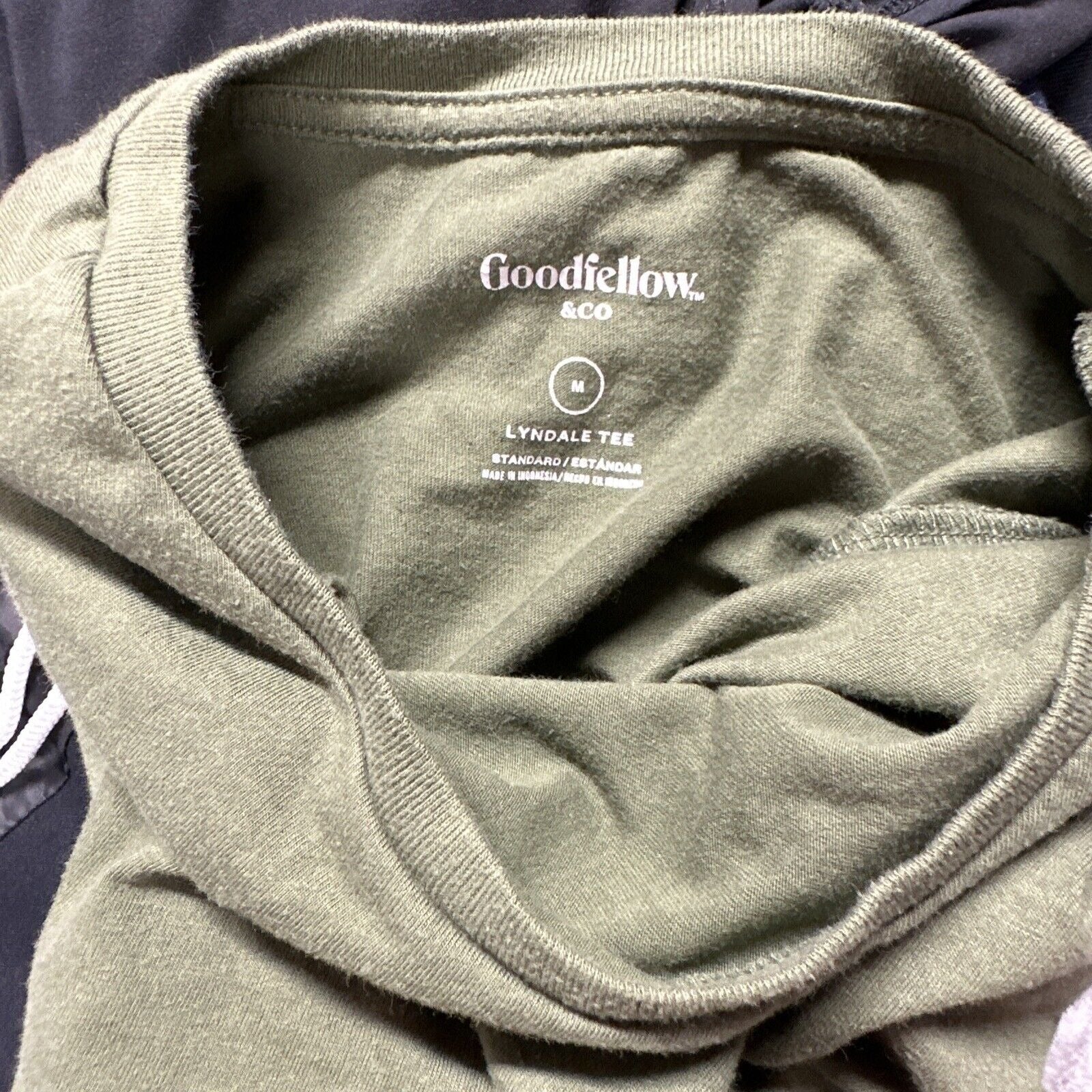 This olive green Good Fellow Lyndale Tee is a great addition to any man's wardrobe. It's made of high-quality material that ensures comfort and style. The shirt comes in a regular fit and is available in size M. The color is perfect for any occasion, and it's easy to pair with any outfit. The shirt is in excellent condition and has been well taken care of. It's perfect for casual wear and can be dressed up or down depending on the occasion.