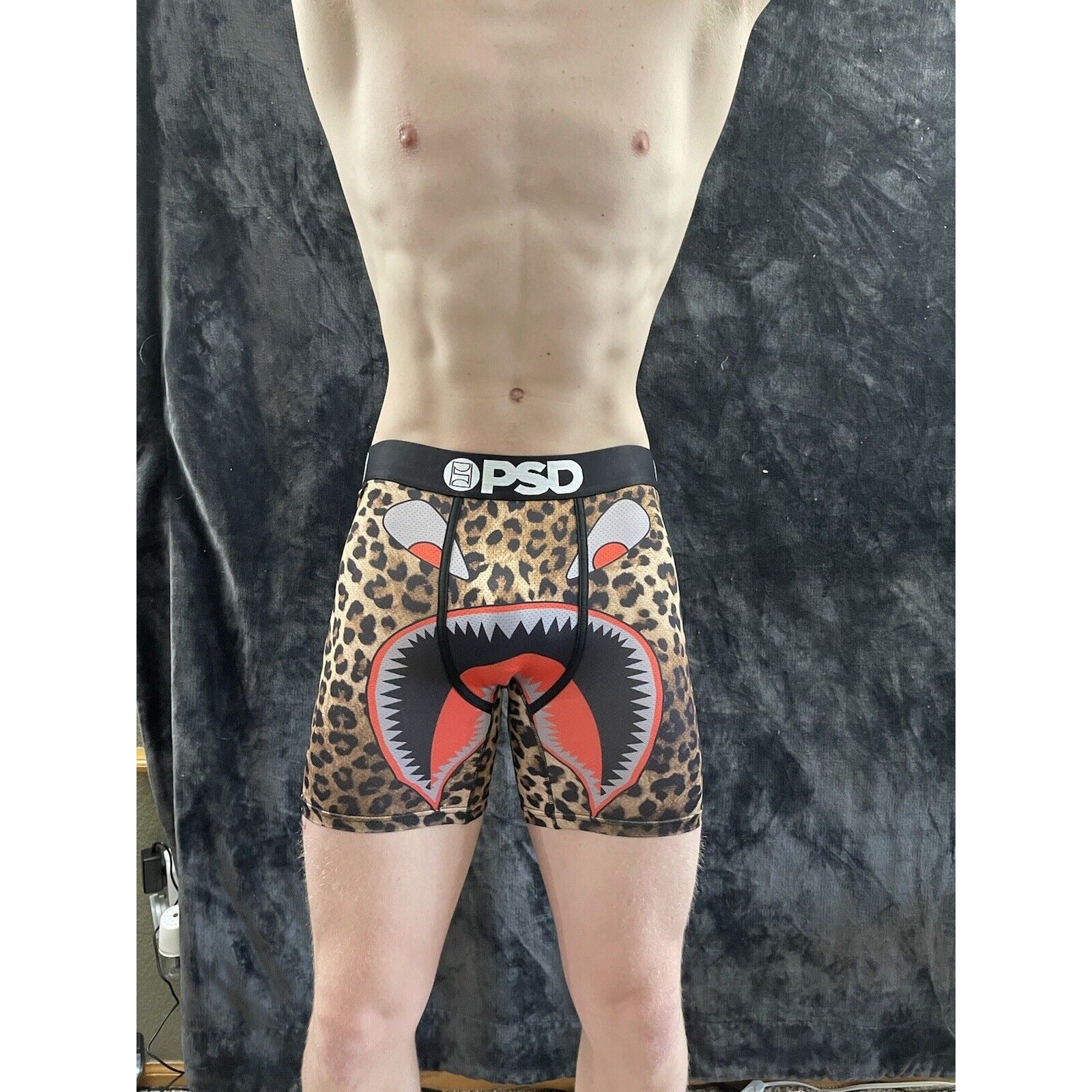 Men’s PSD Cheetah Pattern Angry Face Boxer Briefs Large.