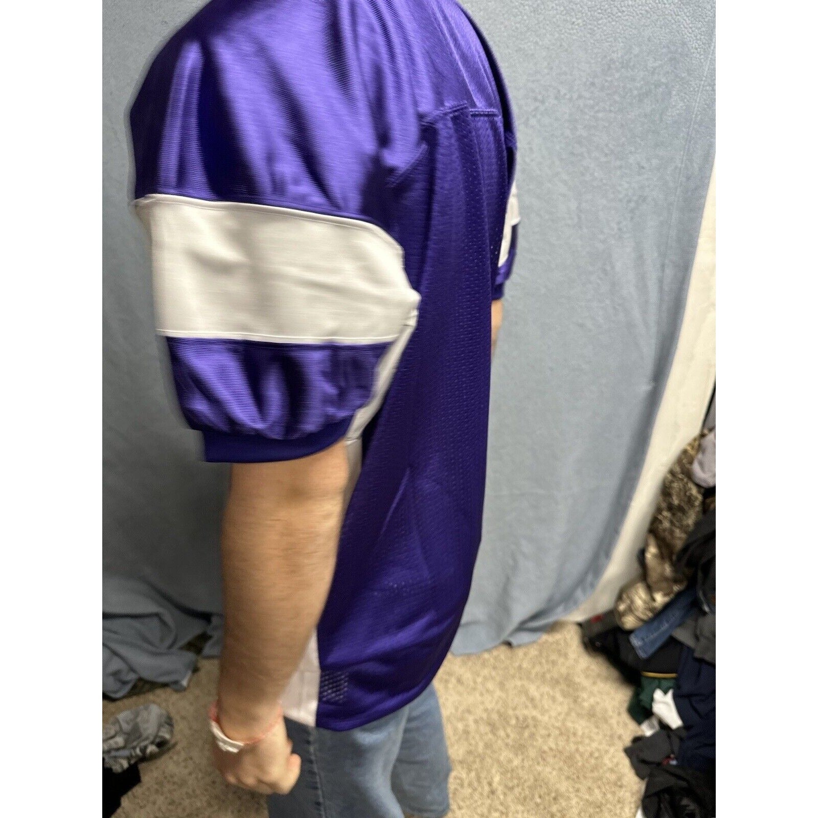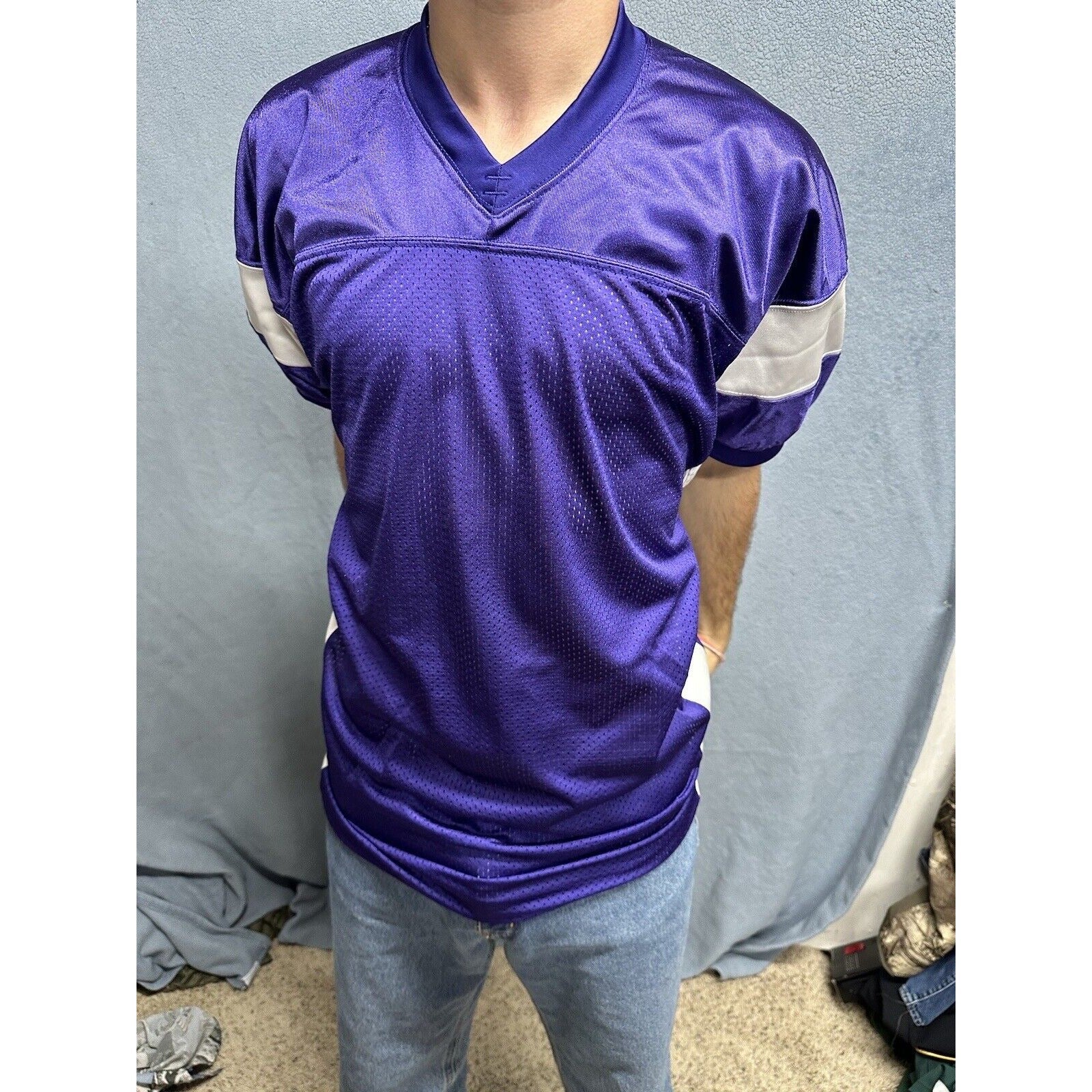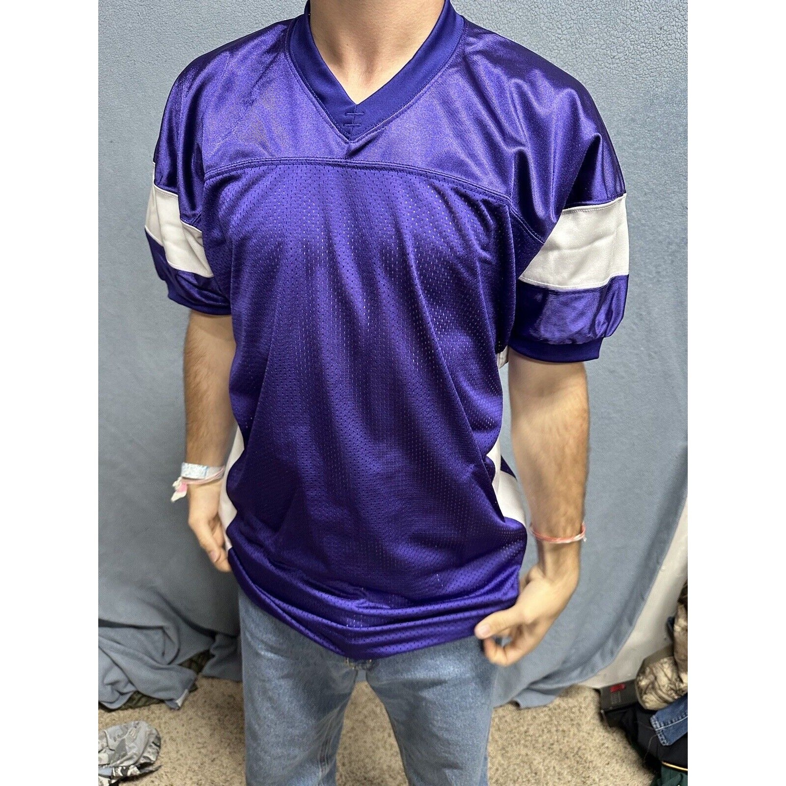 This Champro football jersey is perfect for any player looking for a comfortable and stylish addition to their wardrobe. The purple and white design is eye-catching and sure to make a statement on the field. Made for a size medium, this jersey is suitable for a variety of athletes. Whether you're a seasoned pro or just starting out, this jersey is a great choice for football players of all levels.