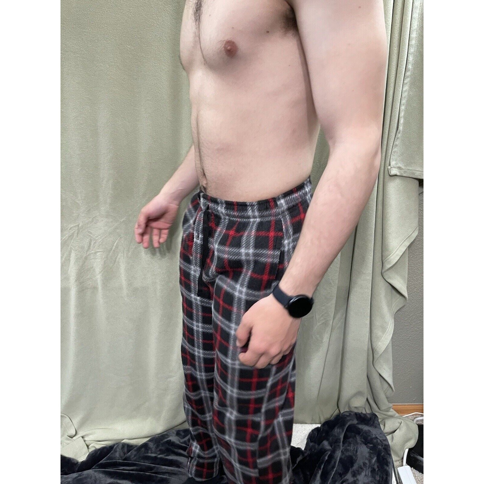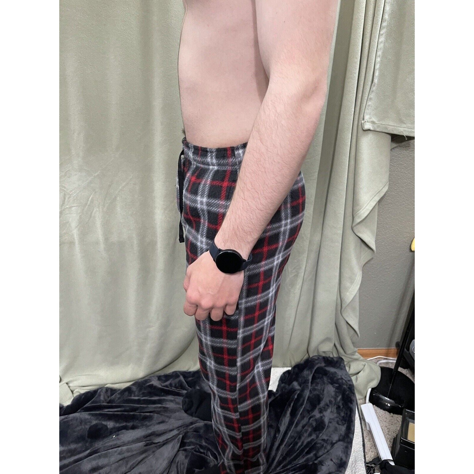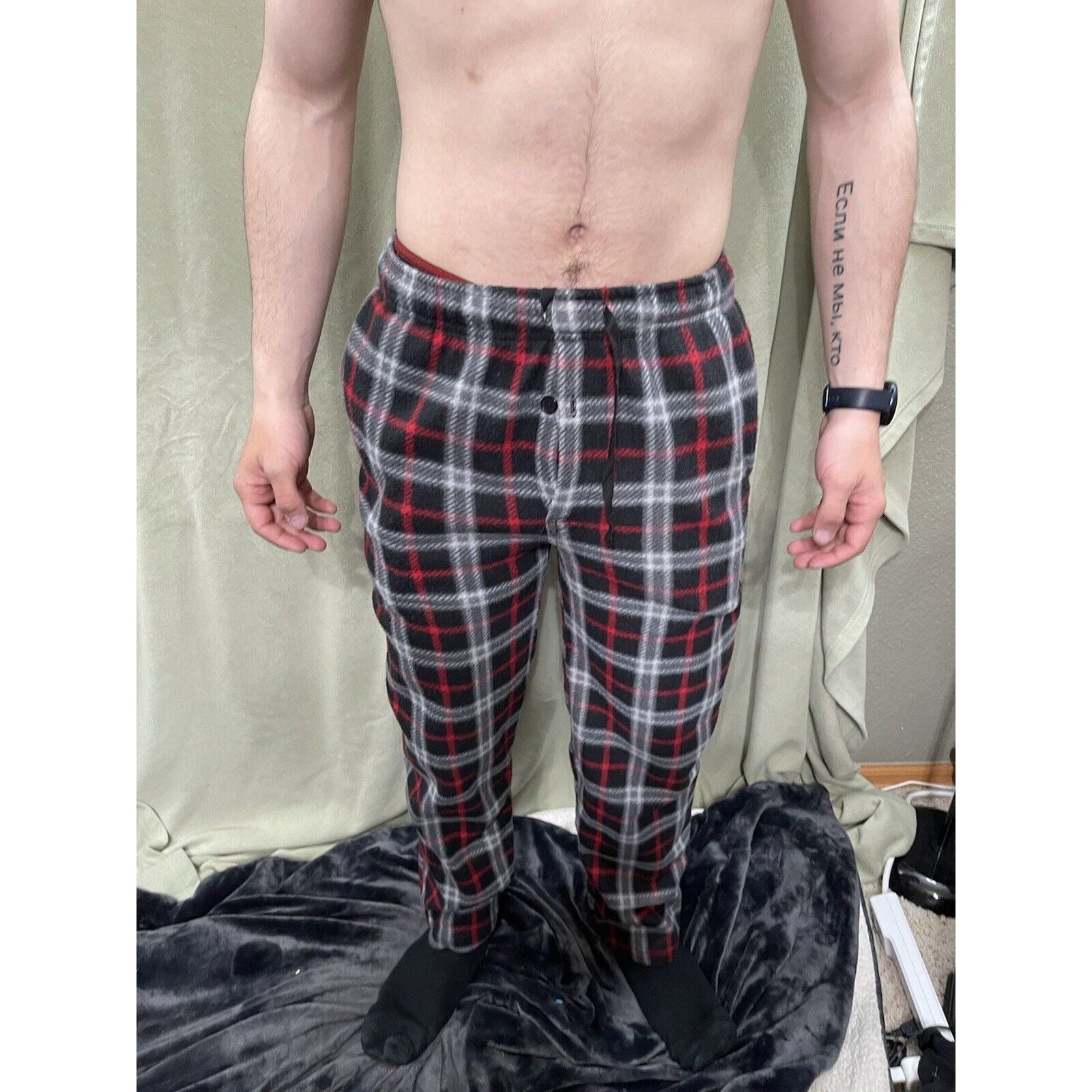 Men’s Sleepwear Fruit Of The Loom Small Red Black Plaid Flannel. Condition is "Pre-owned".