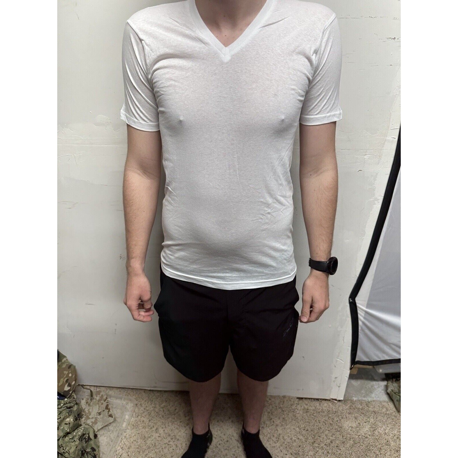 Men’s Small White Cotton Crown V-neck T-shirt. .