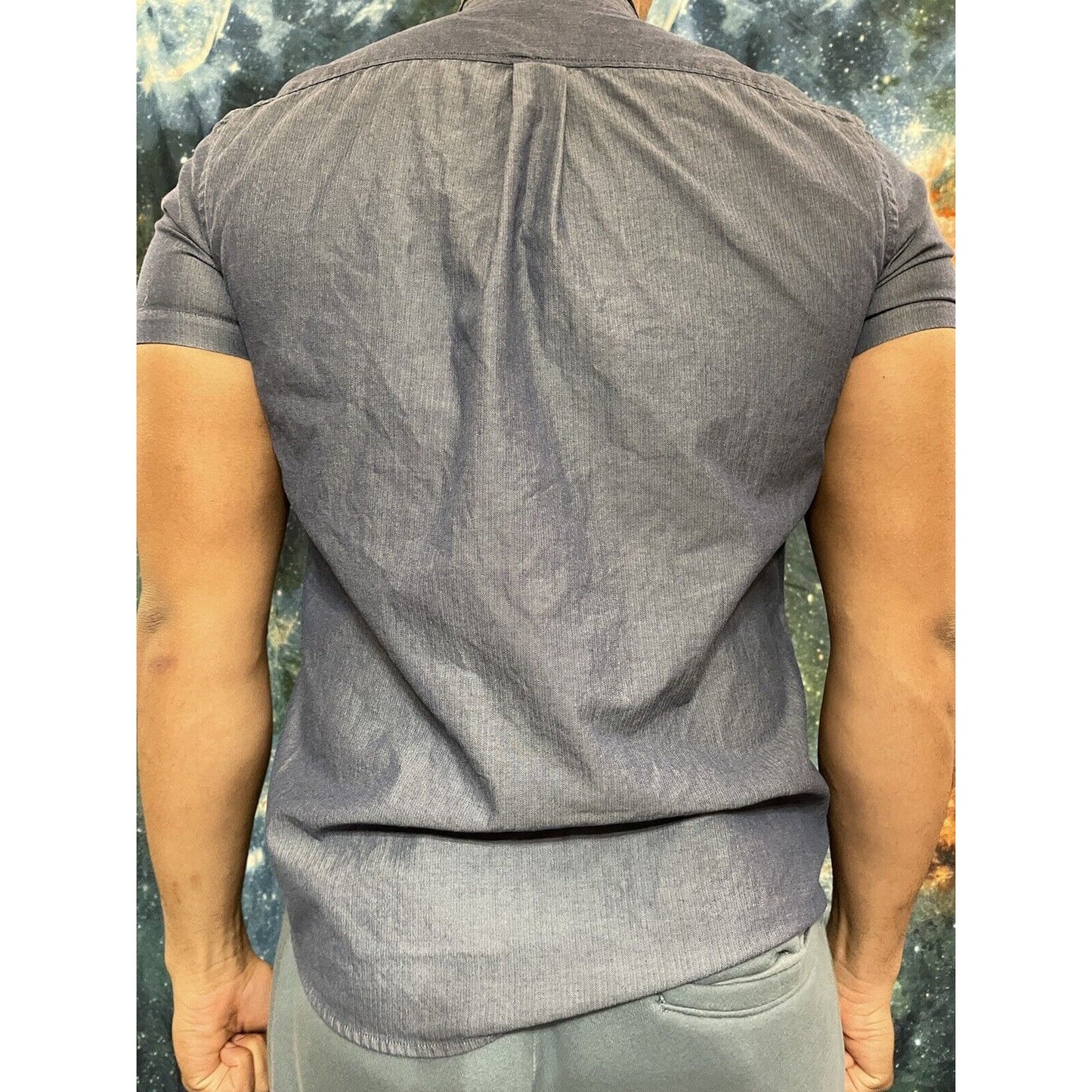Men’s Superdry Ultimate Oxford Shirt Co. medium button up blue gray shirt.
