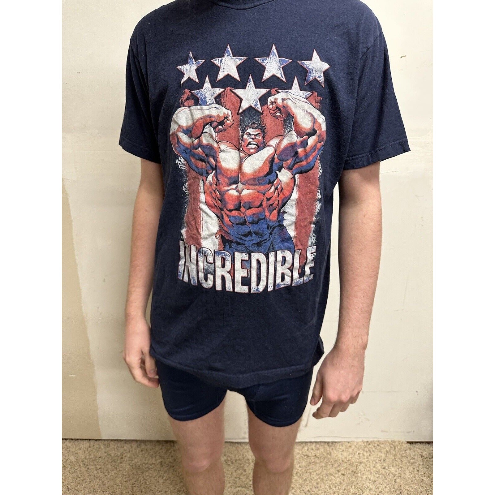 men’s tultex large dark blue incredible hulk tshirt short sleeve.