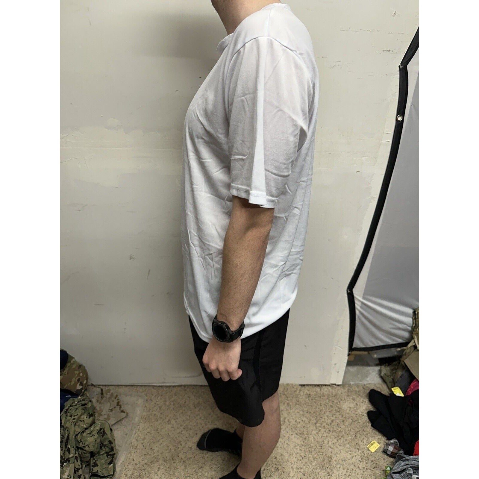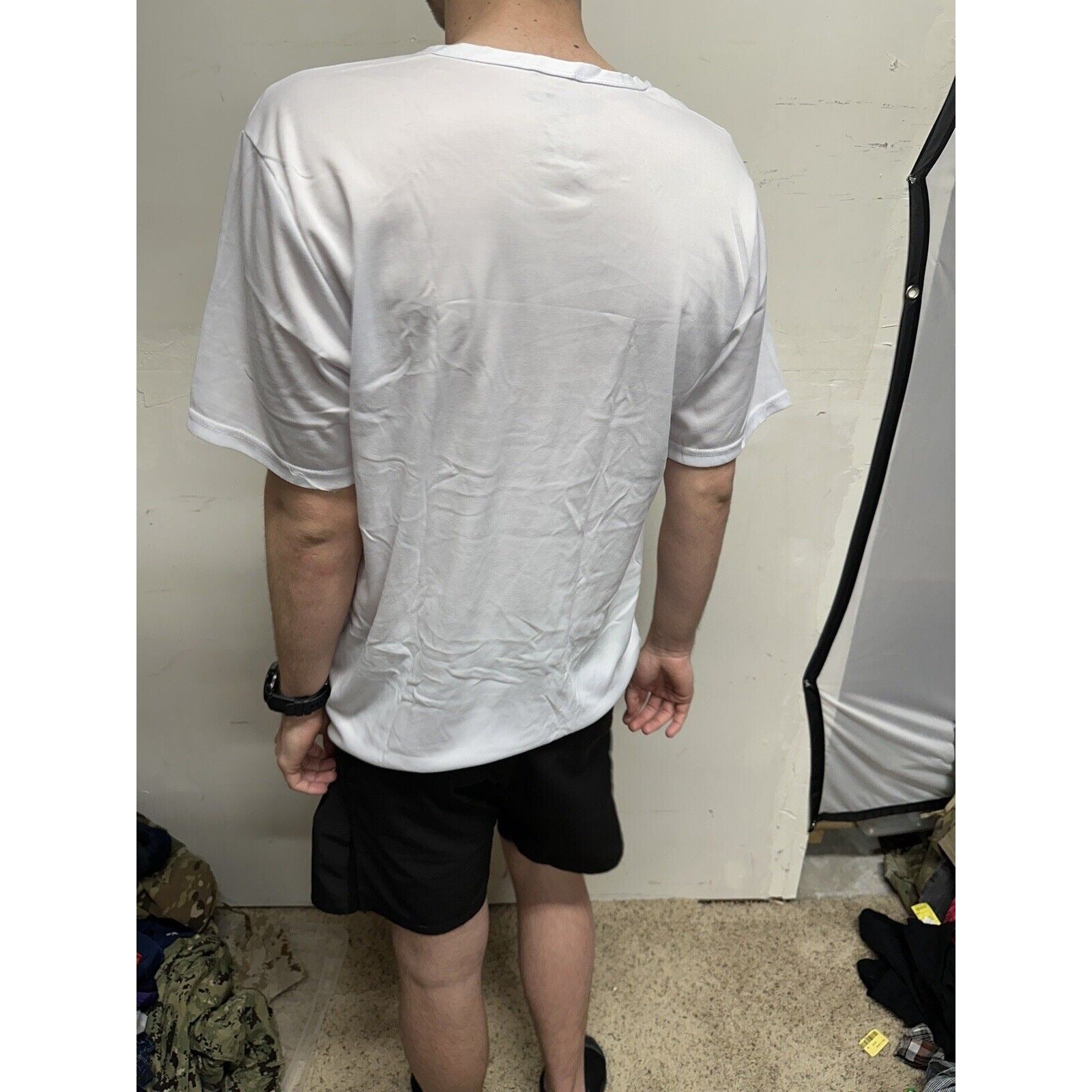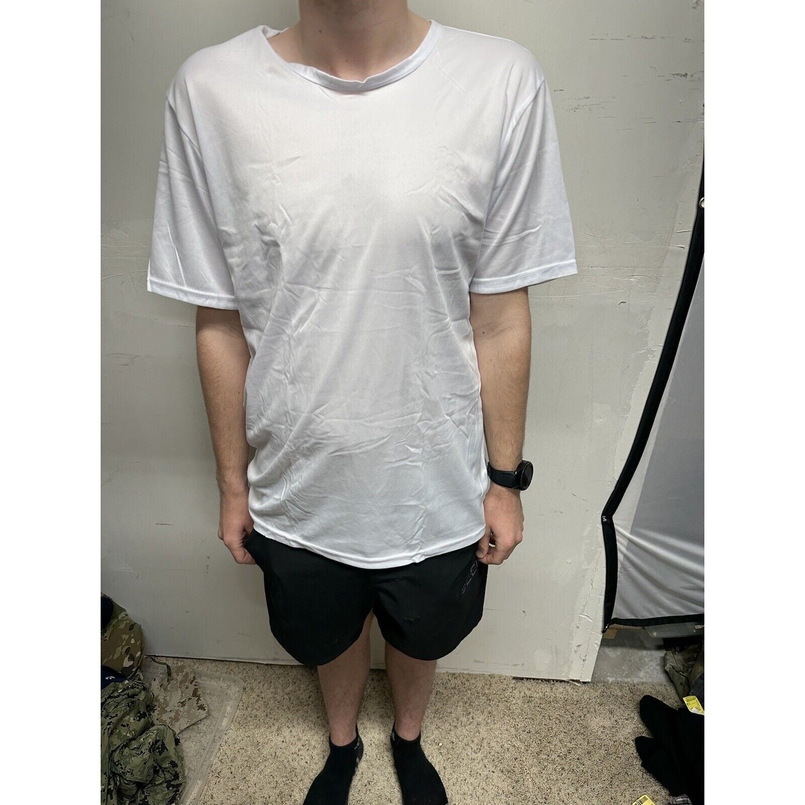 Men’s White Poly TKO Large Short Sleeve Workout Shirt.