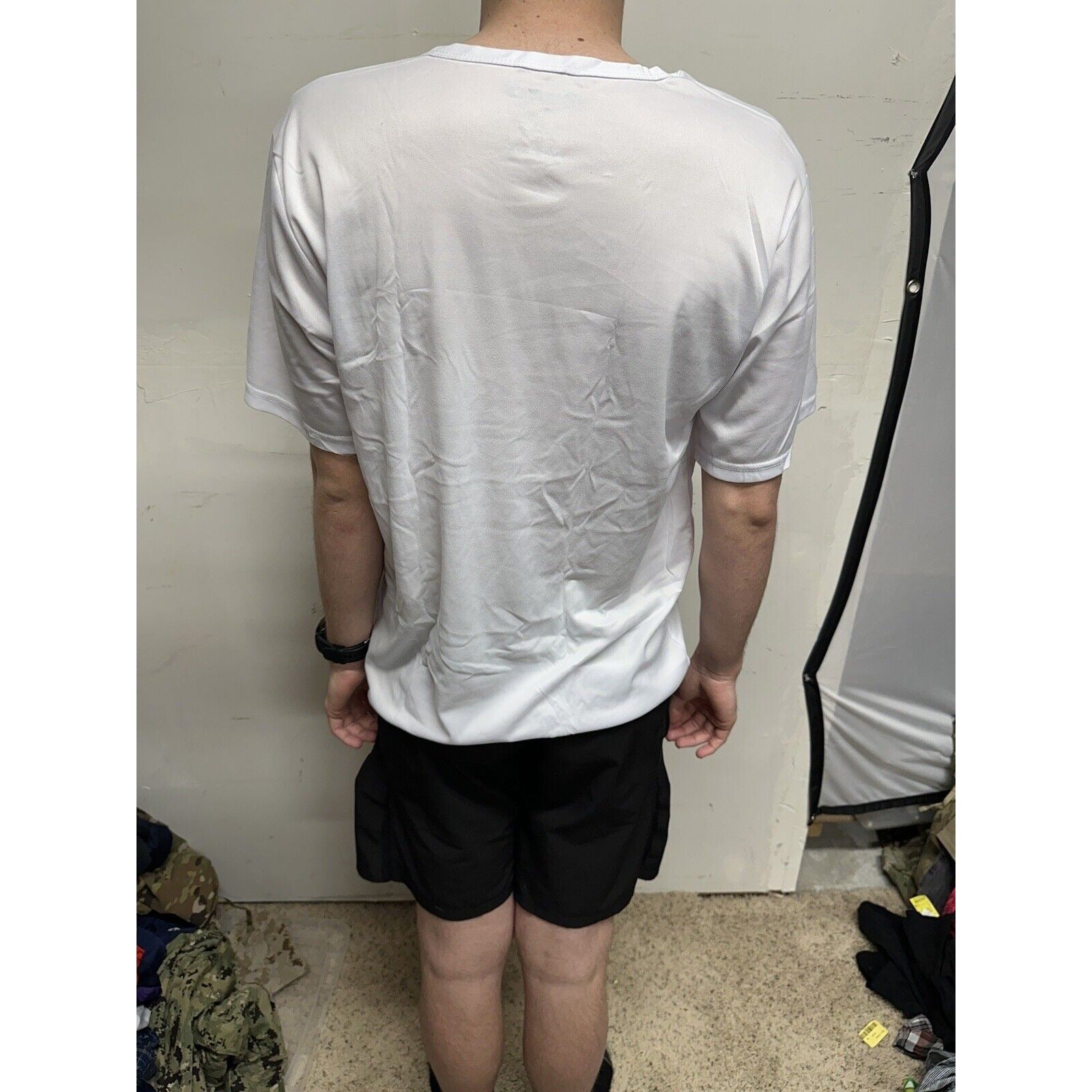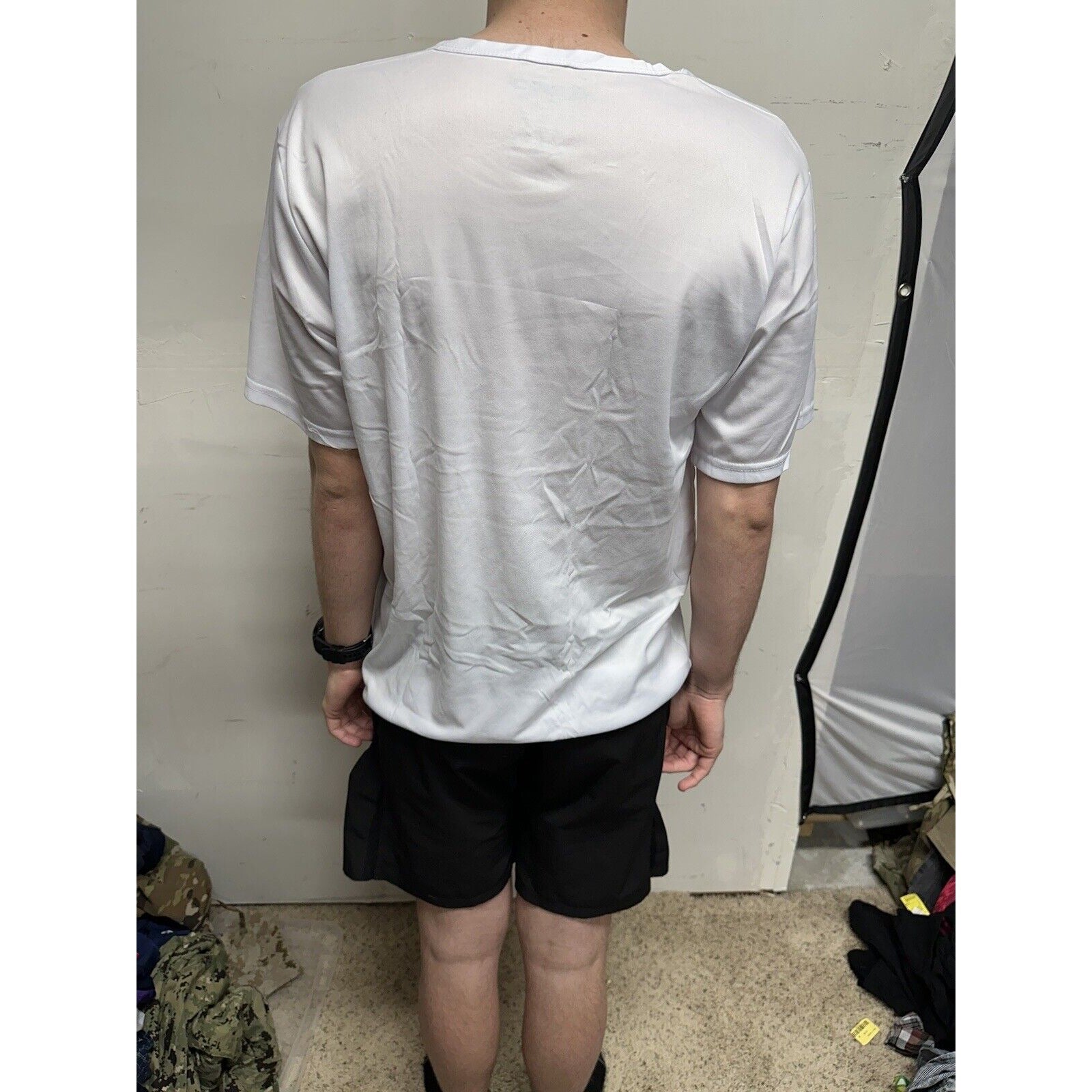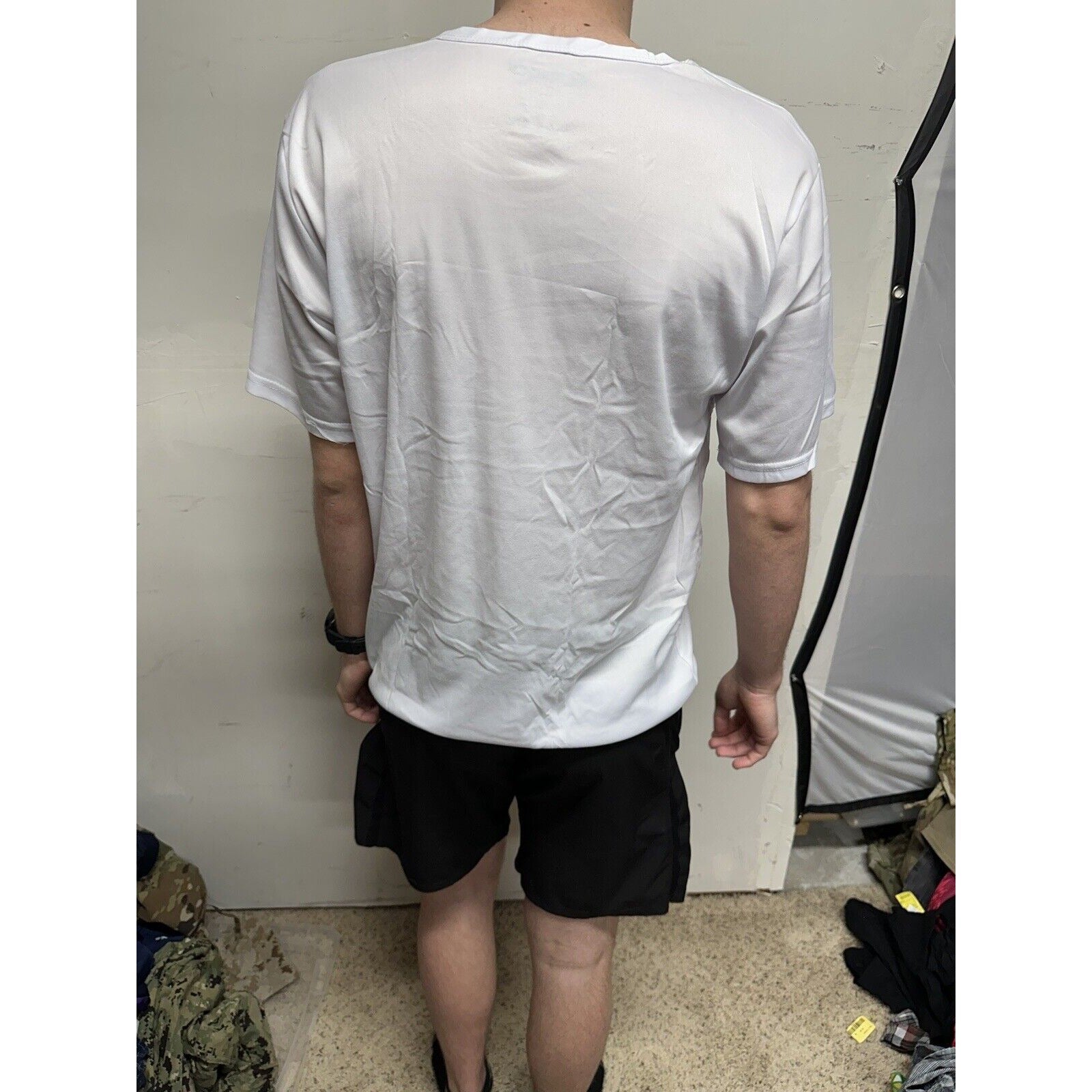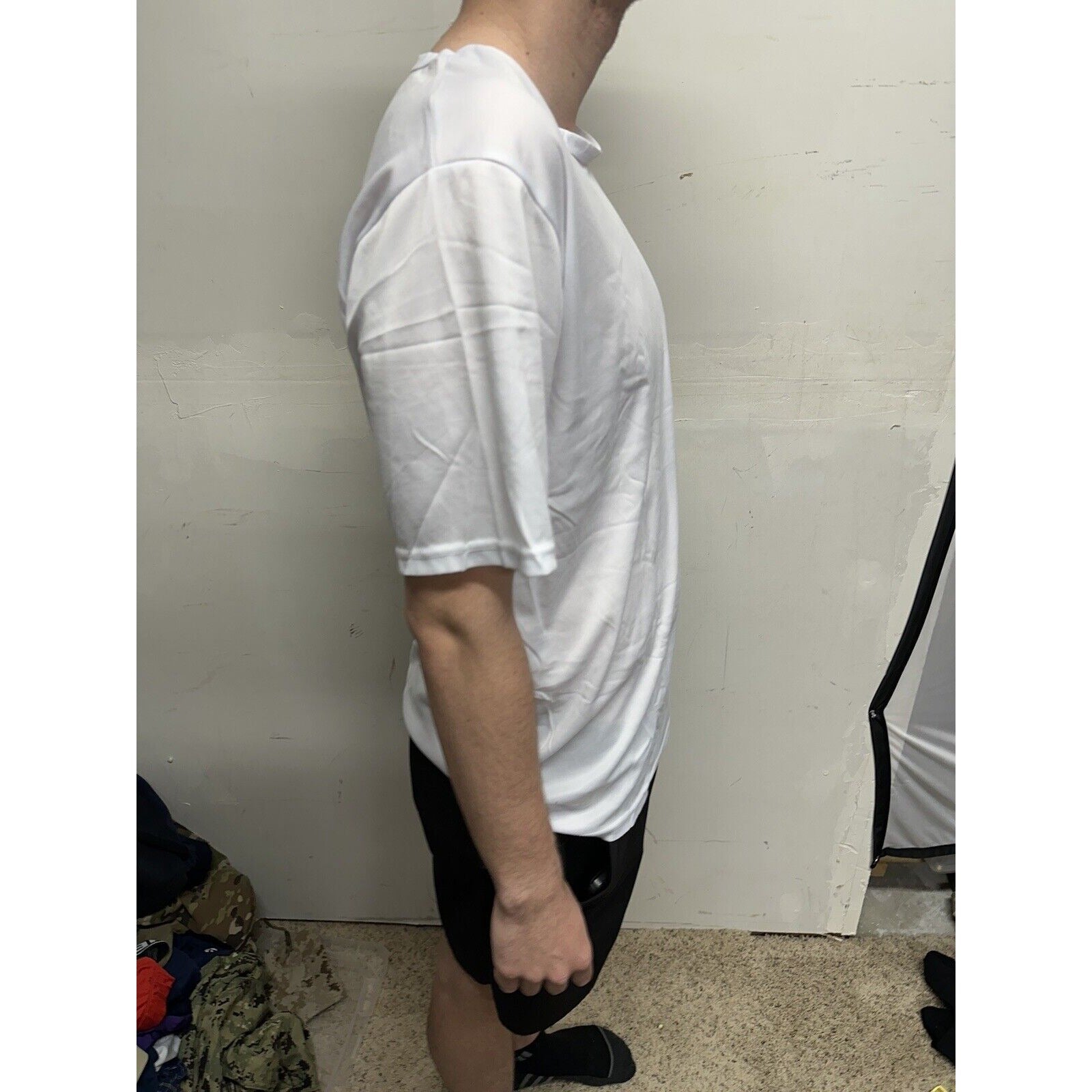 Men’s White Poly TKO Large Short Sleeve Workout Shirt.