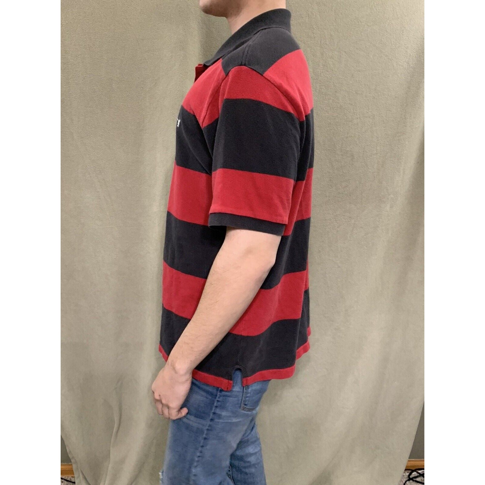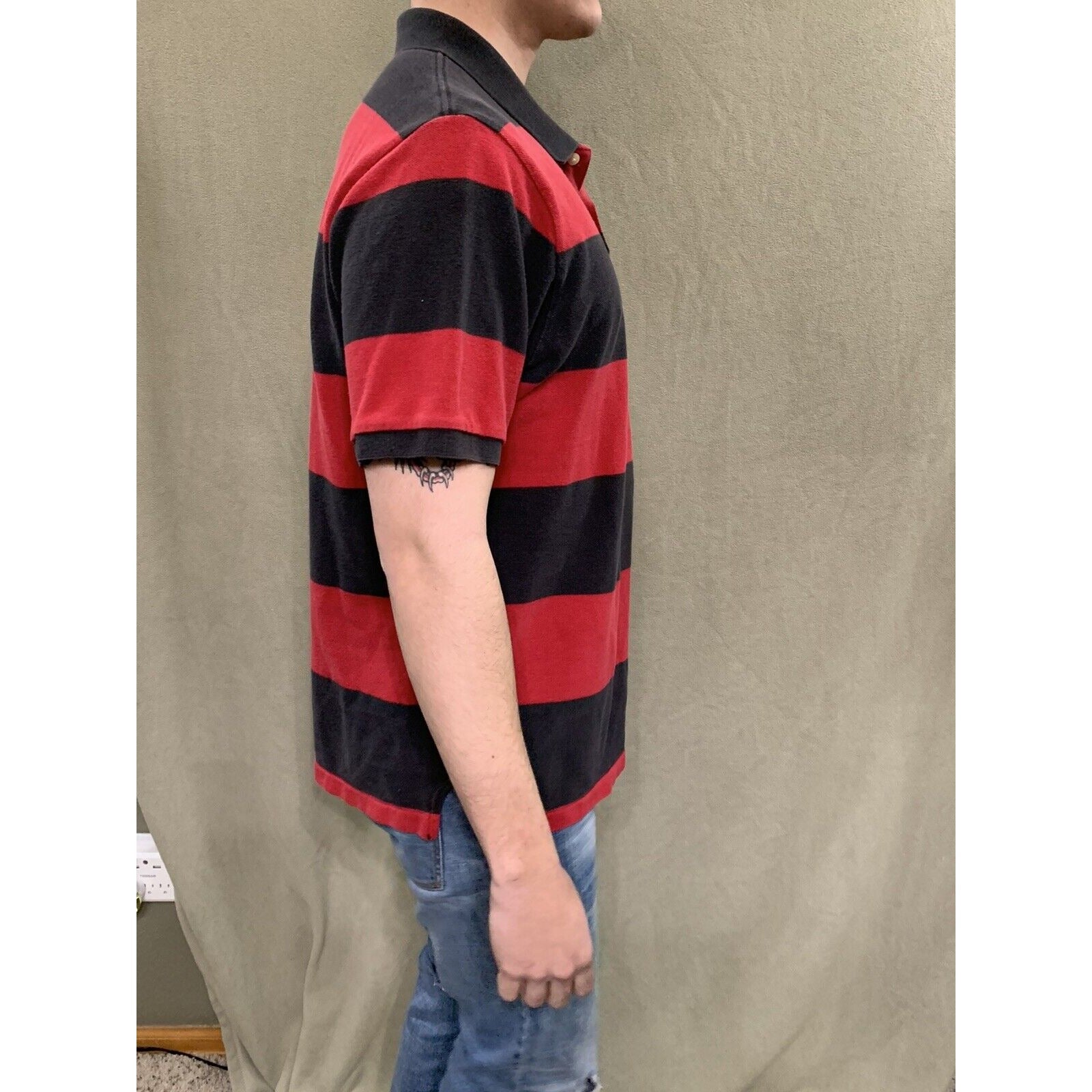 Mens American Eagle Logo Red & Black Striped Polo Short Sleeve Shirt Large