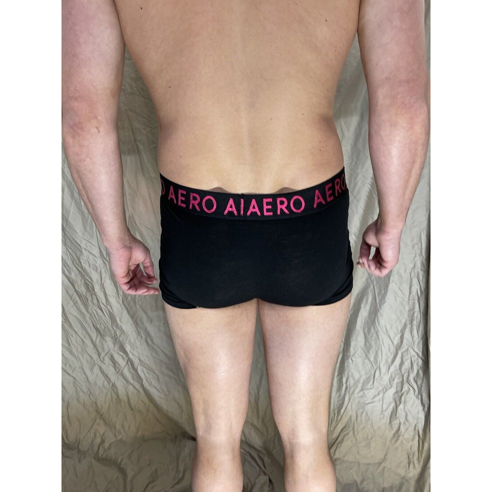 men's black Aero aeropostale black medium metalic pink band boxer brief.