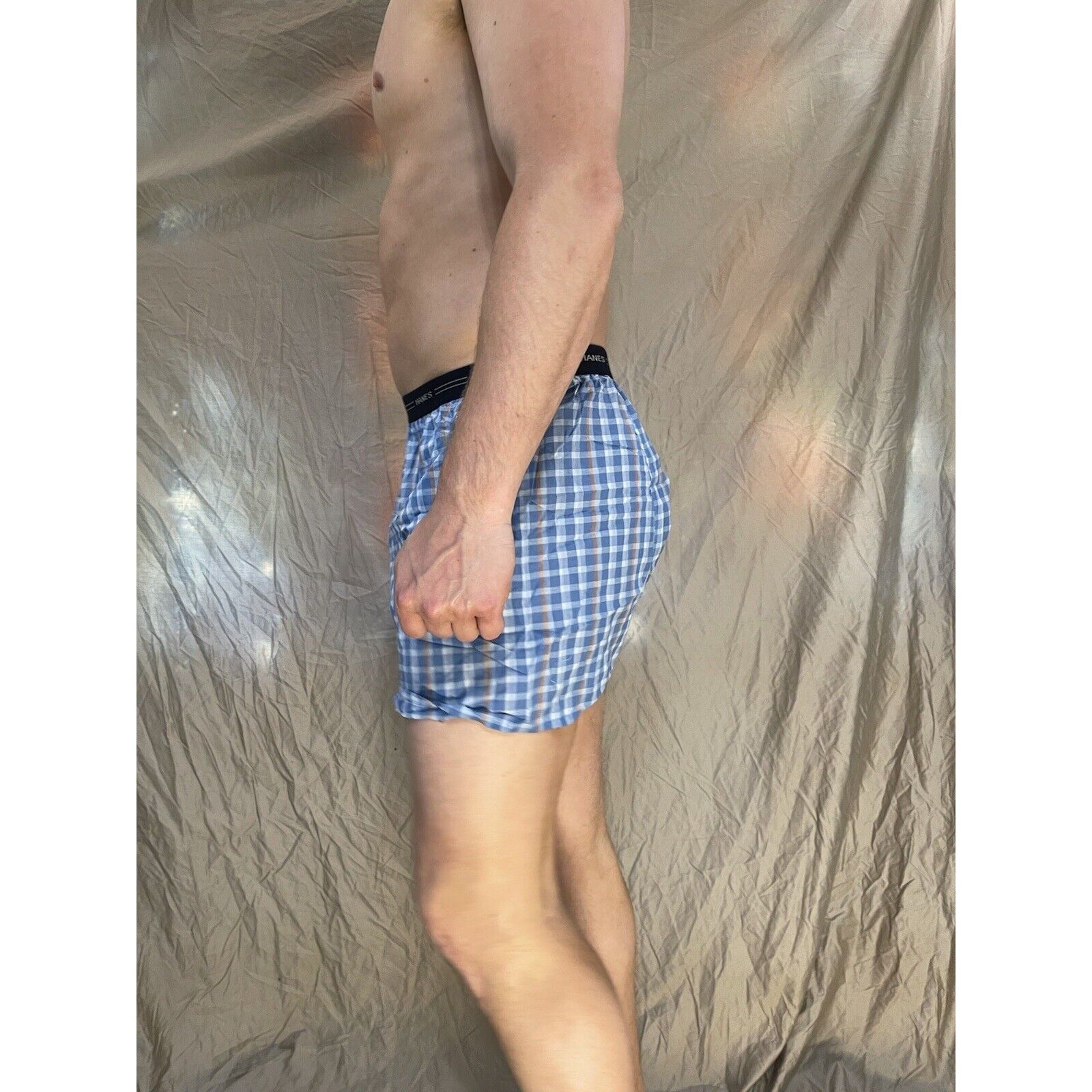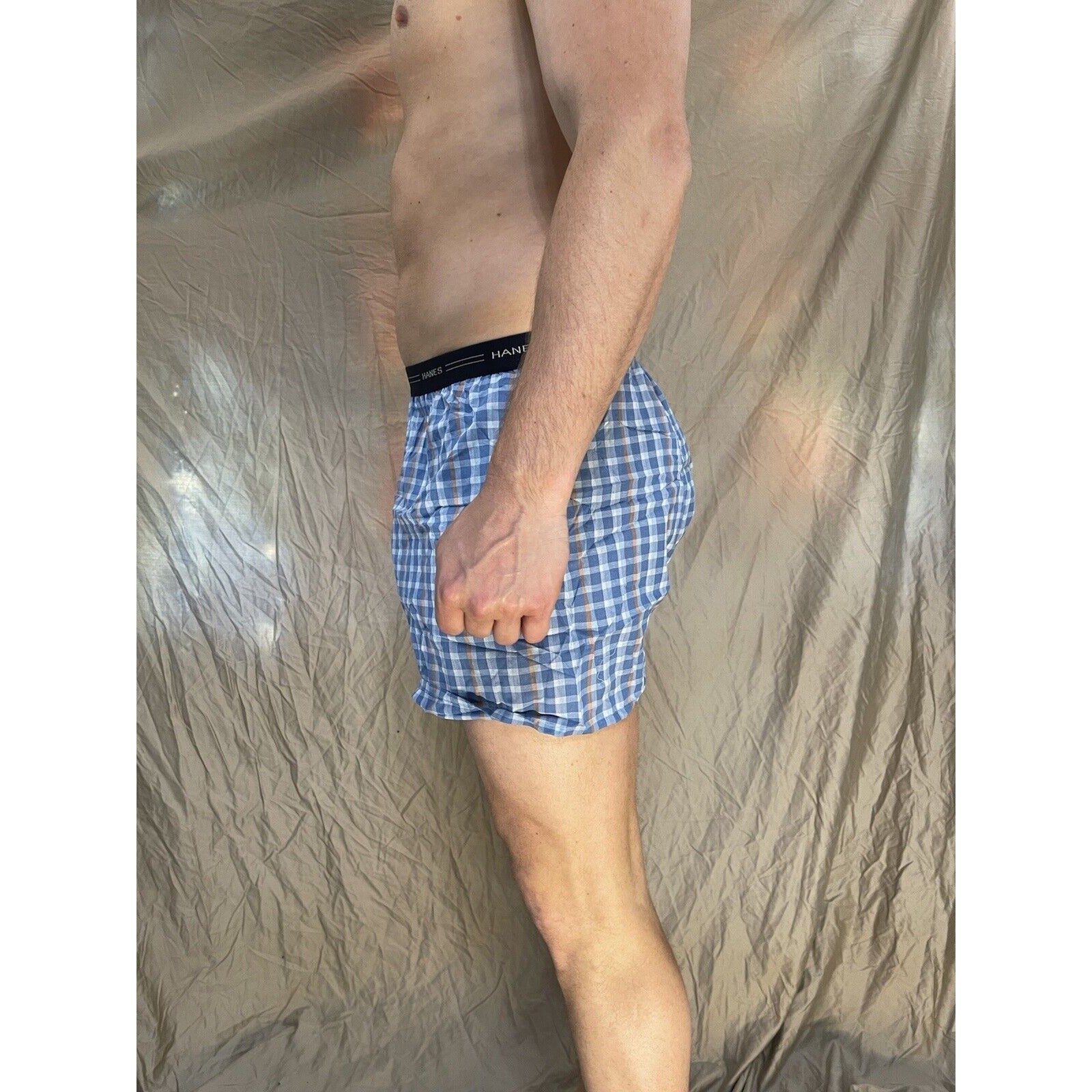 men's hanes blue plaid boxer shorts large confort flex.