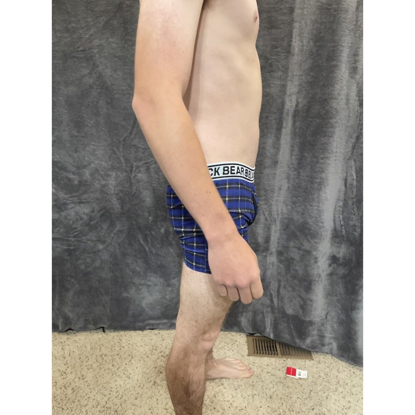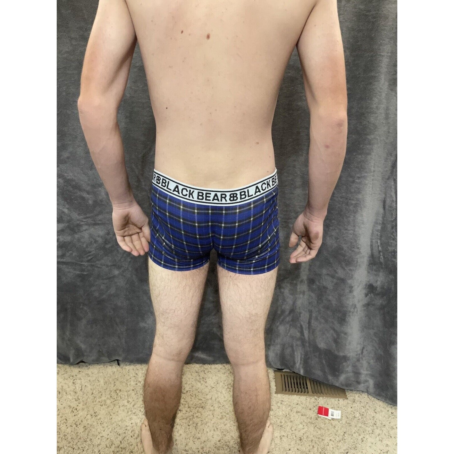 men's medium athletic trunk style black bear boxer brief Blue Black Plaid
