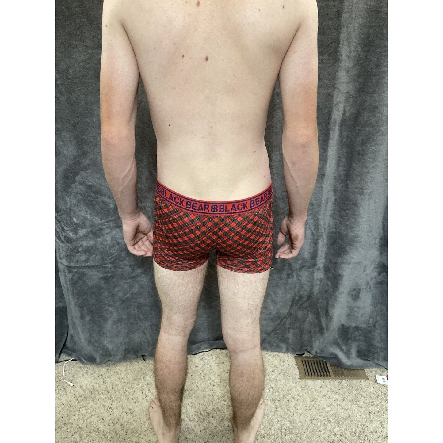 men's medium athletic trunk style black bear boxer brief Red With Plaid Design