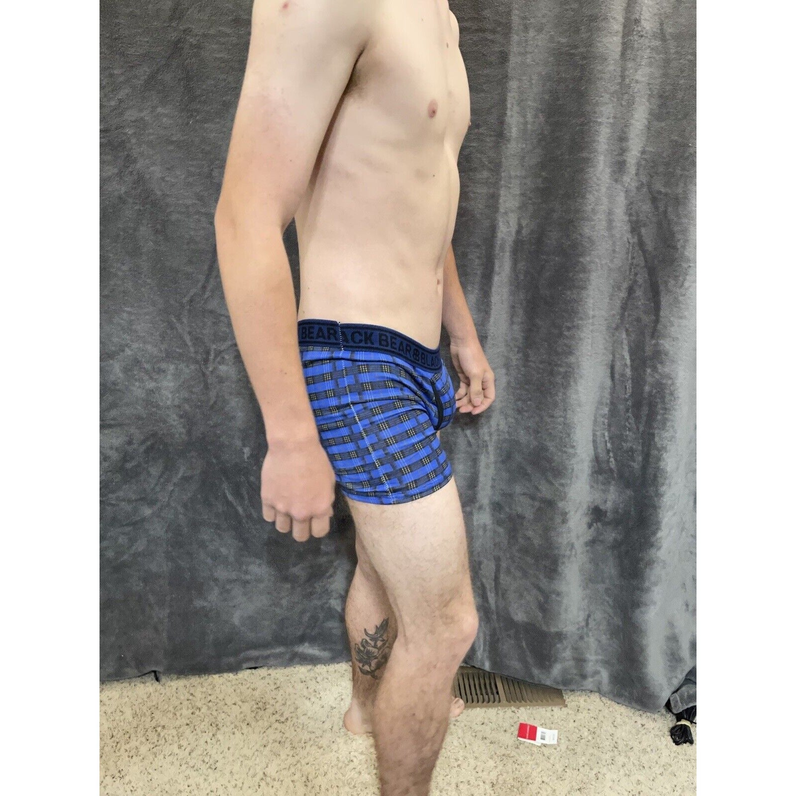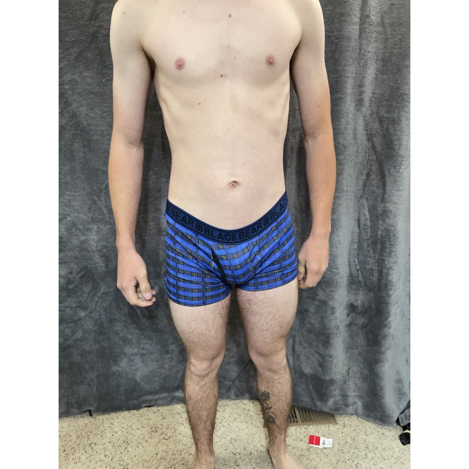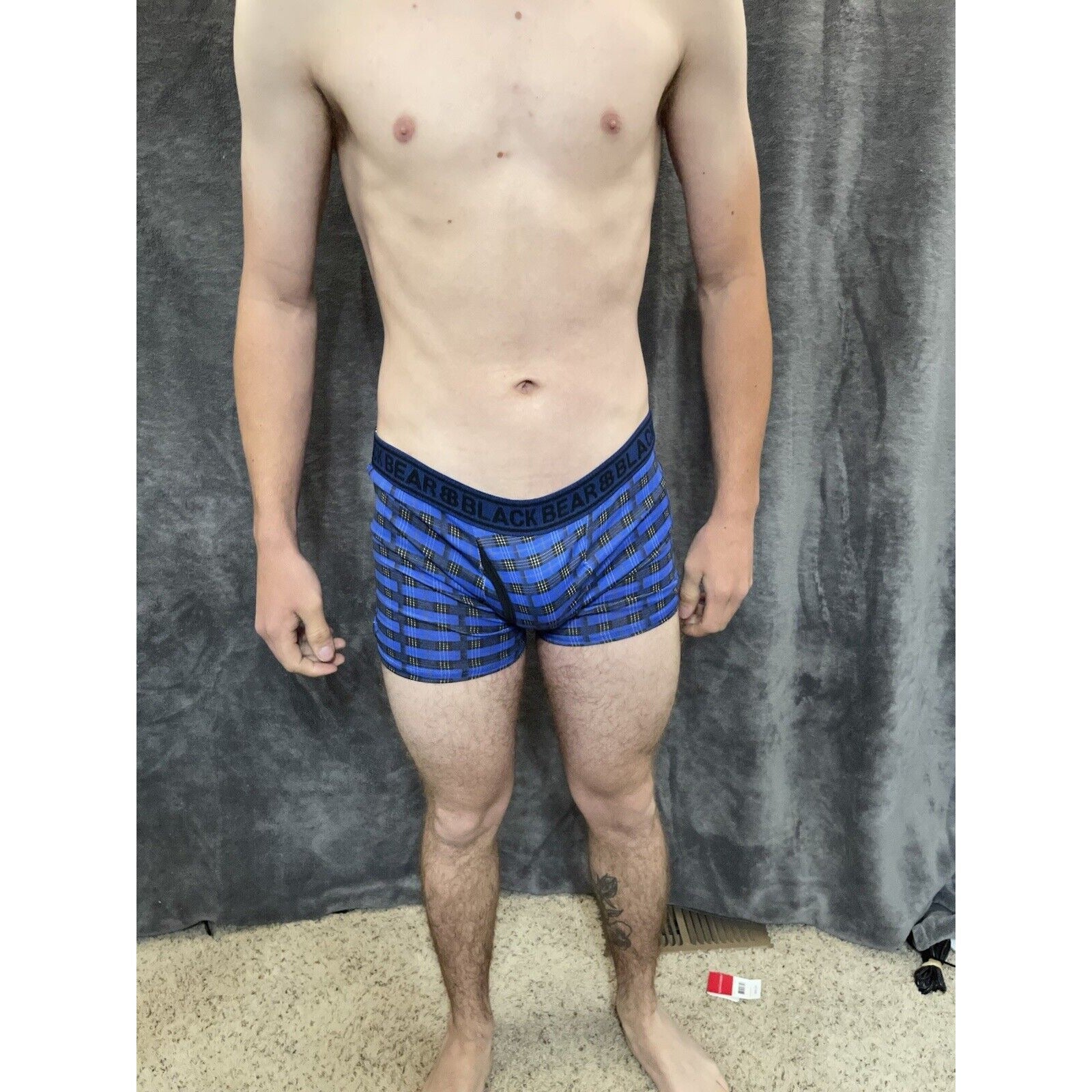 men's medium athletic trunk style black bear boxer brief Yellow And Blue Plaid