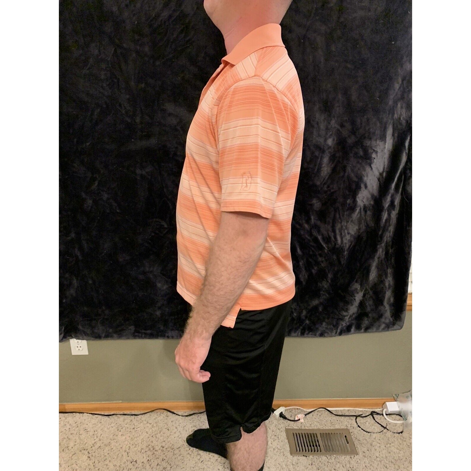 Men's PGA TOUR Orange Polyester Pink/Coral Golf Shirt Short Sleeve Medium M. Condition is "Pre-owned". y.