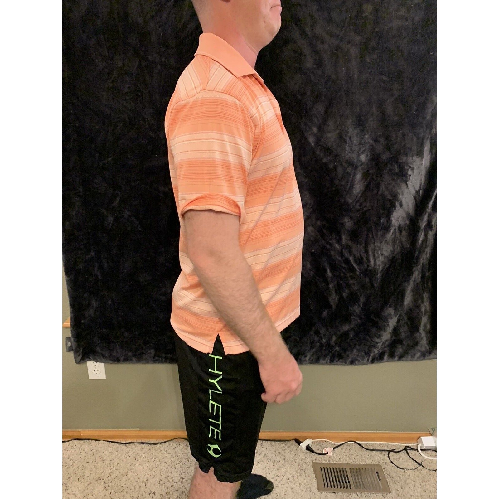Men's PGA TOUR Orange Polyester Pink/Coral Golf Shirt Short Sleeve Medium M