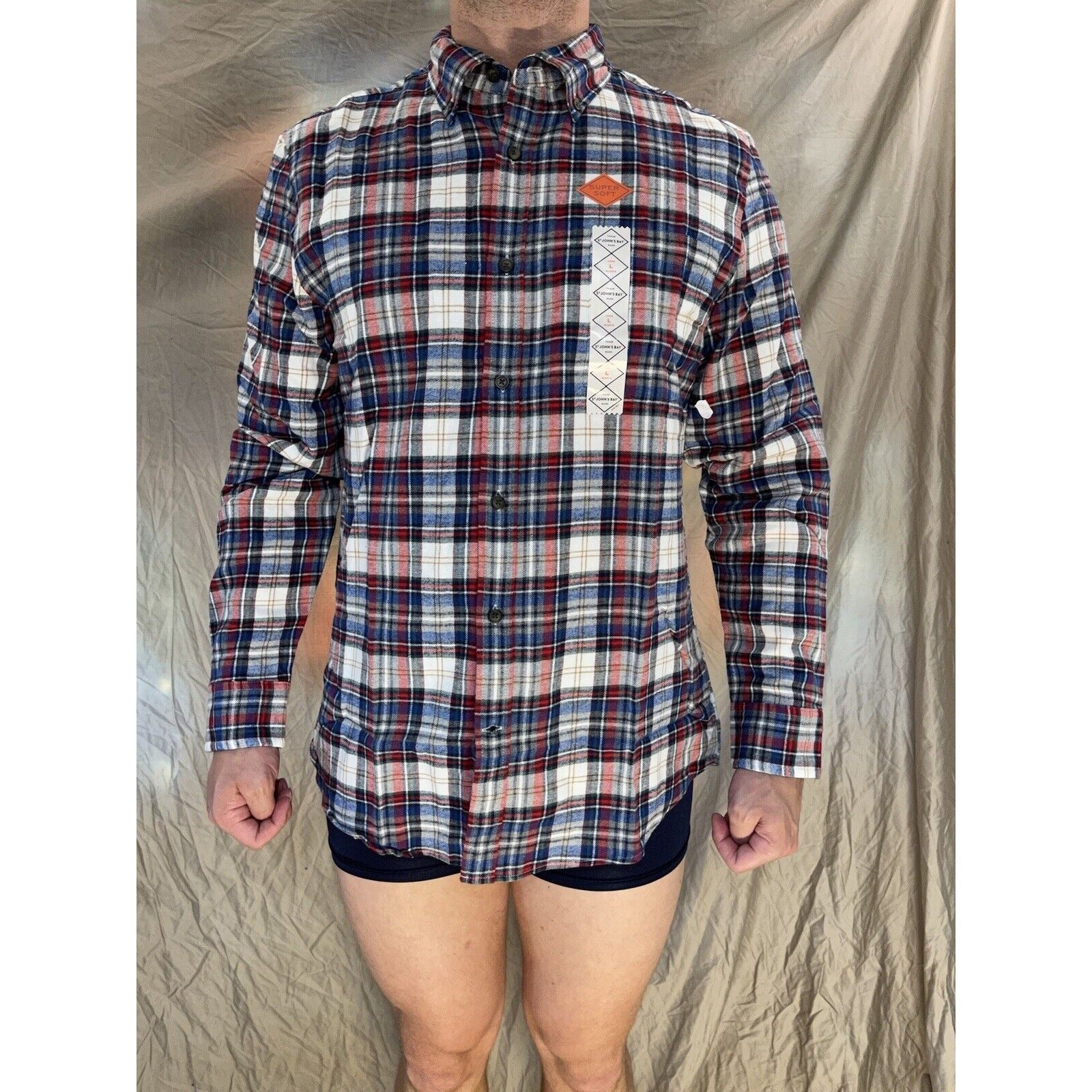 men's plaid blue red st john's bay large polar bear mulit long sleeve buttonup