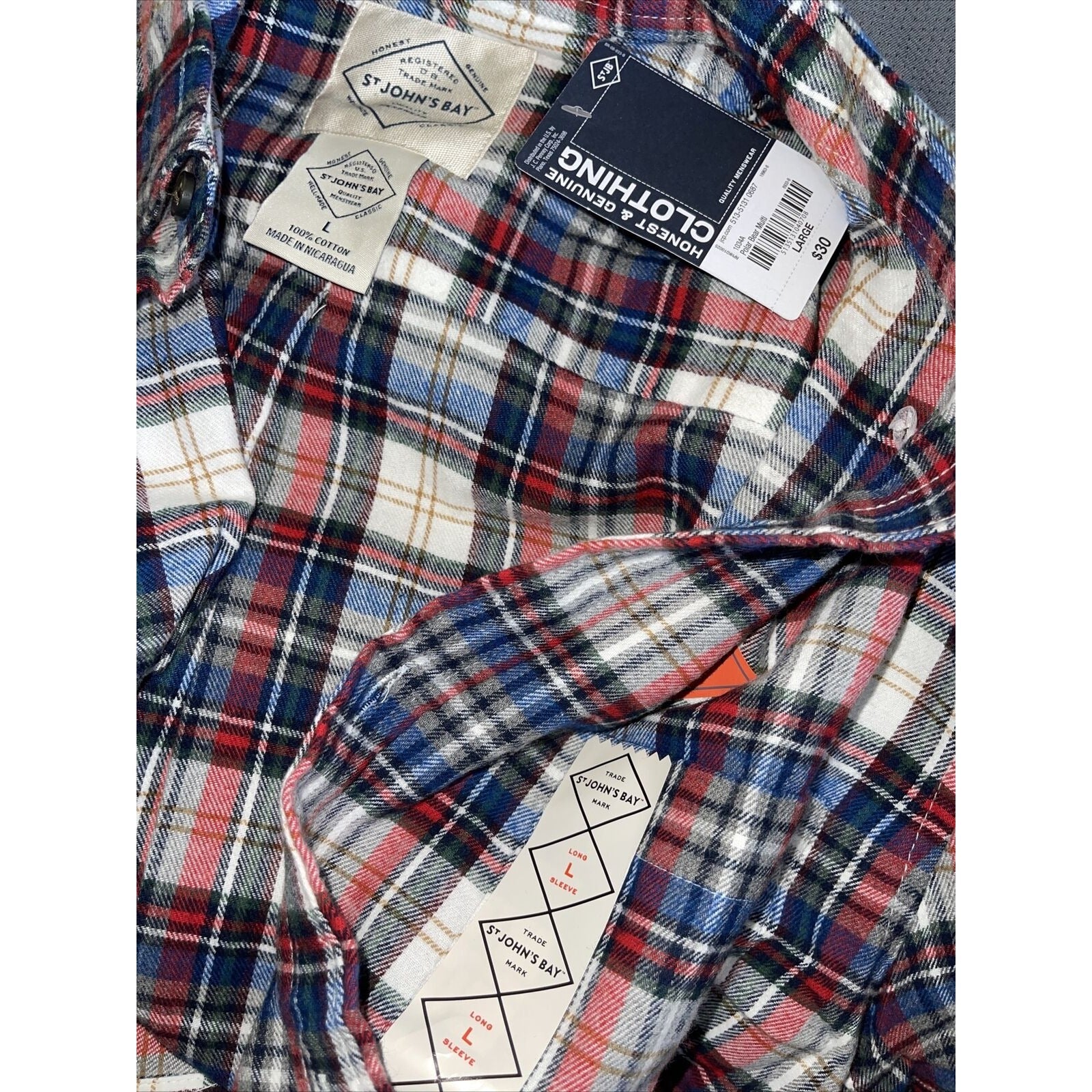 men's plaid blue red st john's bay large polar bear mulit long sleeve buttonup.