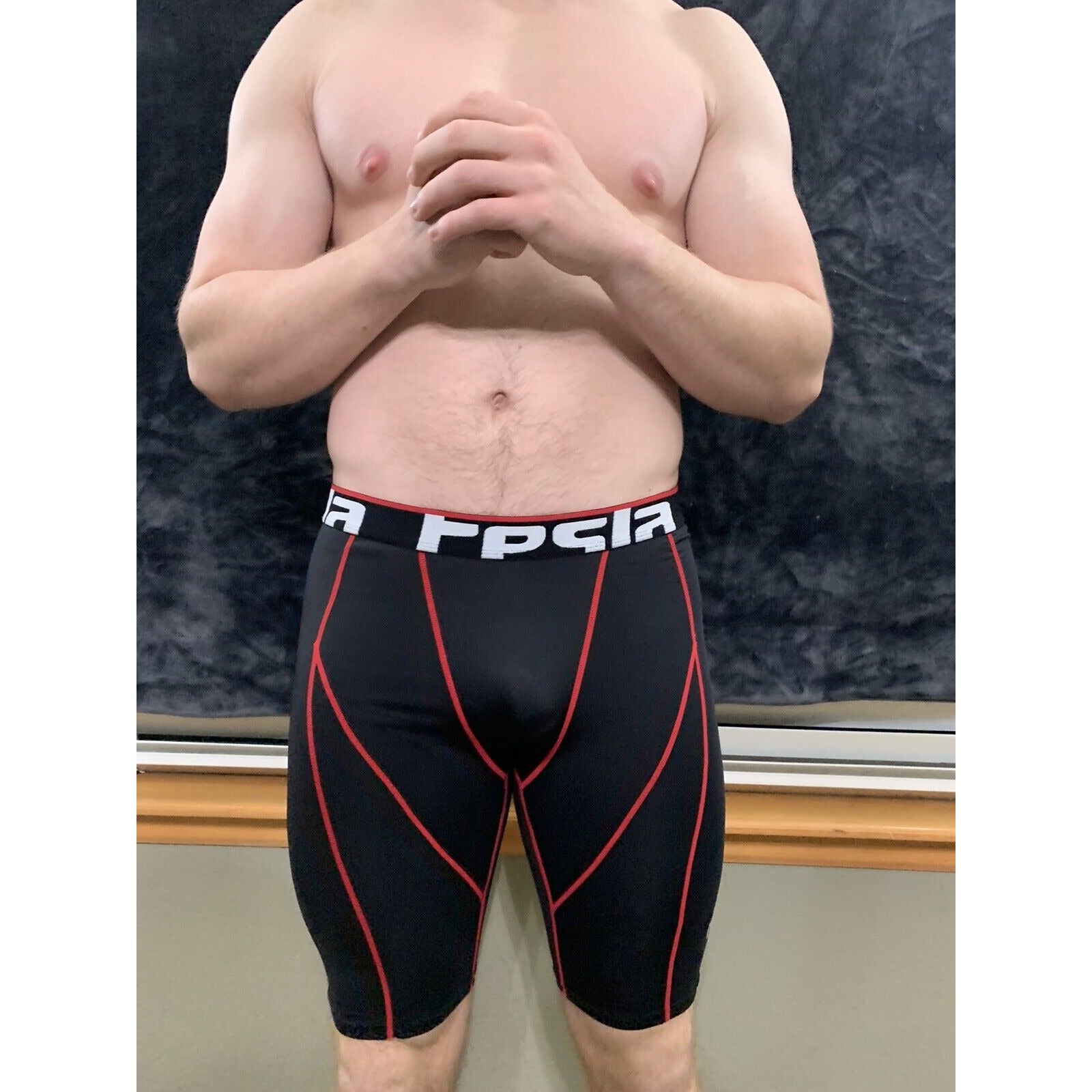 Men's Tesla Compression Running Cycling Performance Shorts Black Red XL.