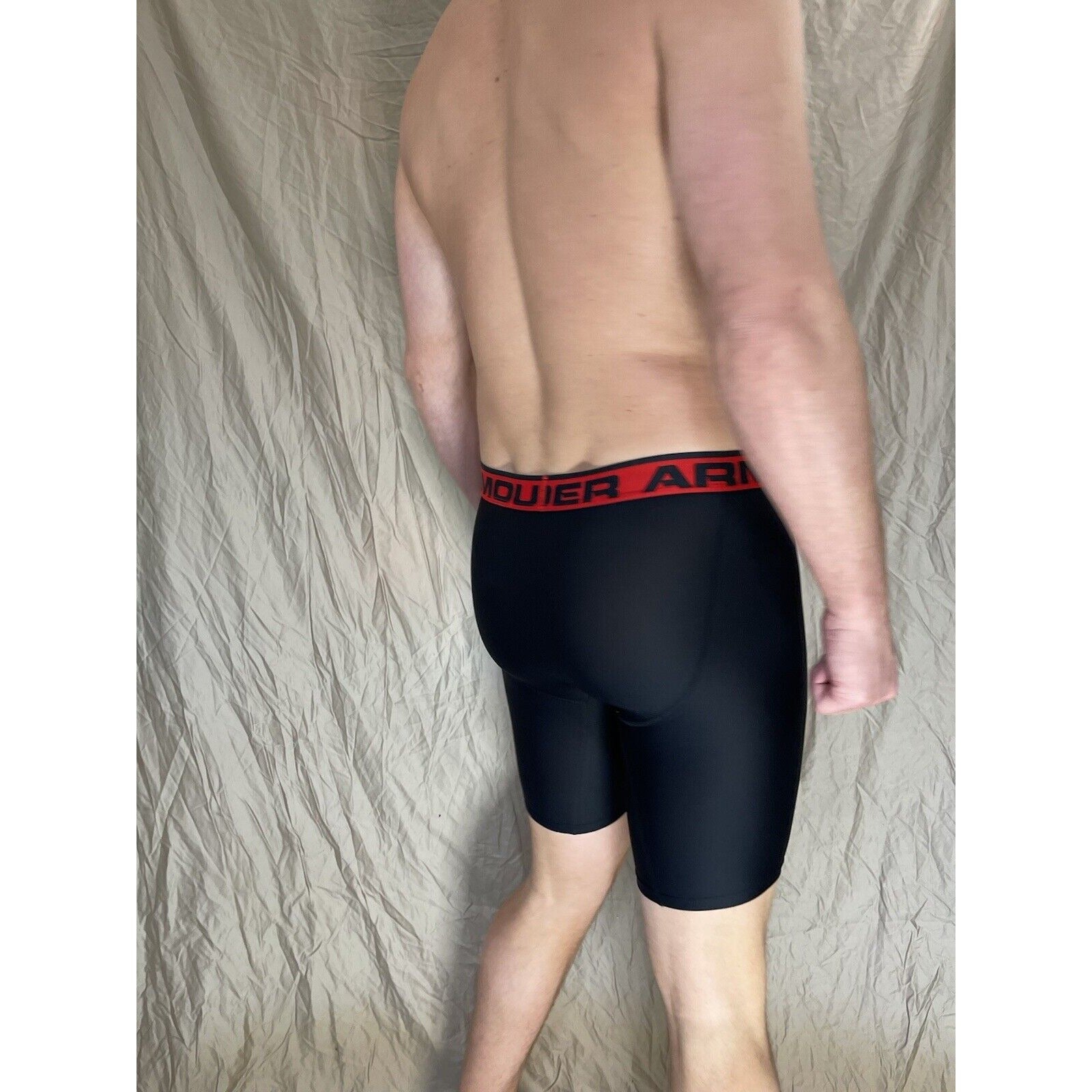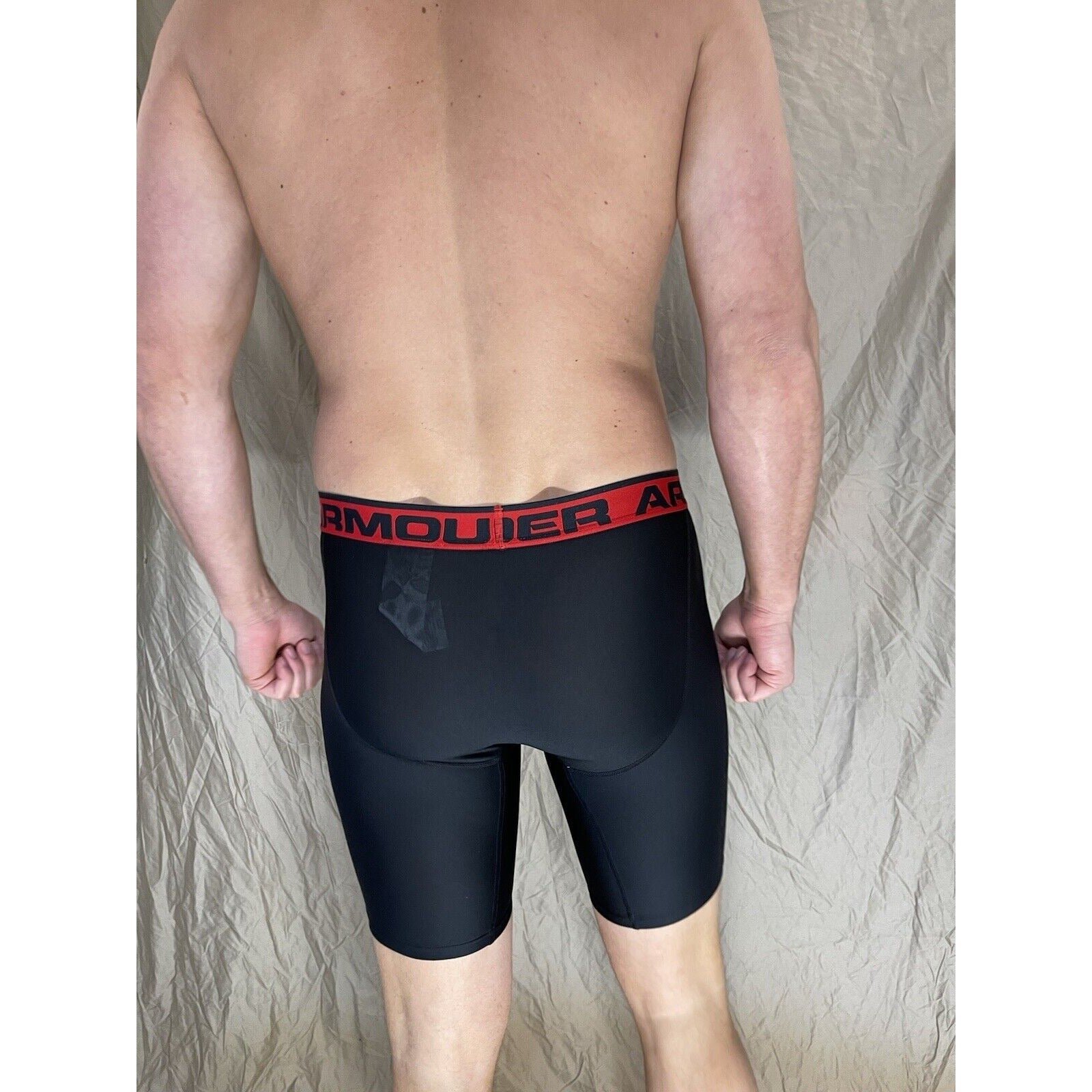 men's under armour boxer jock black with red band small.