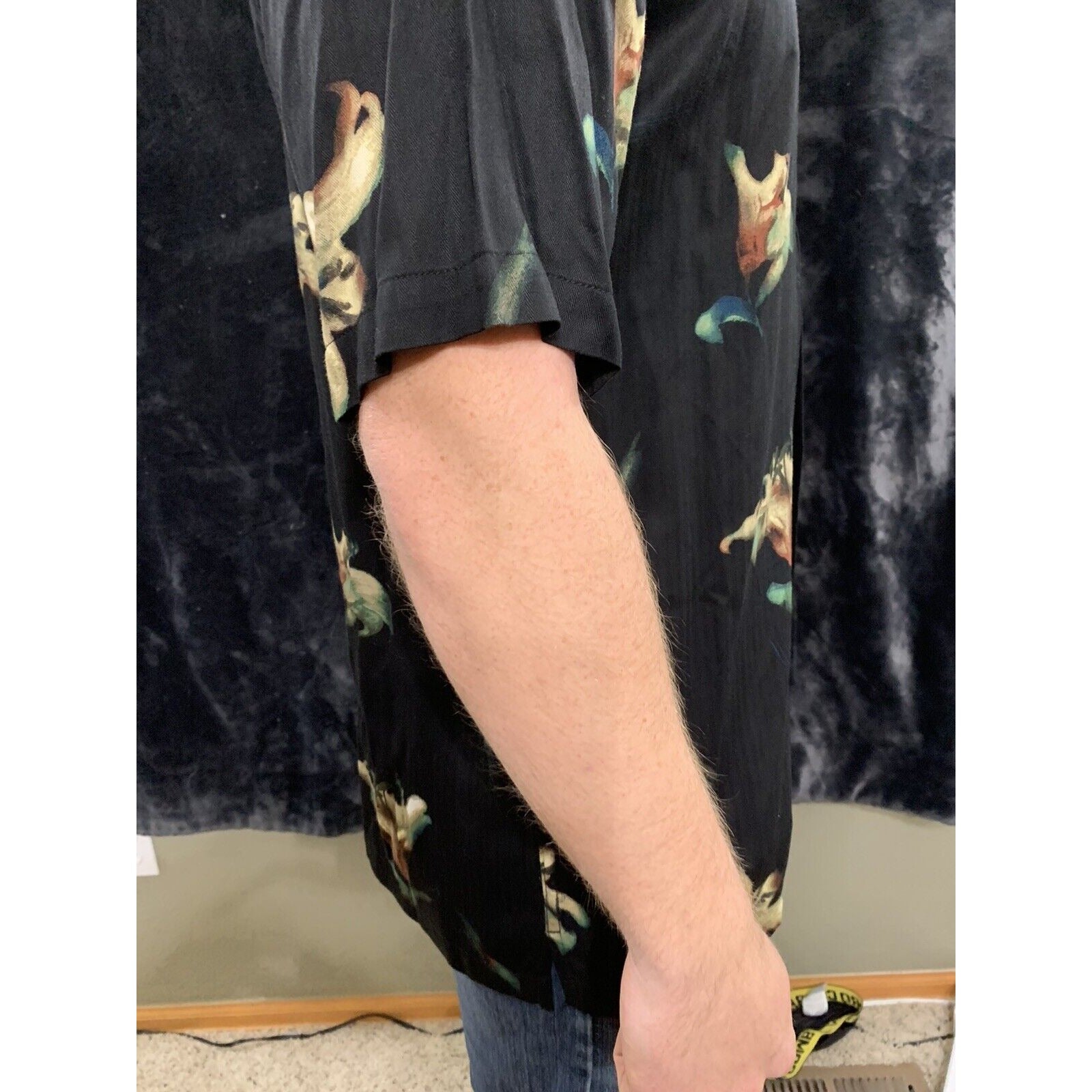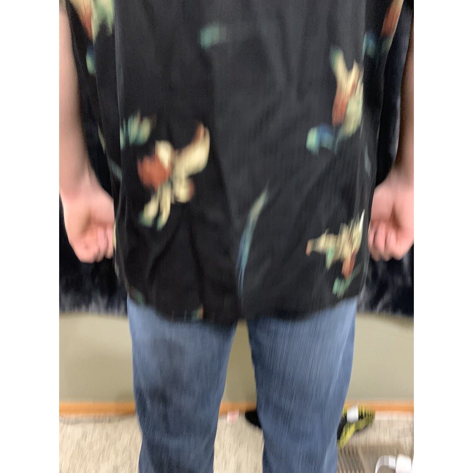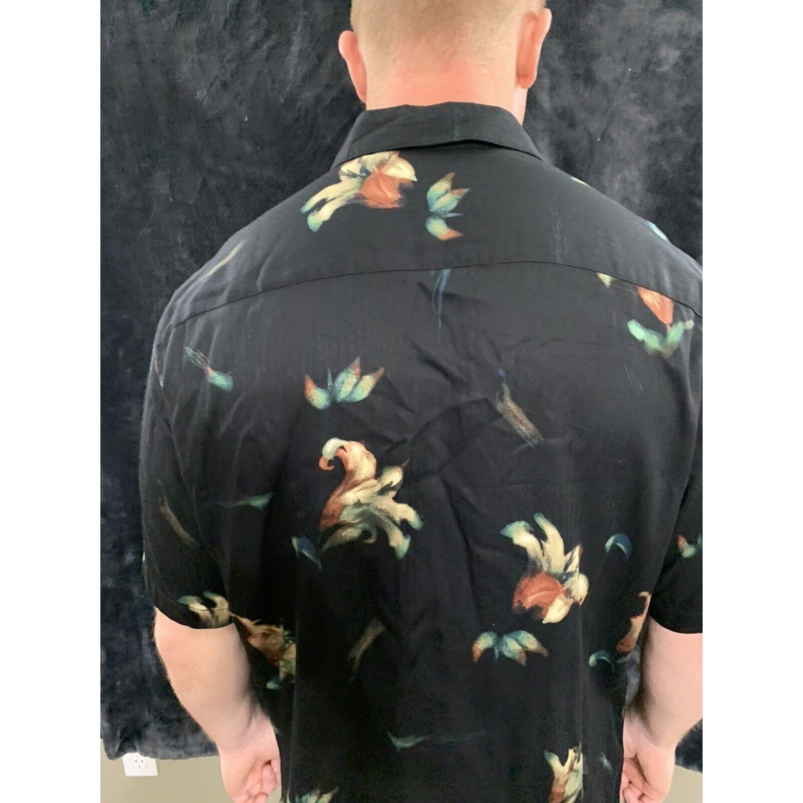 Metro Concepts Mens Medium Button Down Short Sleeve Shirt Black - Leaf Design