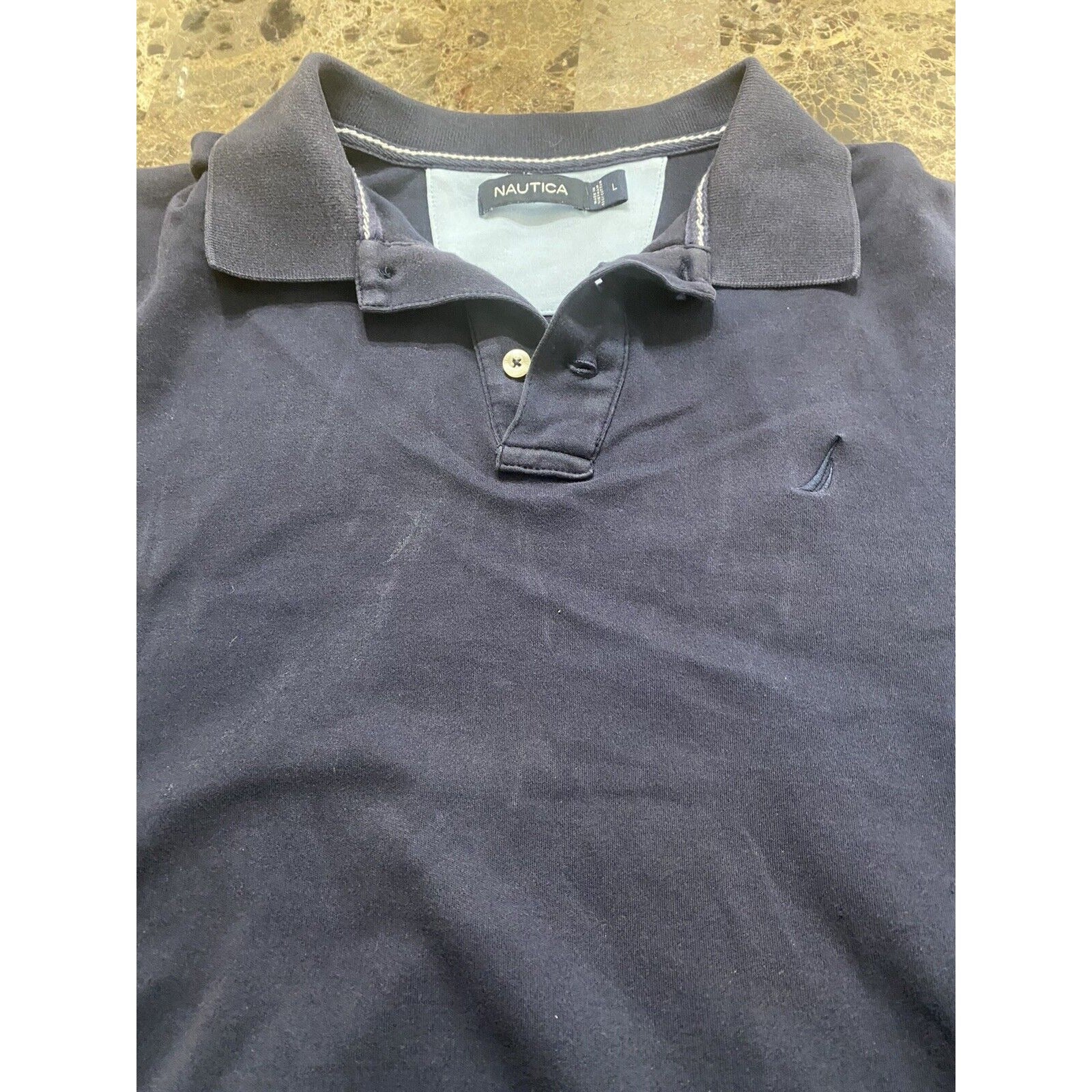 NAUTICA Navy Blue 100% Cotton Polo Short Sleeves Shirt Men’s Large. Condition is "Pre-owned".
