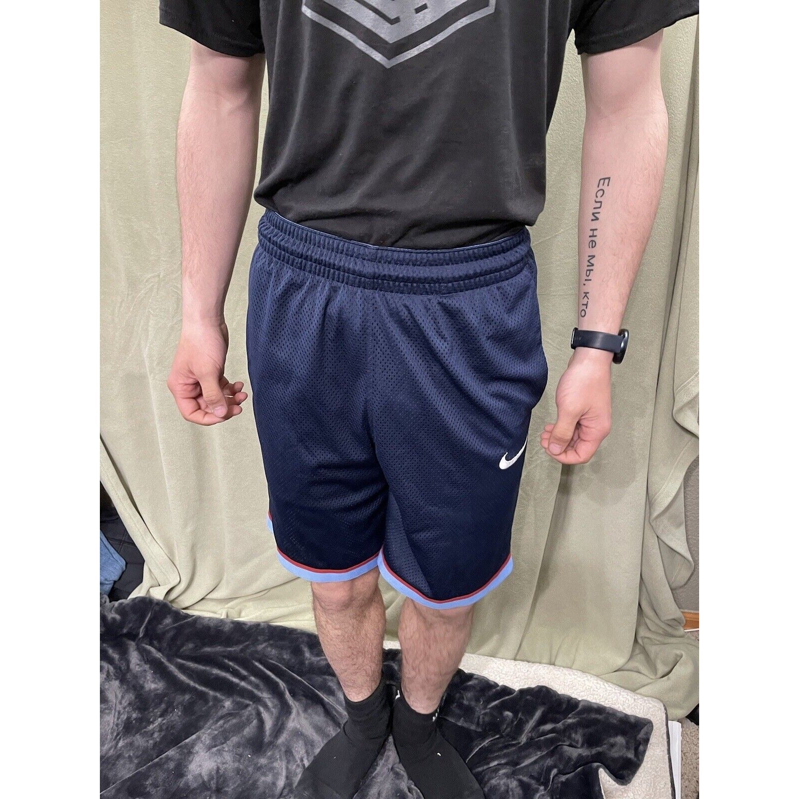 Nike Dri-Fit Classic Mens Mesh Basketball Shorts Size Small Blue Red Loose Fit