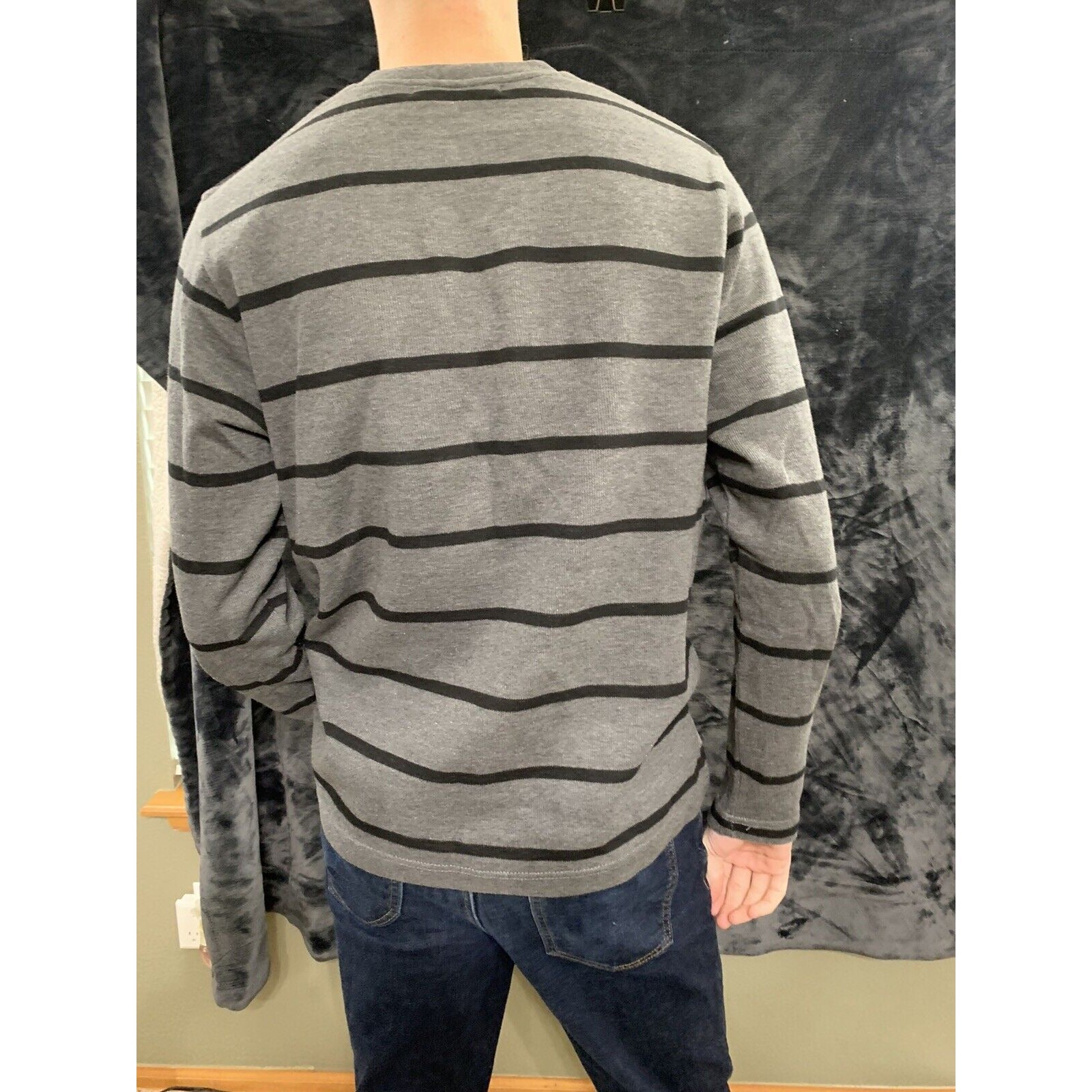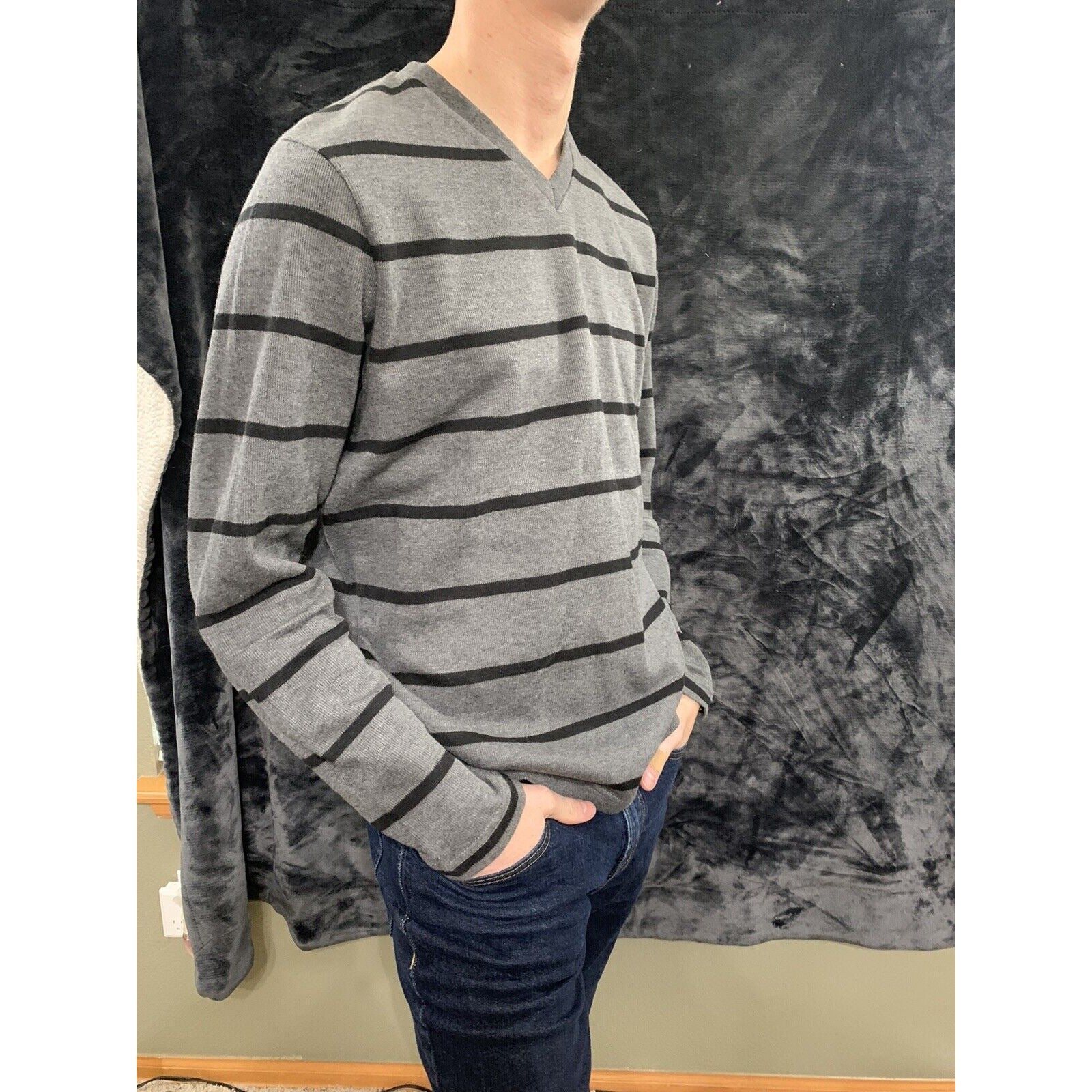 Old Navy Men's Size Large Long Sleeve Gray Striped V-Neck Pullover Sweatshirt