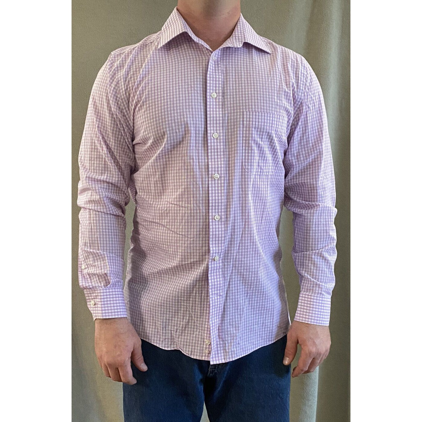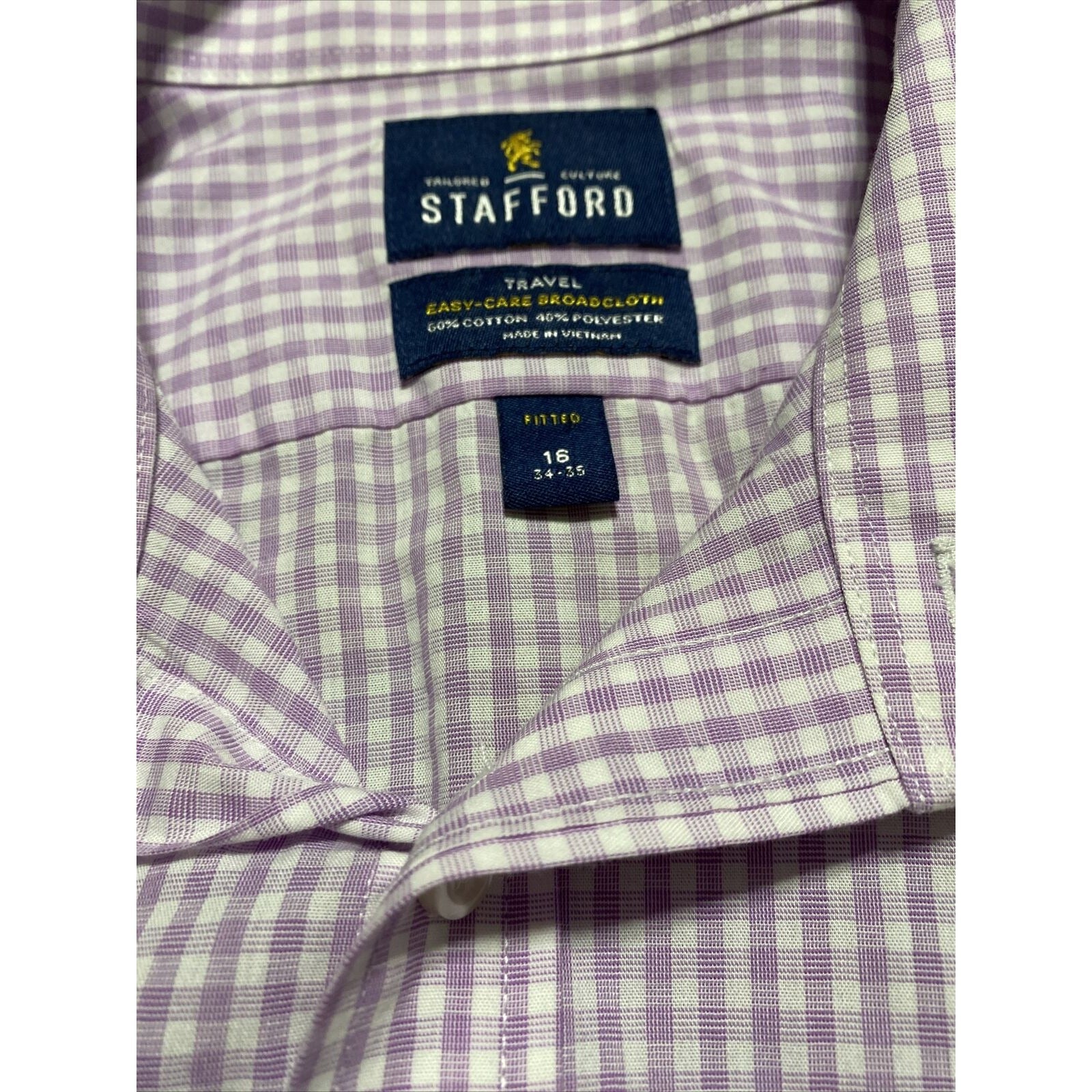 Stafford Travel Easy-care Broadcloth Mens Sz 16 Lilac Plaid Checks Long Sleeves. Condition is "Pre-owned".