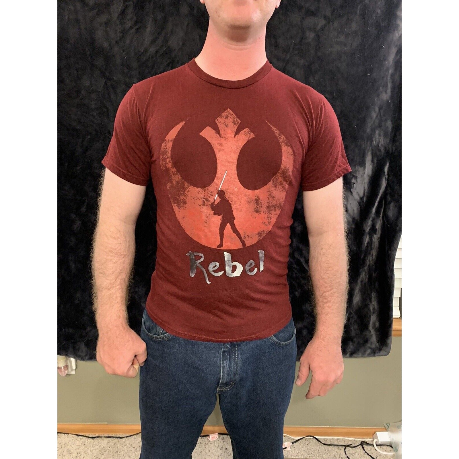Star Wars Rebel Graphic Print Burgundy T-Shirt Small Cotton Blend. Condition is "Pre-owned".